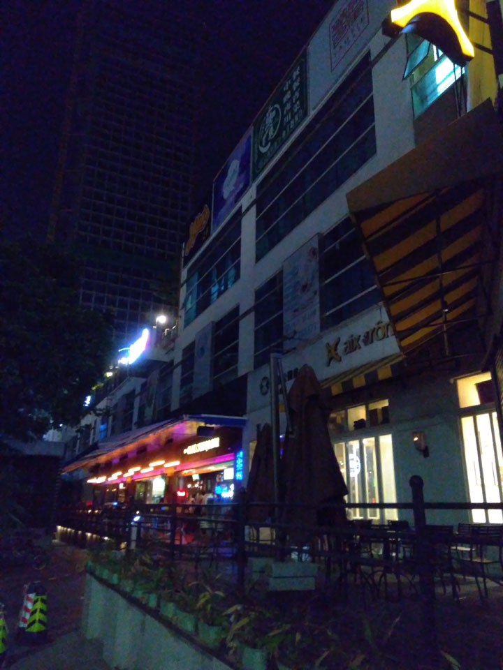 Nachts dann war alles finster. Ich wollte jedoch ausgehen, weil ich gestern schon das Guangzhou Nachtleben verpasst hatte. So ließ ich die Türen leicht angekippt und ging zum Coco Park, wo ein paar Bars und Clubs sein sollten.