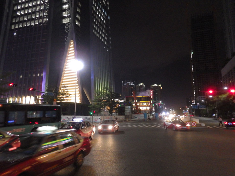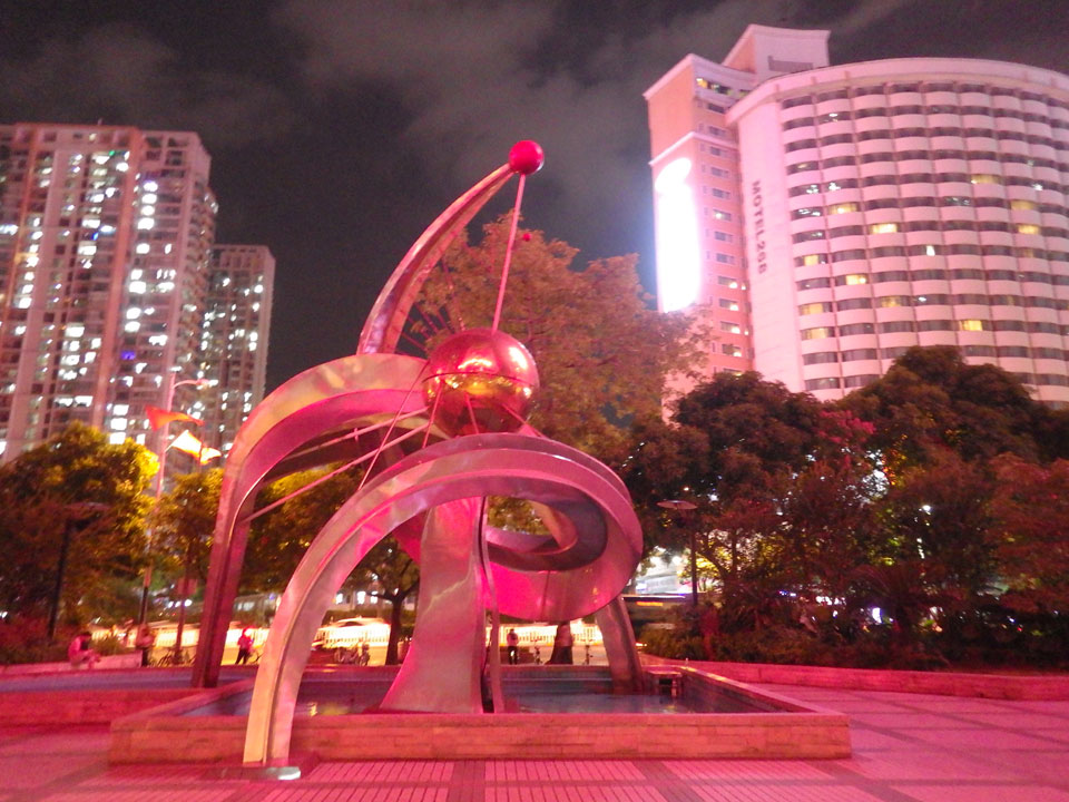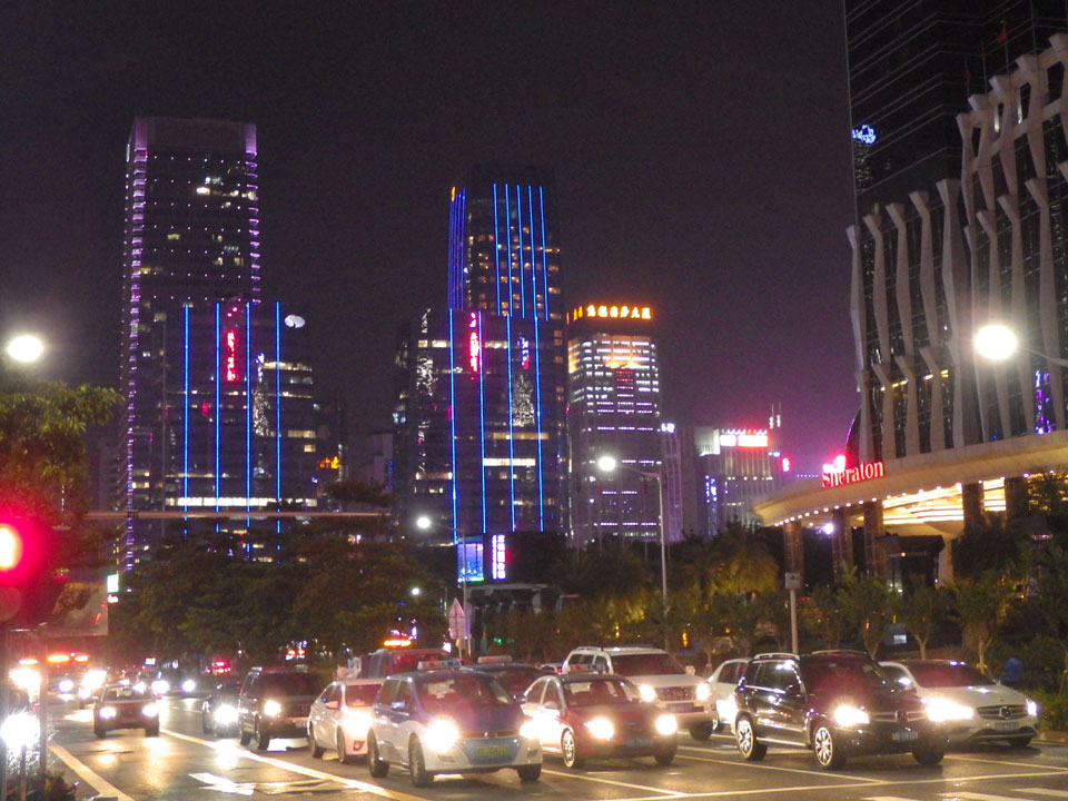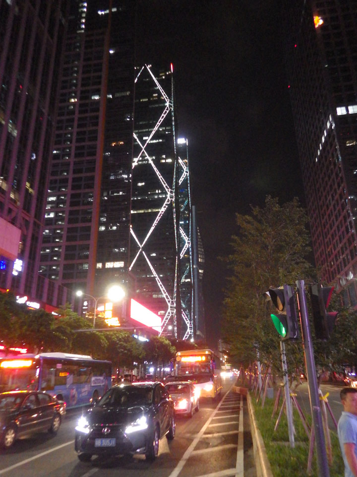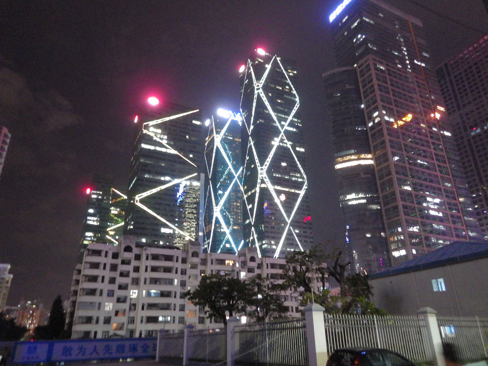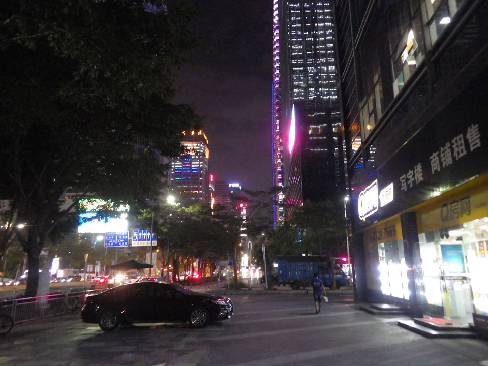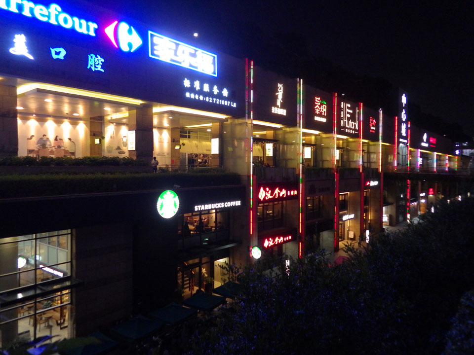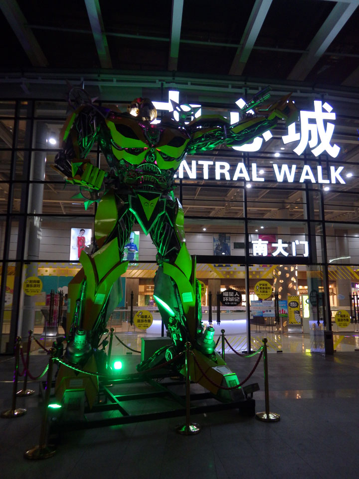 Zurück fuhr ich nur ein paar Stationen und stieg am Convention Center aus. Da war die „Link City“ – eine Untergrund Ladenstraße. Eine Menge Essens-Läden, darunter auch Yoshinoya. So hatte ich mal einen Vorgeschmack auf Japan und chattete etwas mit zu Hause. Wieder oben auf der Straße staunte ich über hohe Häuser und erneute LED Animationen an den Fassaden. China ist supermodern, da staune ich schon. Wieviel Substanz dahinter steht, kann man schwer sagen. Die meisten Wolkenkratzer zeigen gigantische Telefonnummern, unter denen man wohl Räume mieten kann.
