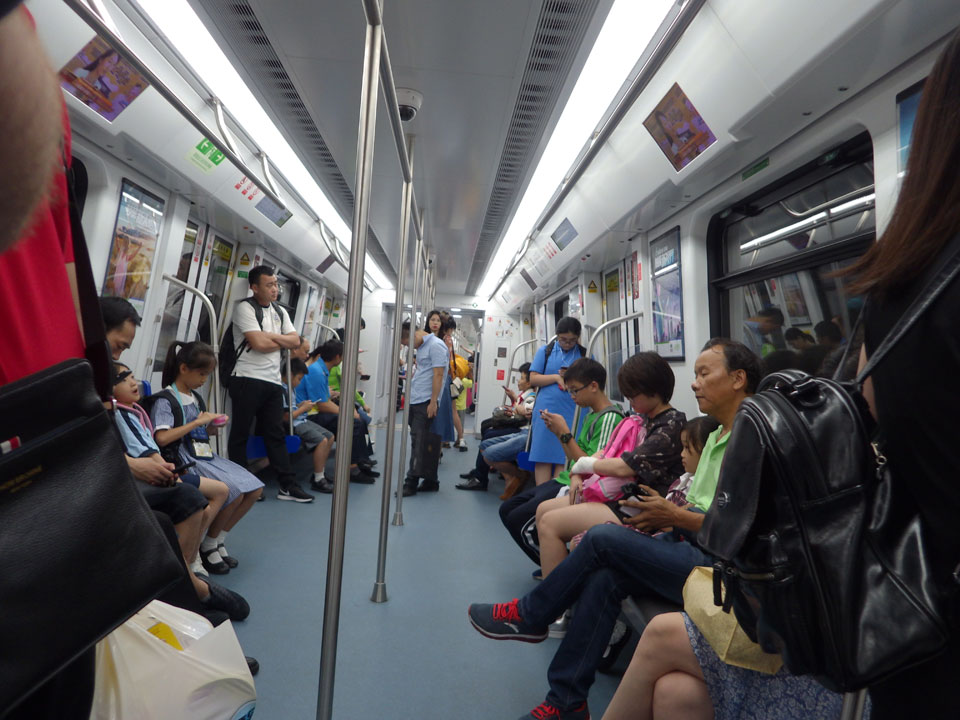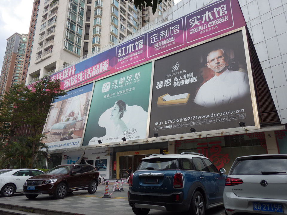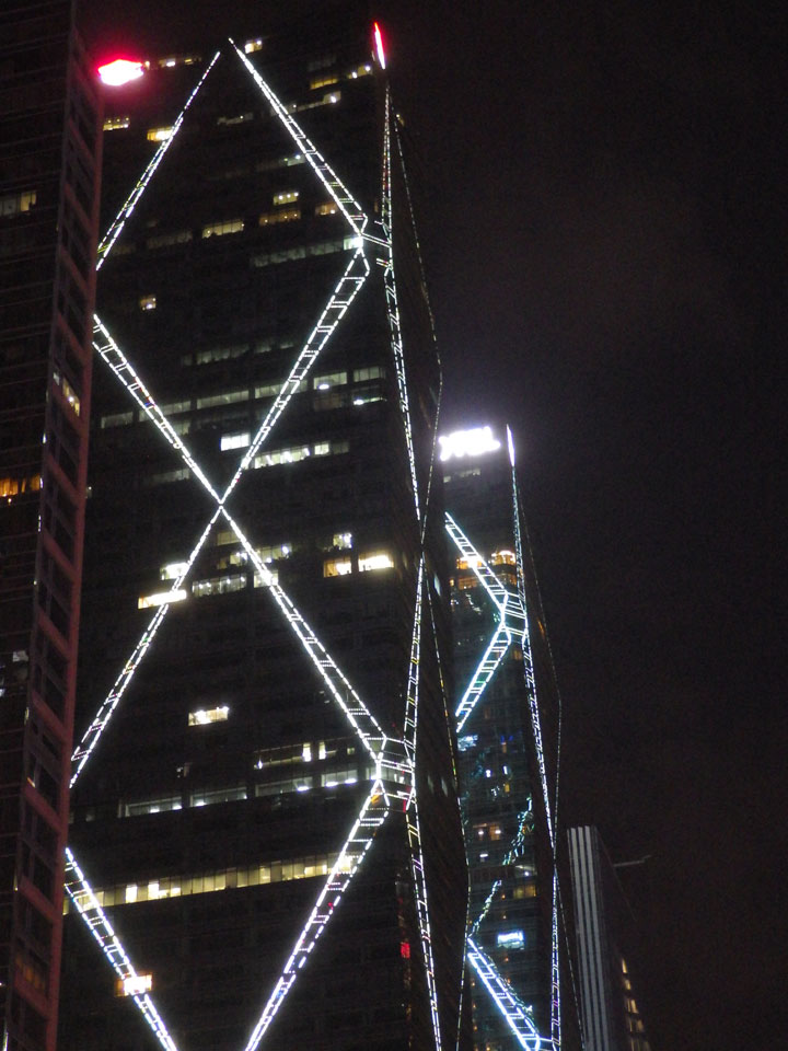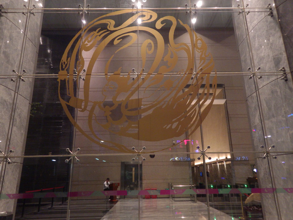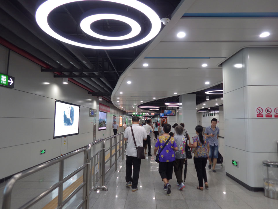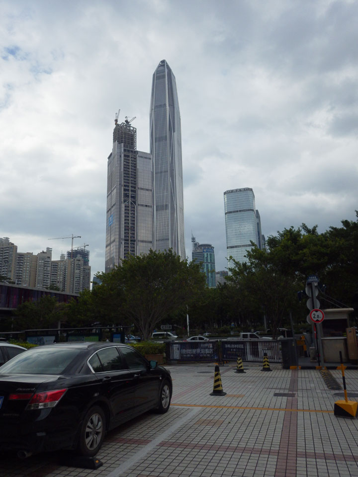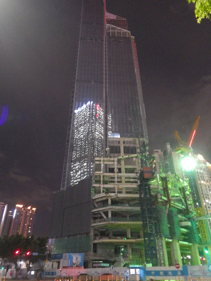 Zurück fuhr ich nur ein paar Stationen und stieg am Convention Center aus. Da war die „Link City“ – eine Untergrund Ladenstraße. Eine Menge Essens-Läden, darunter auch Yoshinoya. So hatte ich mal einen Vorgeschmack auf Japan und chattete etwas mit zu Hause. Wieder oben auf der Straße staunte ich über hohe Häuser und erneute LED Animationen an den Fassaden. China ist supermodern, da staune ich schon. Wieviel Substanz dahinter steht, kann man schwer sagen. Die meisten Wolkenkratzer zeigen gigantische Telefonnummern, unter denen man wohl Räume mieten kann.