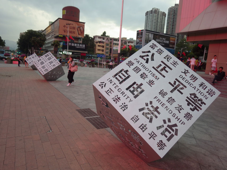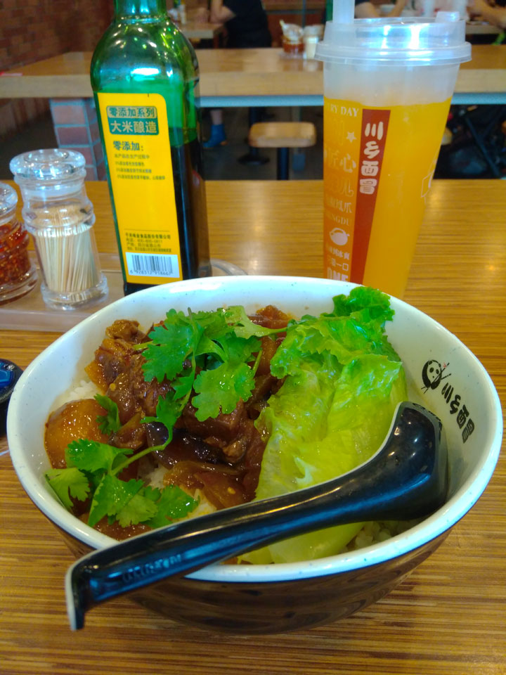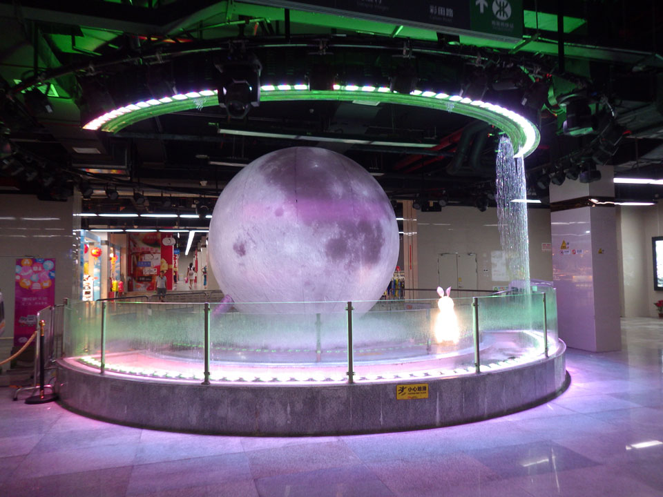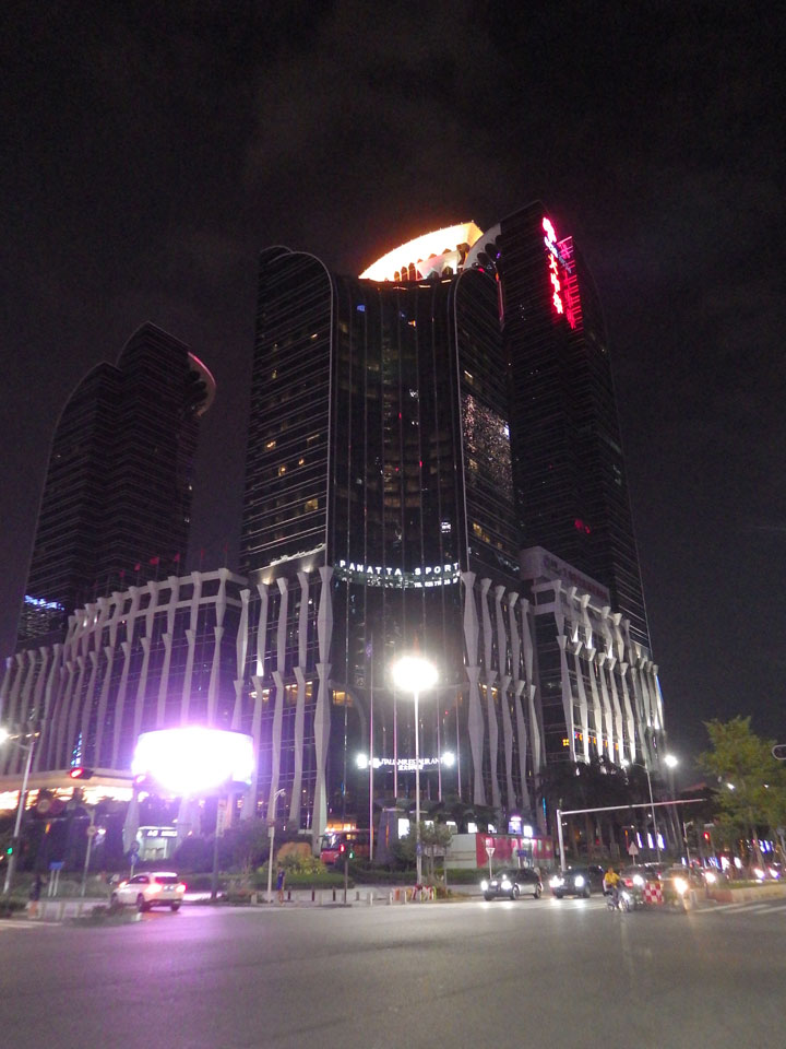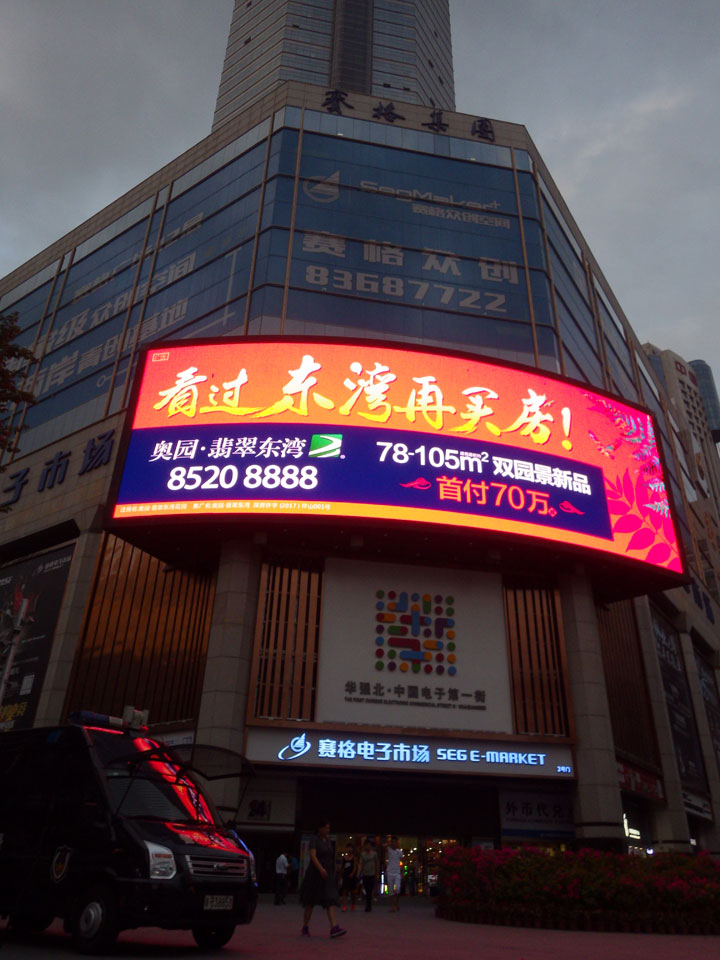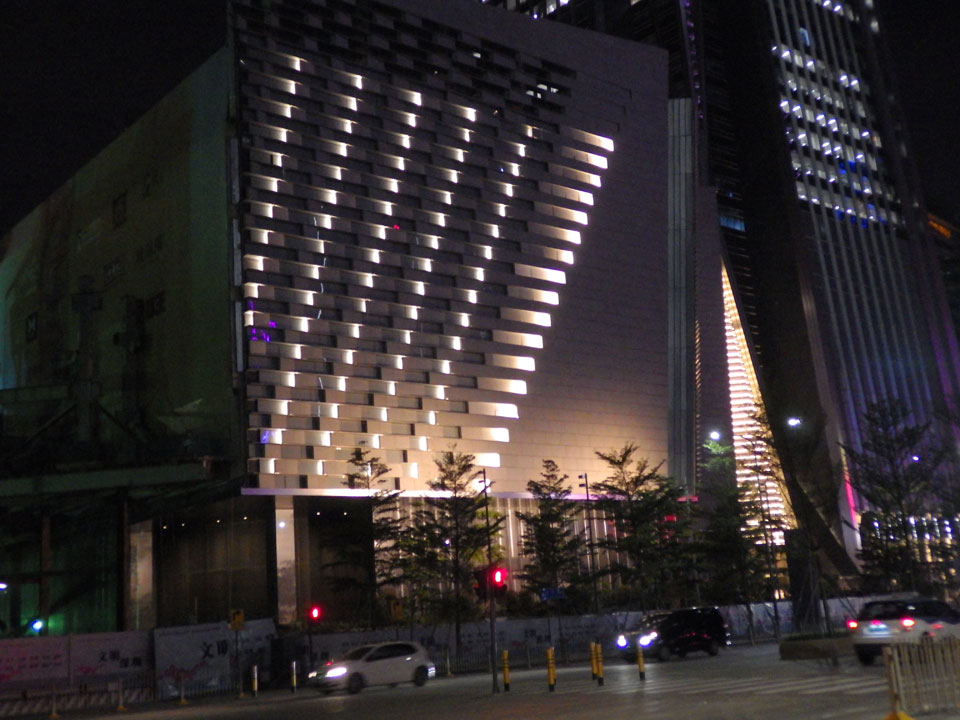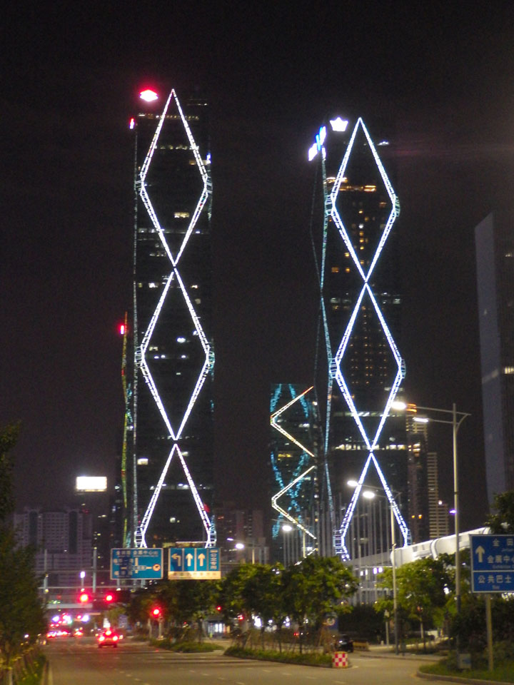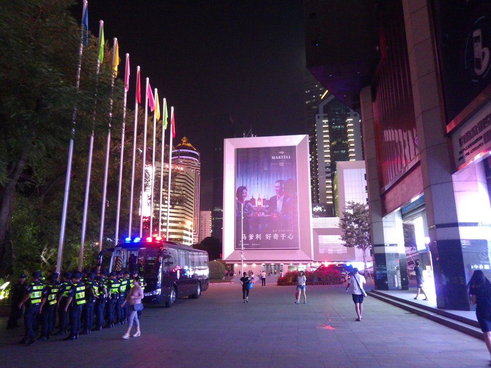 Zurück fuhr ich nur ein paar Stationen und stieg am Convention Center aus. Da war die „Link City“ – eine Untergrund Ladenstraße. Eine Menge Essens-Läden, darunter auch Yoshinoya. So hatte ich mal einen Vorgeschmack auf Japan und chattete etwas mit zu Hause. Wieder oben auf der Straße staunte ich über hohe Häuser und erneute LED Animationen an den Fassaden. China ist supermodern, da staune ich schon. Wieviel Substanz dahinter steht, kann man schwer sagen. Die meisten Wolkenkratzer zeigen gigantische Telefonnummern, unter denen man wohl Räume mieten kann.