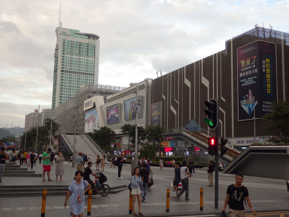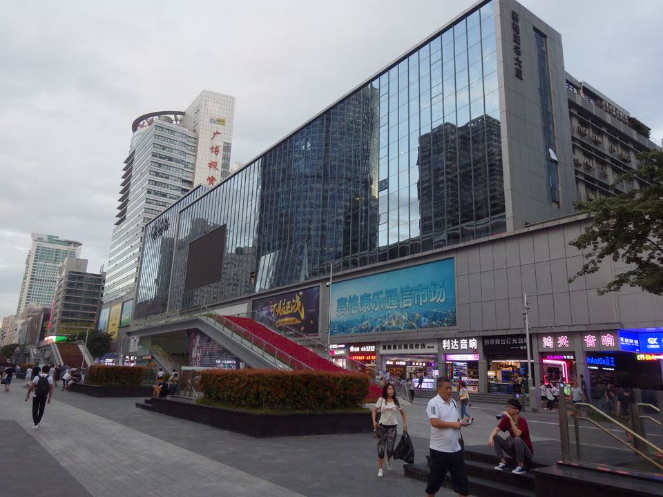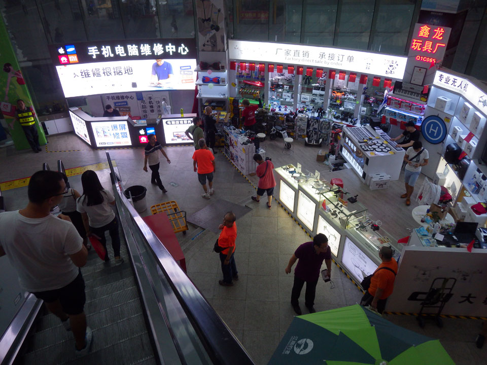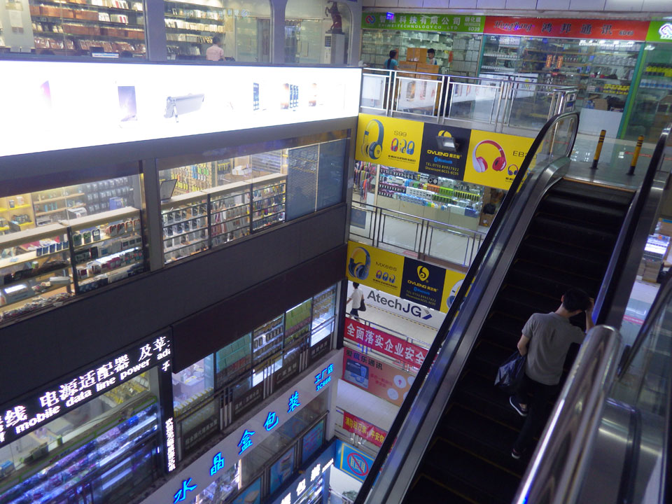 Huaqiangbei ist das Shopping-Zentrum. Wie fast alles in Shenzen sah es dort ziemlich modern aus. Ich fand ein paar Läden und staunte über Etagen voller USB-Kabel, Handhüllen, SD-Karten. Mich hätten eigentlich eBook Reader interessiert, denn auf eInk liest es sich immer noch am besten. Solche Sachen fand ich leider nicht. Es flogen ab und zu Dronen durch die Gegend.