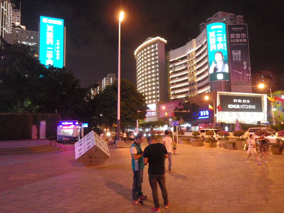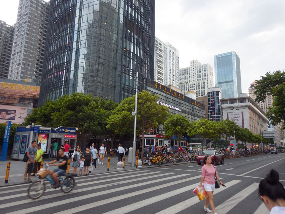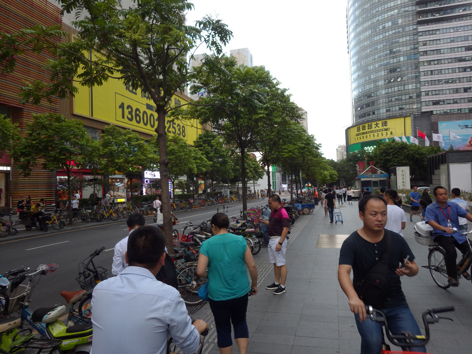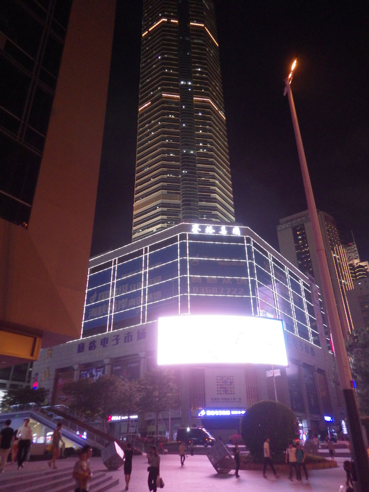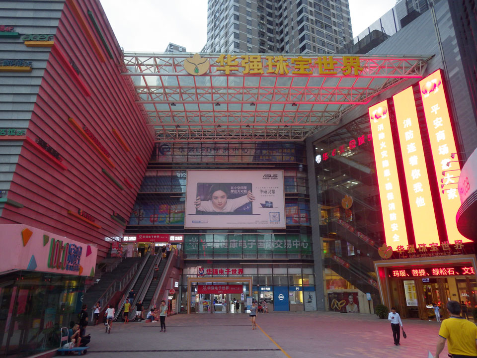 Huaqiangbei ist das Shopping-Zentrum. Wie fast alles in Shenzen sah es dort ziemlich modern aus. Ich fand ein paar Läden und staunte über Etagen voller USB-Kabel, Handhüllen, SD-Karten. Mich hätten eigentlich eBook Reader interessiert, denn auf eInk liest es sich immer noch am besten. Solche Sachen fand ich leider nicht. Es flogen ab und zu Dronen durch die Gegend.