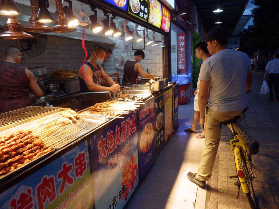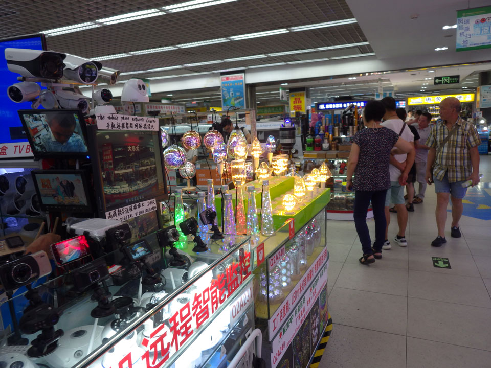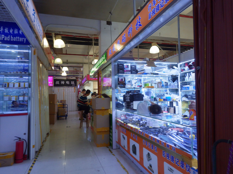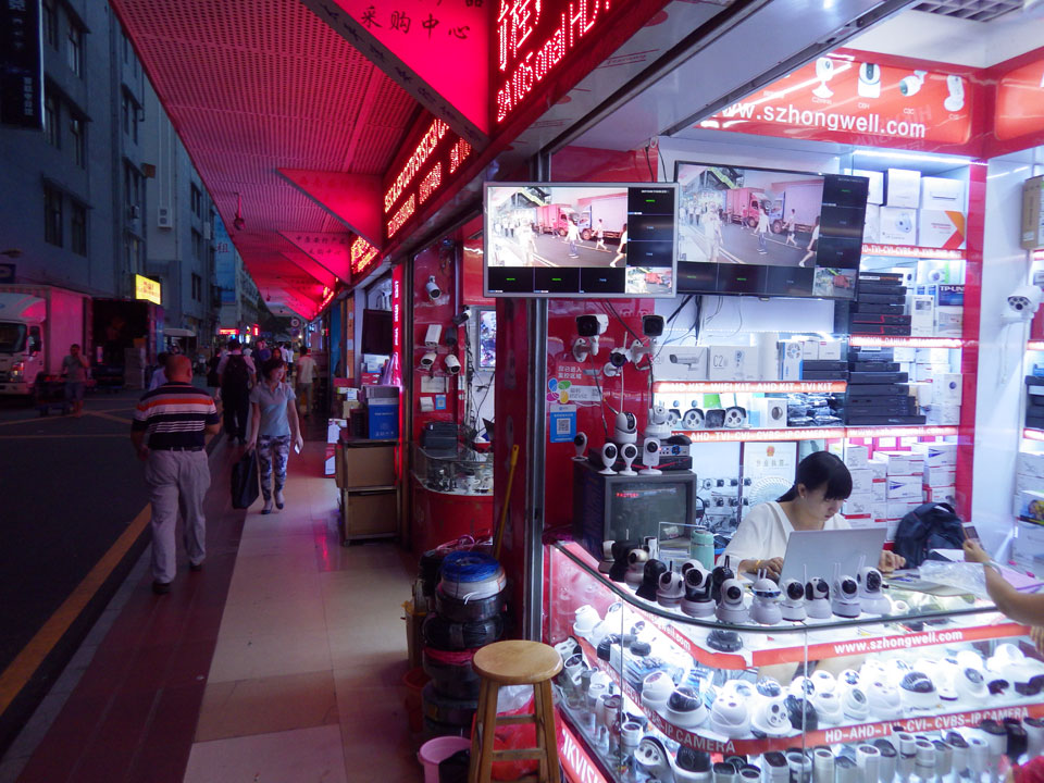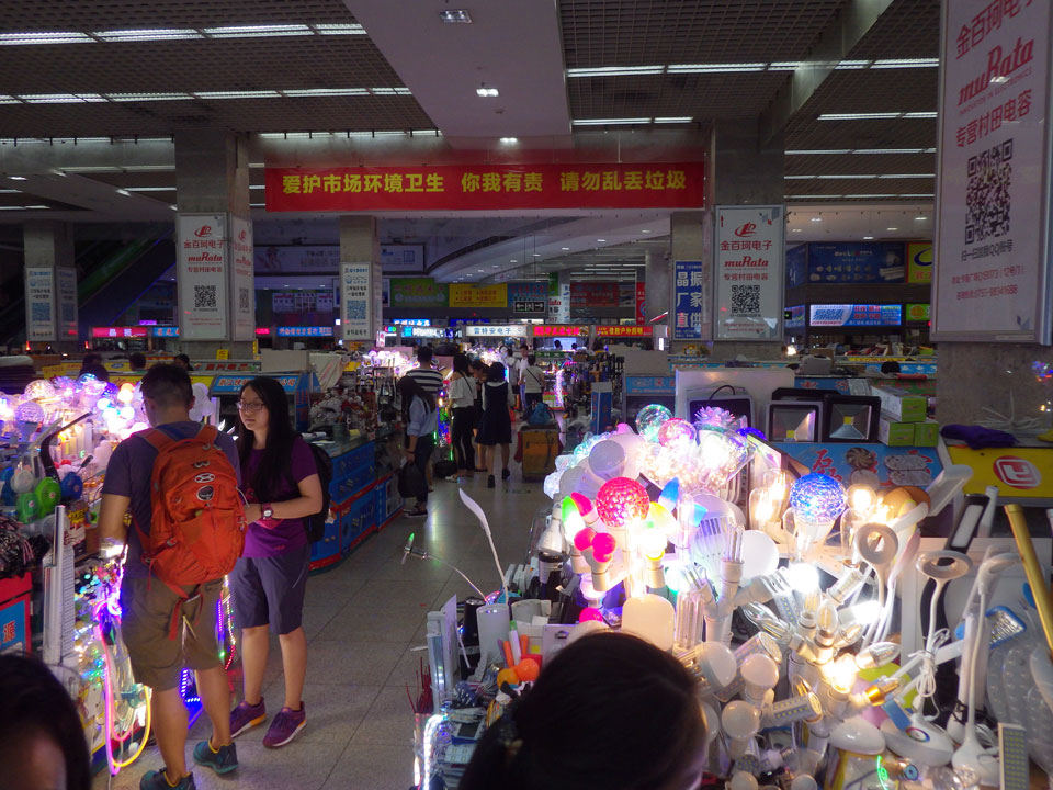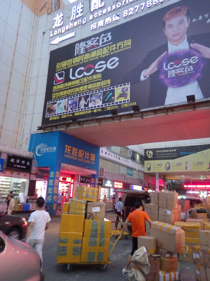 Gegen 18:30 schlossen die Shops langsam. Viele Kisten wurden herumtransportiert. Jeder Stand ist von einer Firma und es gibt davon hunderte. Ich fand auch meine alte Solar-Powerbank. Damals für €15 ein Fehlkauf, weil schlechte Qualität, fragte ich hier nach einem Einzelpreis – 17 Yuan (also knapp €2). Eine wasserdichte Handyhülle für 10 CNY (€1,20), die ich sonst auch für €8-€10 im Laden sah. Hier scheinen die Preise also ungefähr 1/8 des westlichen Ladenpreises zu sein – bei großer Stückzahl nochmal runter. So gab es bspw. eine Powerbank-Promo: kaufe 100 – bekomme 40 gratis obendrauf. Ich hatte da noch nicht alles gesehen, komme vielleicht nochmals hierher. So richtig will ich aber auch nichts kaufen, weil ich eben nichts weiter transportieren kann. Mal gut zu sehen, wo die eBay Verkäufer ihre Sachen her bekommen oder von wo verschicken. Gleichzeitig wundere ich mich, wie manche Leute ihr Leben bestreiten. Nur mit USB-Kabeln handeln? Ist eben alles nicht so einfach, auch nicht irgendwelchen Content erzeugen. Das ganze Leben Memes und News tippen? Vielleicht doch lieber Videos?