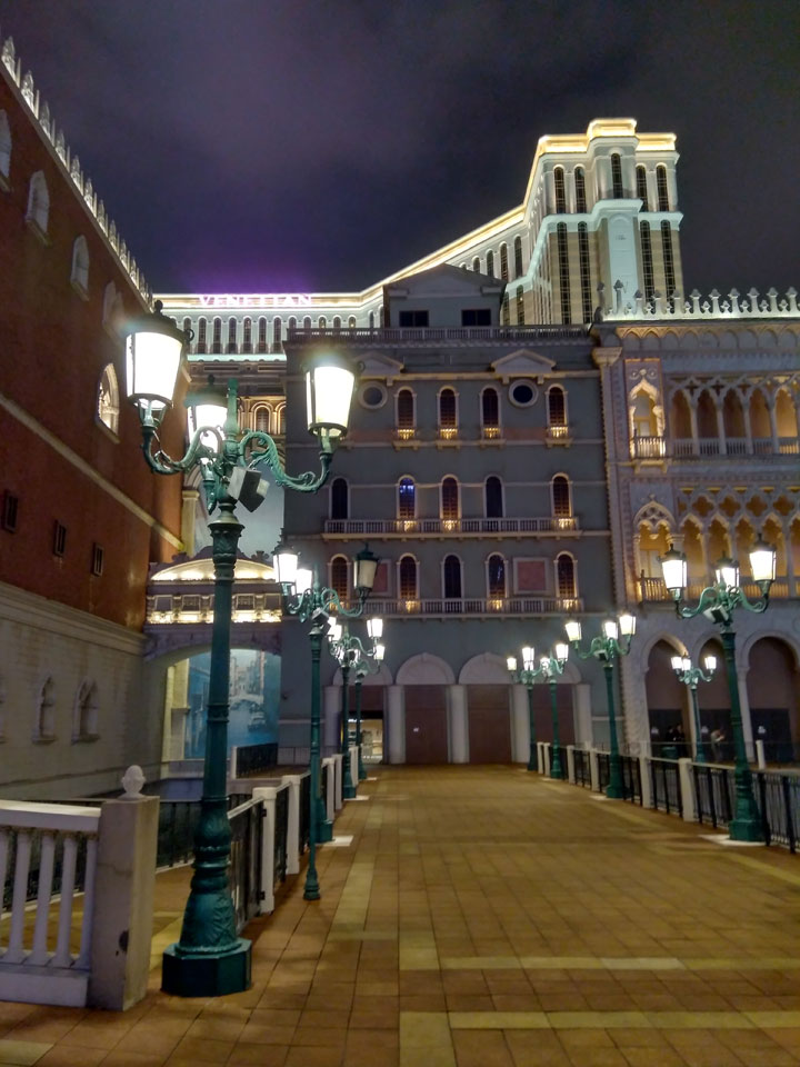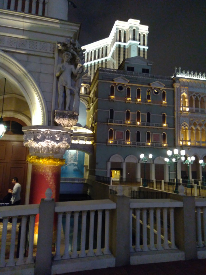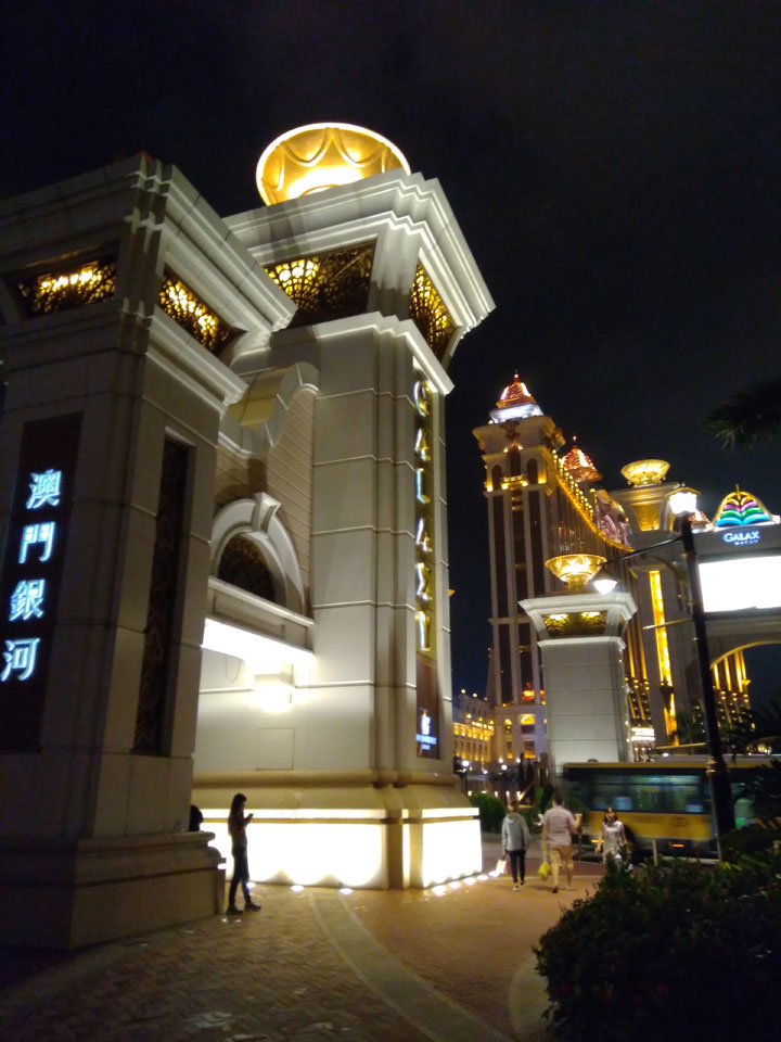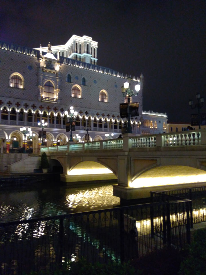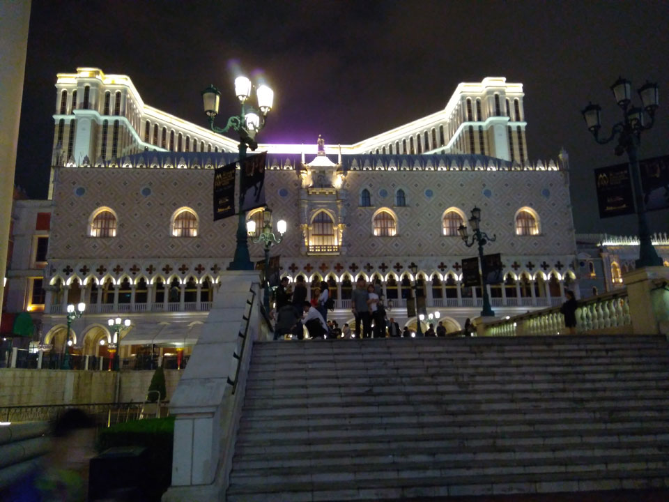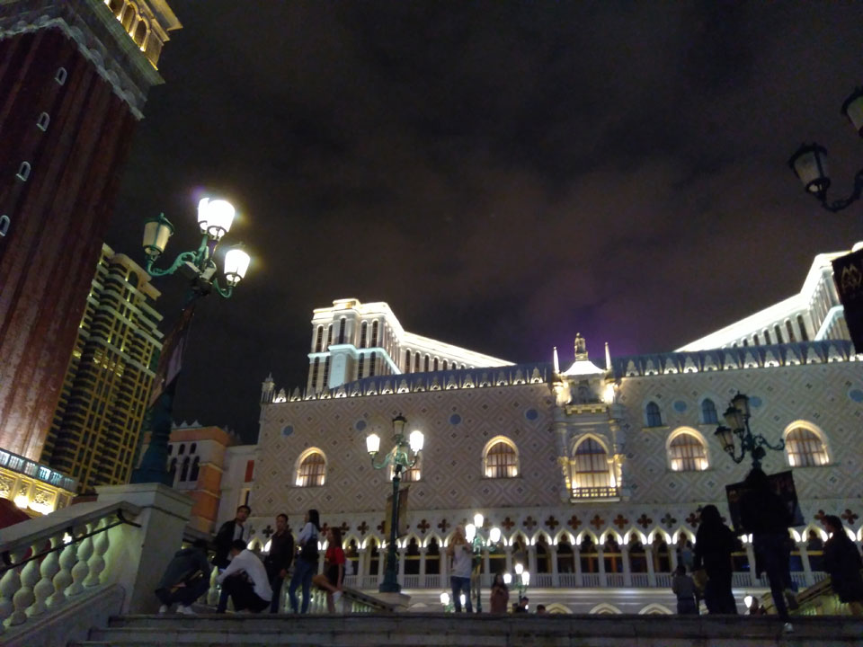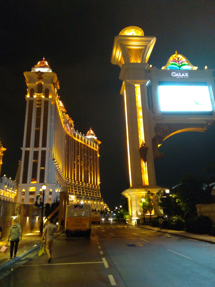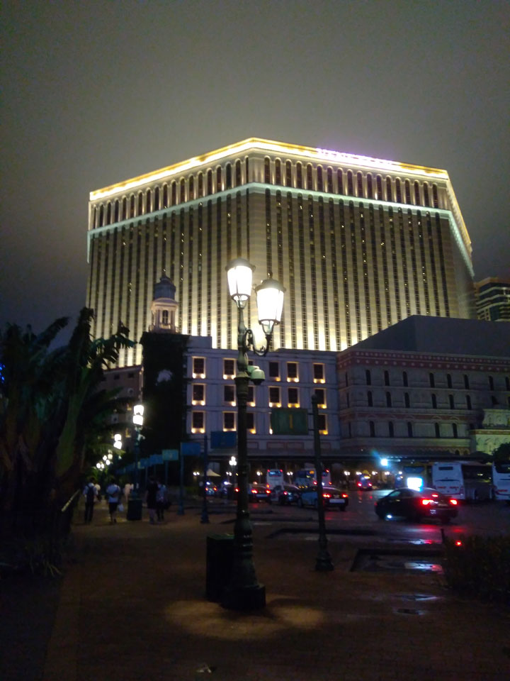 Ich höre Live-Music und sah dann eine Band aus Angola aufspielen. Macau hatte ein kleines Festival portugiesisch sprechender Länder. War gut, der Regen stoppte ab und zu. Als letztes wollte ich noch das Venetian sehen. Dazu musste ich wieder mit dem Shuttlebus zum Galaxy. Auch das klappte – um 21:00 war ich dort.