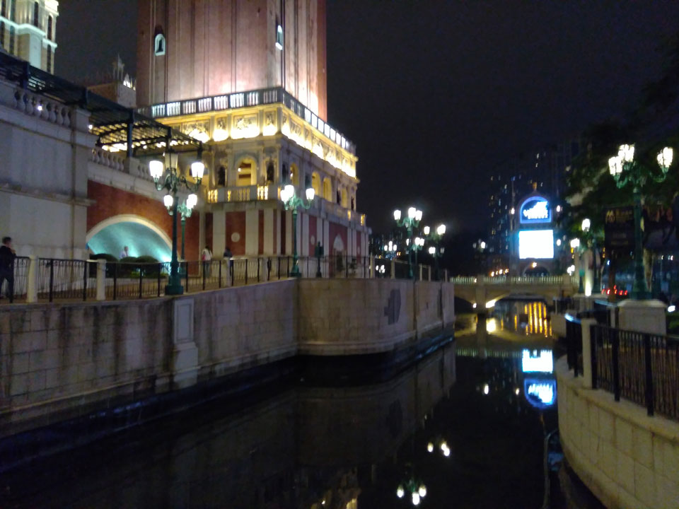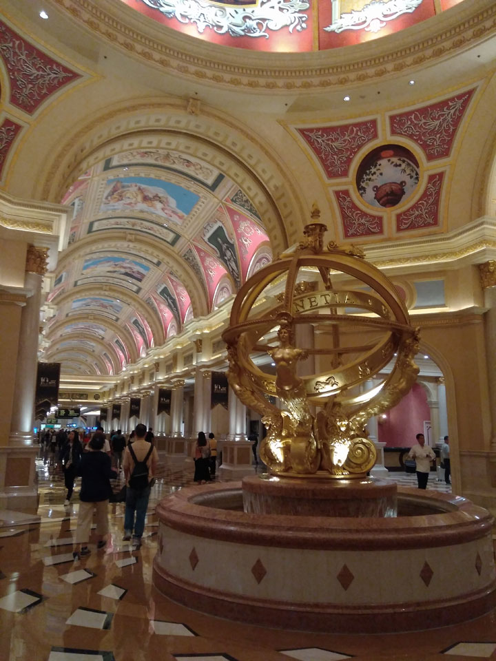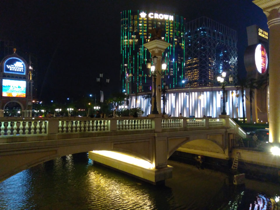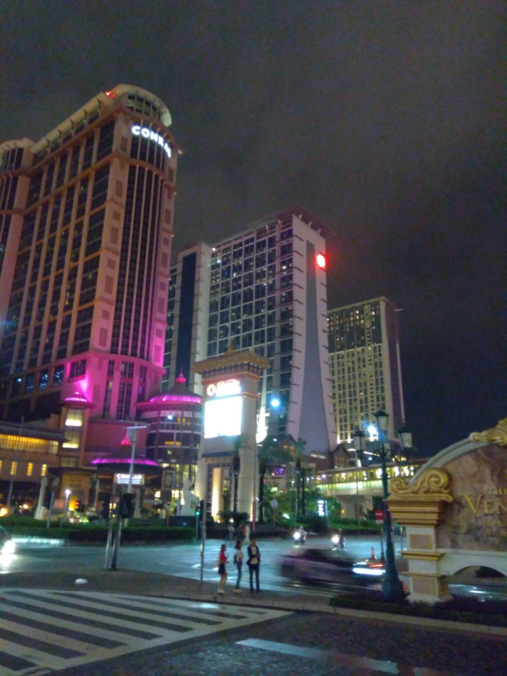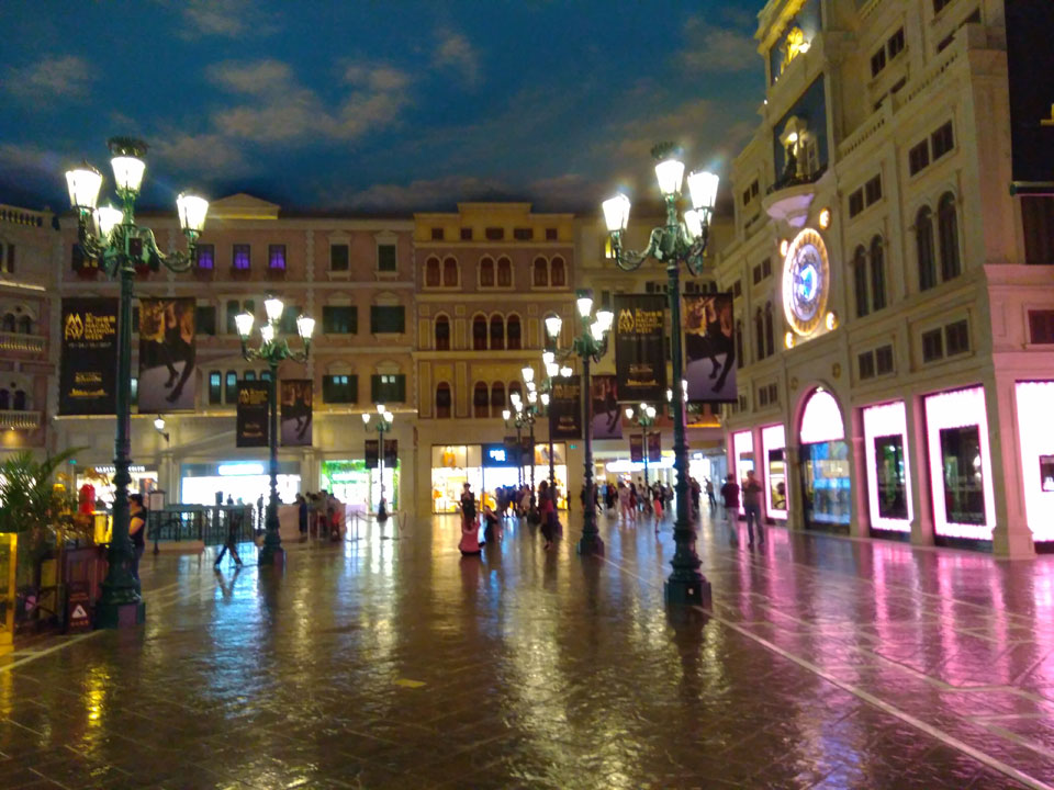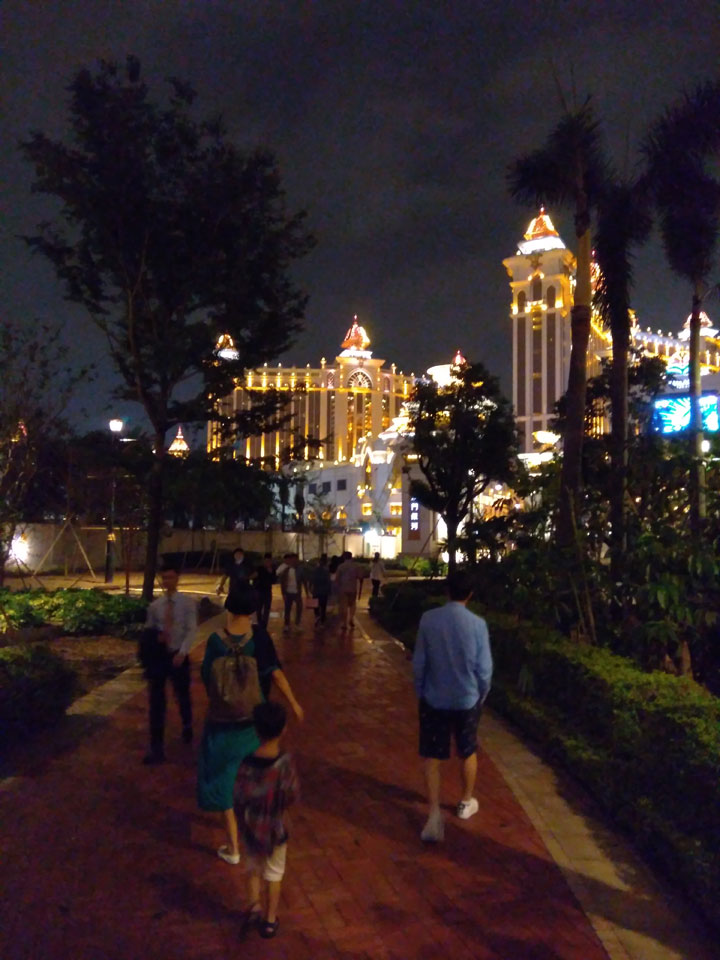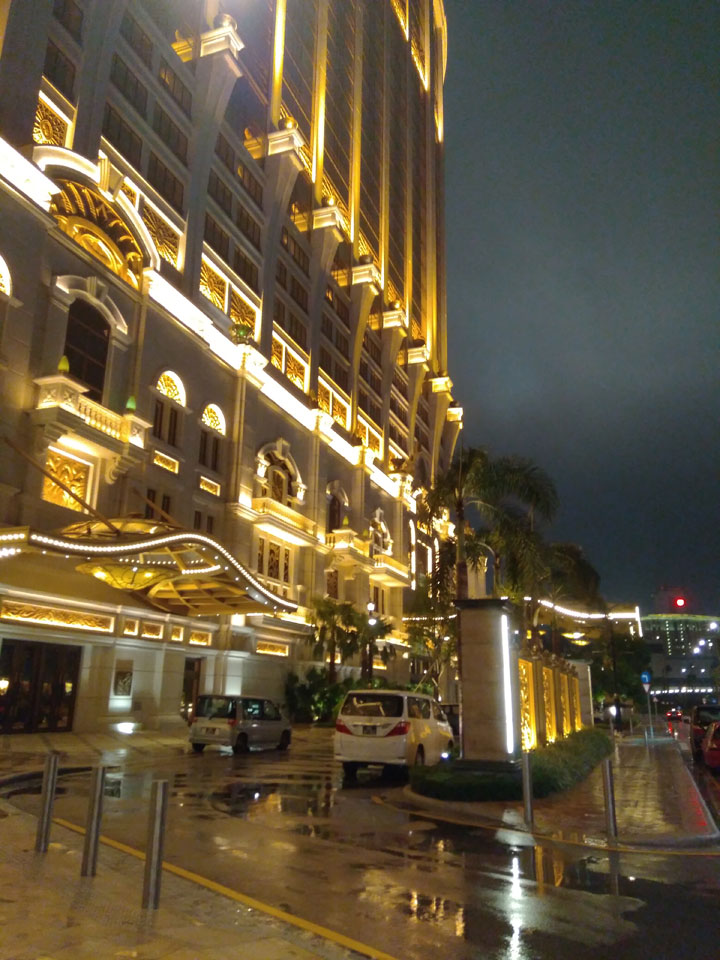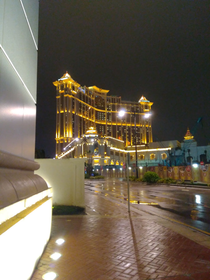 Ich höre Live-Music und sah dann eine Band aus Angola aufspielen. Macau hatte ein kleines Festival portugiesisch sprechender Länder. War gut, der Regen stoppte ab und zu. Als letztes wollte ich noch das Venetian sehen. Dazu musste ich wieder mit dem Shuttlebus zum Galaxy. Auch das klappte – um 21:00 war ich dort.