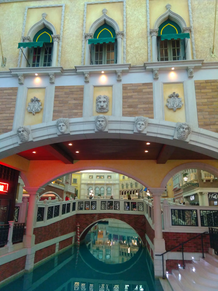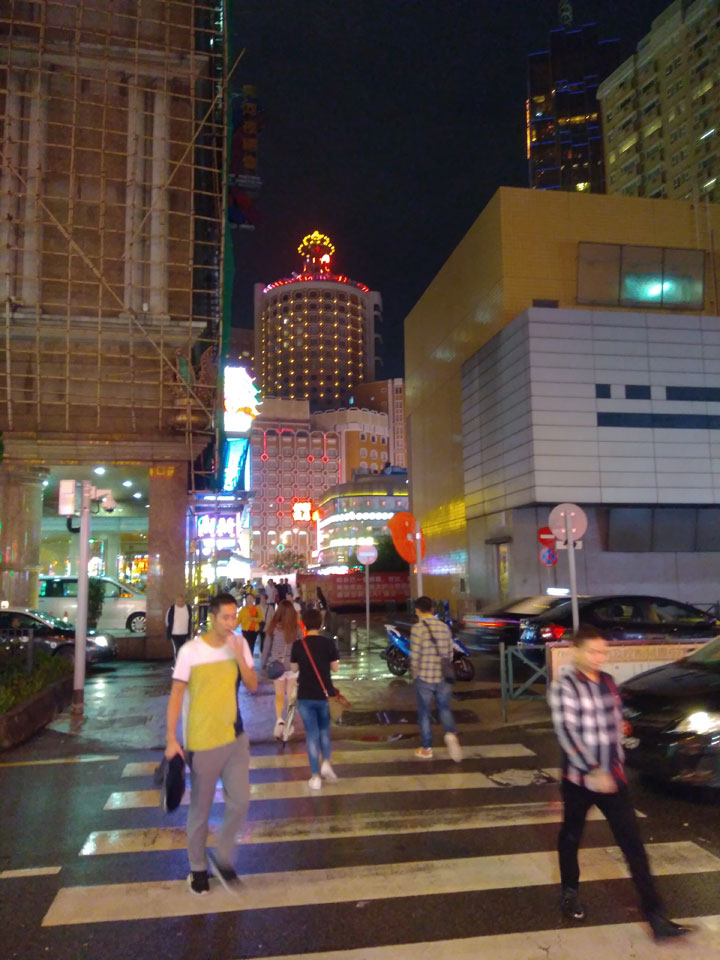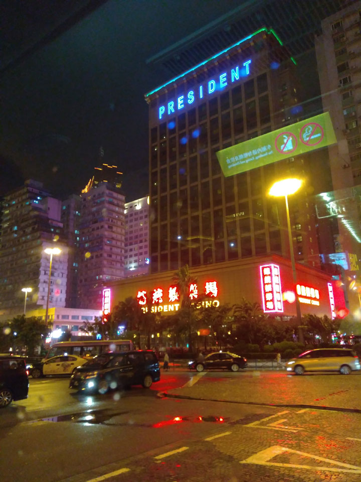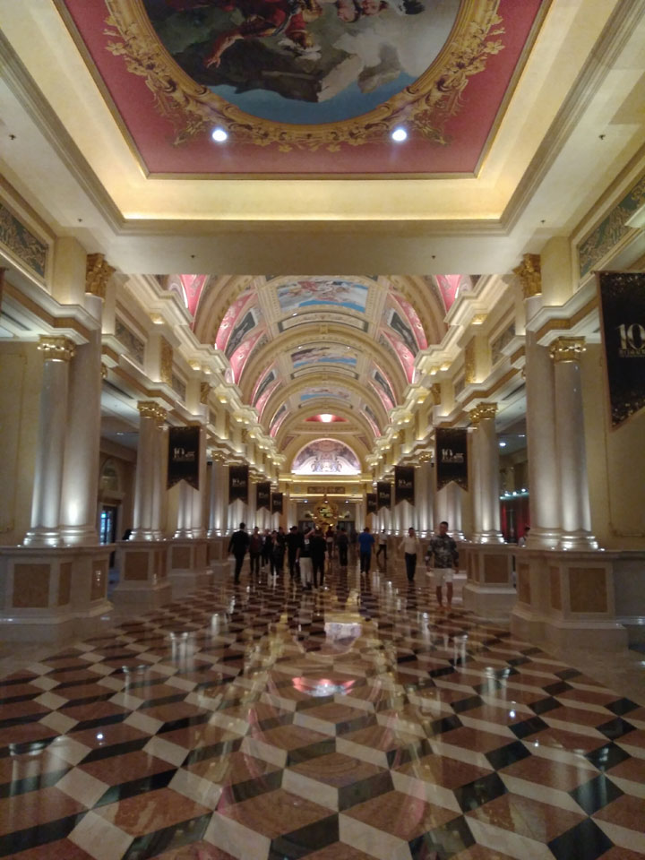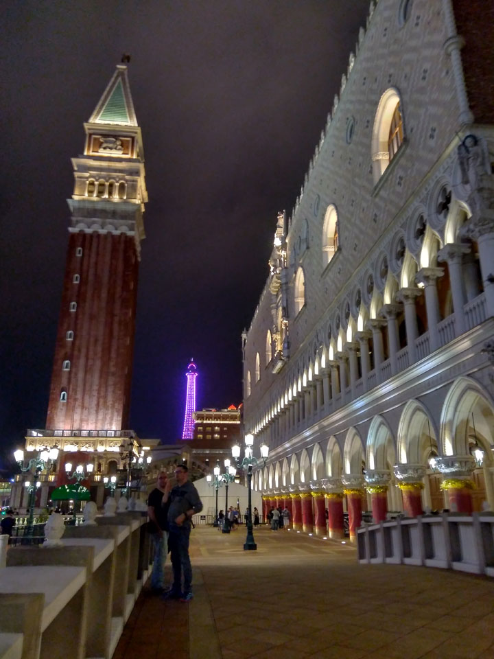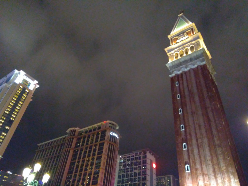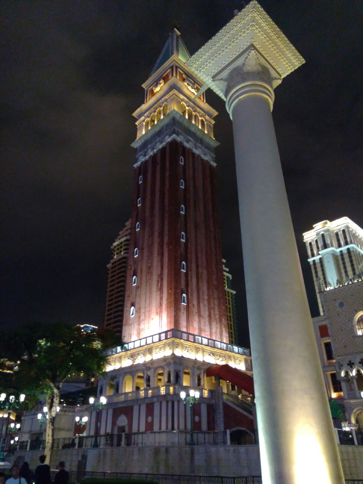 Ich höre Live-Music und sah dann eine Band aus Angola aufspielen. Macau hatte ein kleines Festival portugiesisch sprechender Länder. War gut, der Regen stoppte ab und zu. Als letztes wollte ich noch das Venetian sehen. Dazu musste ich wieder mit dem Shuttlebus zum Galaxy. Auch das klappte – um 21:00 war ich dort.
