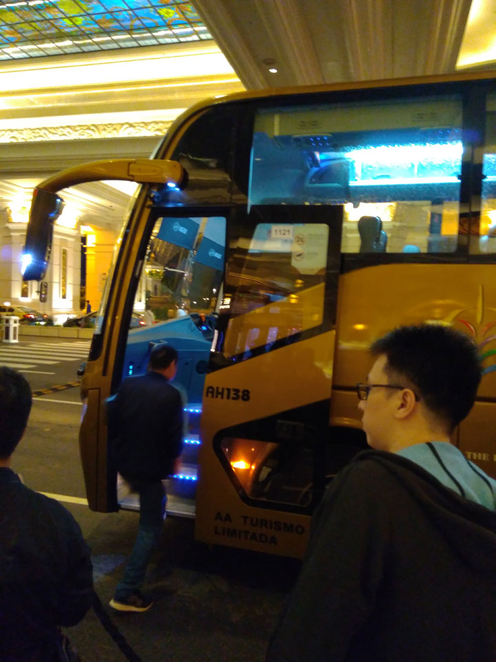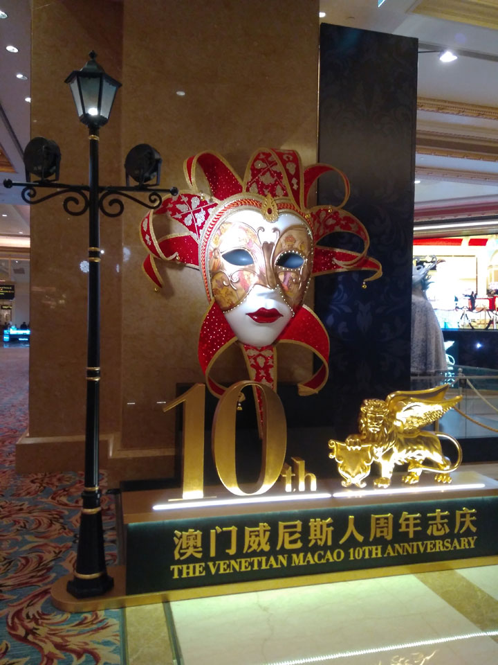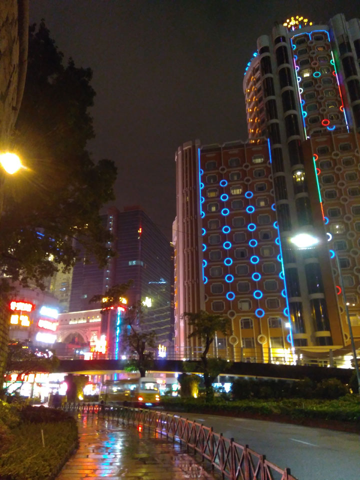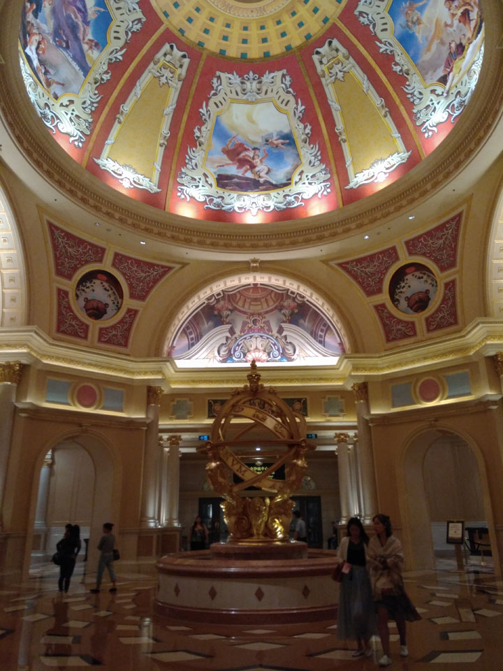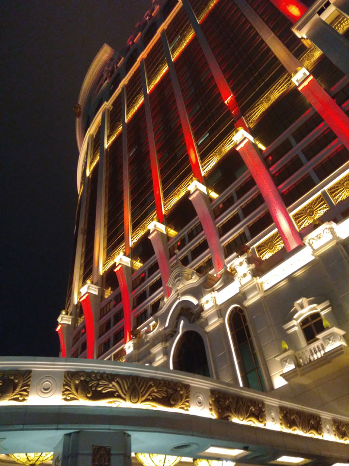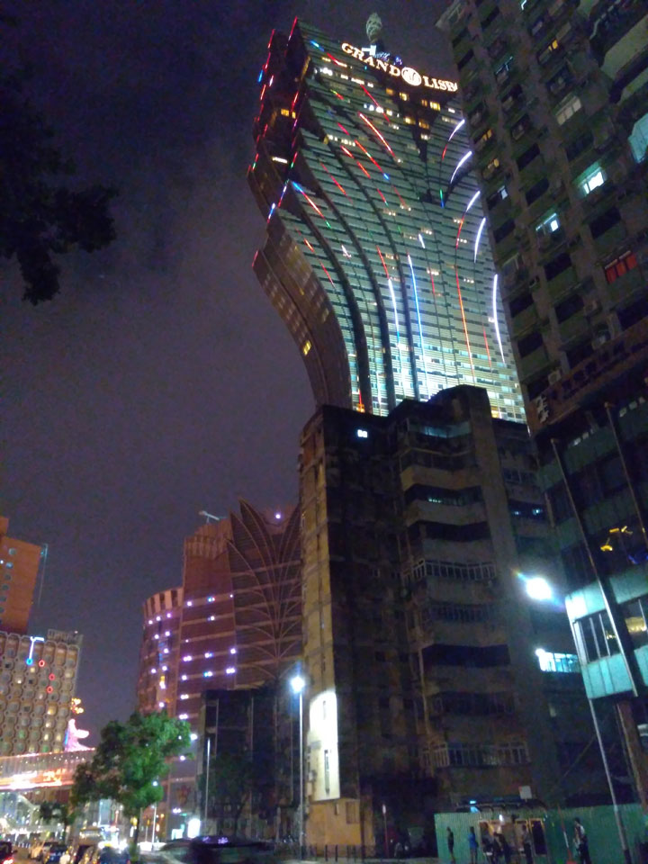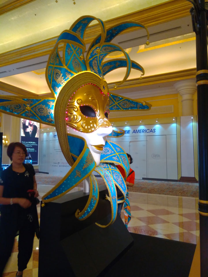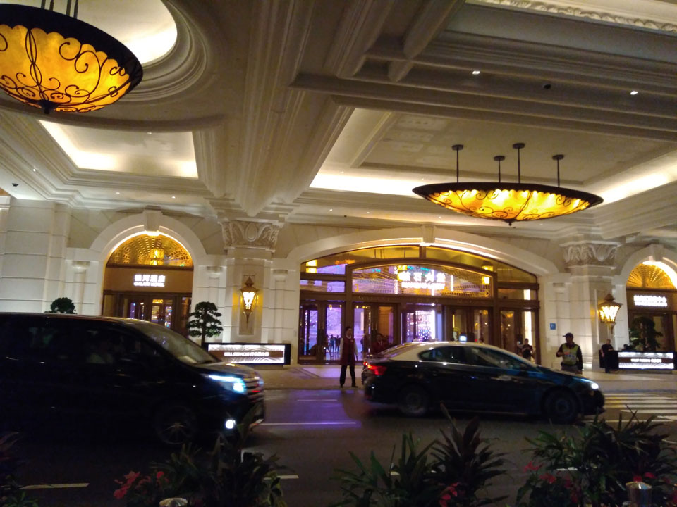 Ich höre Live-Music und sah dann eine Band aus Angola aufspielen. Macau hatte ein kleines Festival portugiesisch sprechender Länder. War gut, der Regen stoppte ab und zu. Als letztes wollte ich noch das Venetian sehen. Dazu musste ich wieder mit dem Shuttlebus zum Galaxy. Auch das klappte – um 21:00 war ich dort.