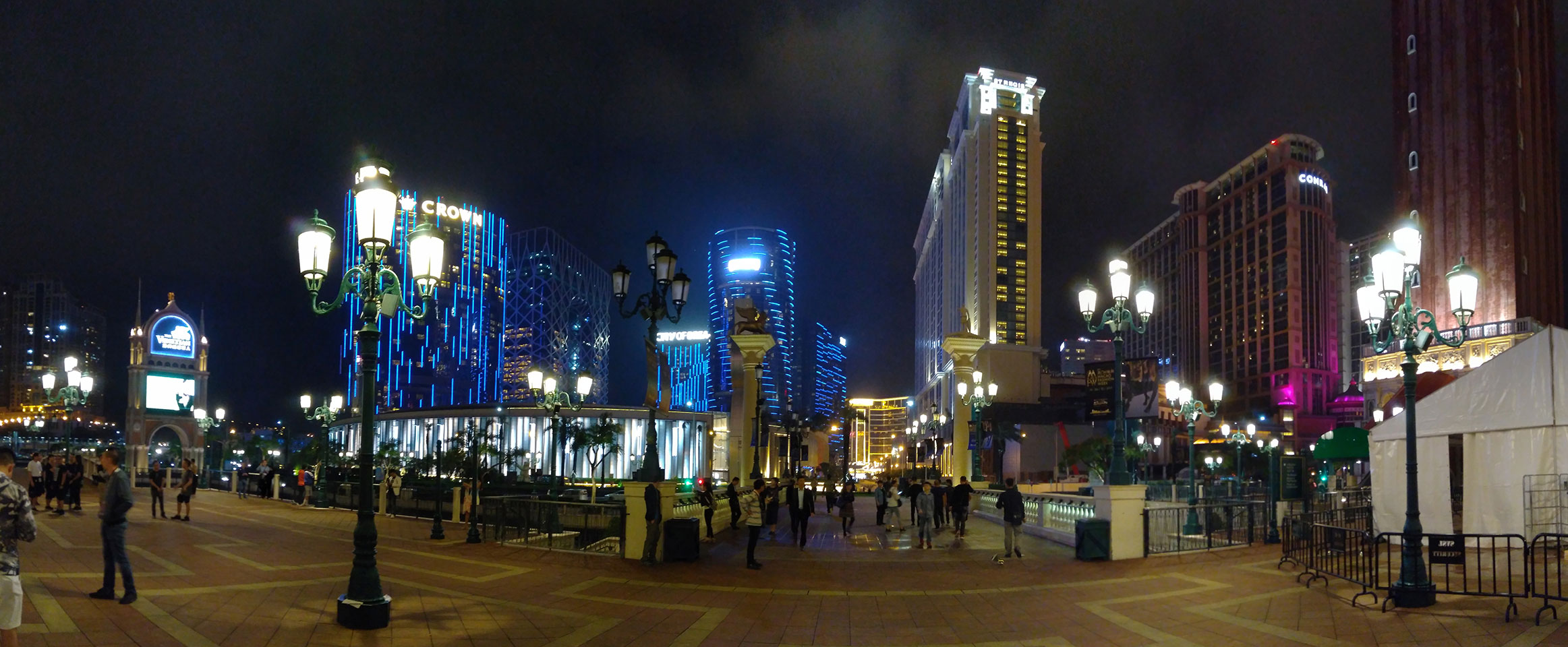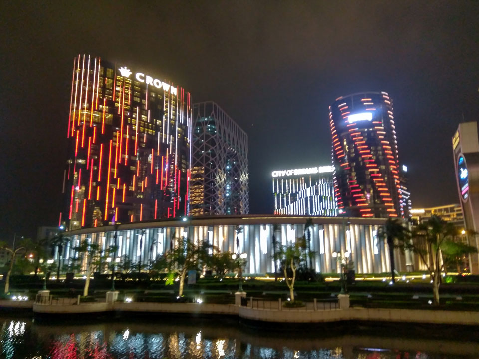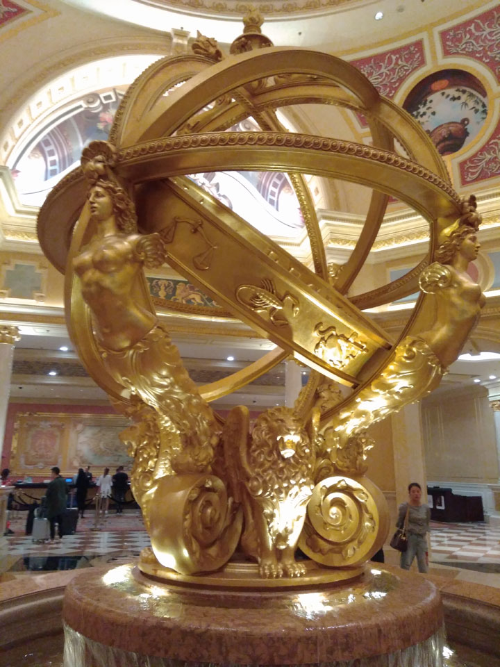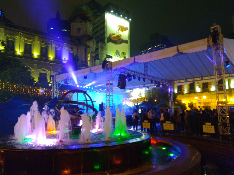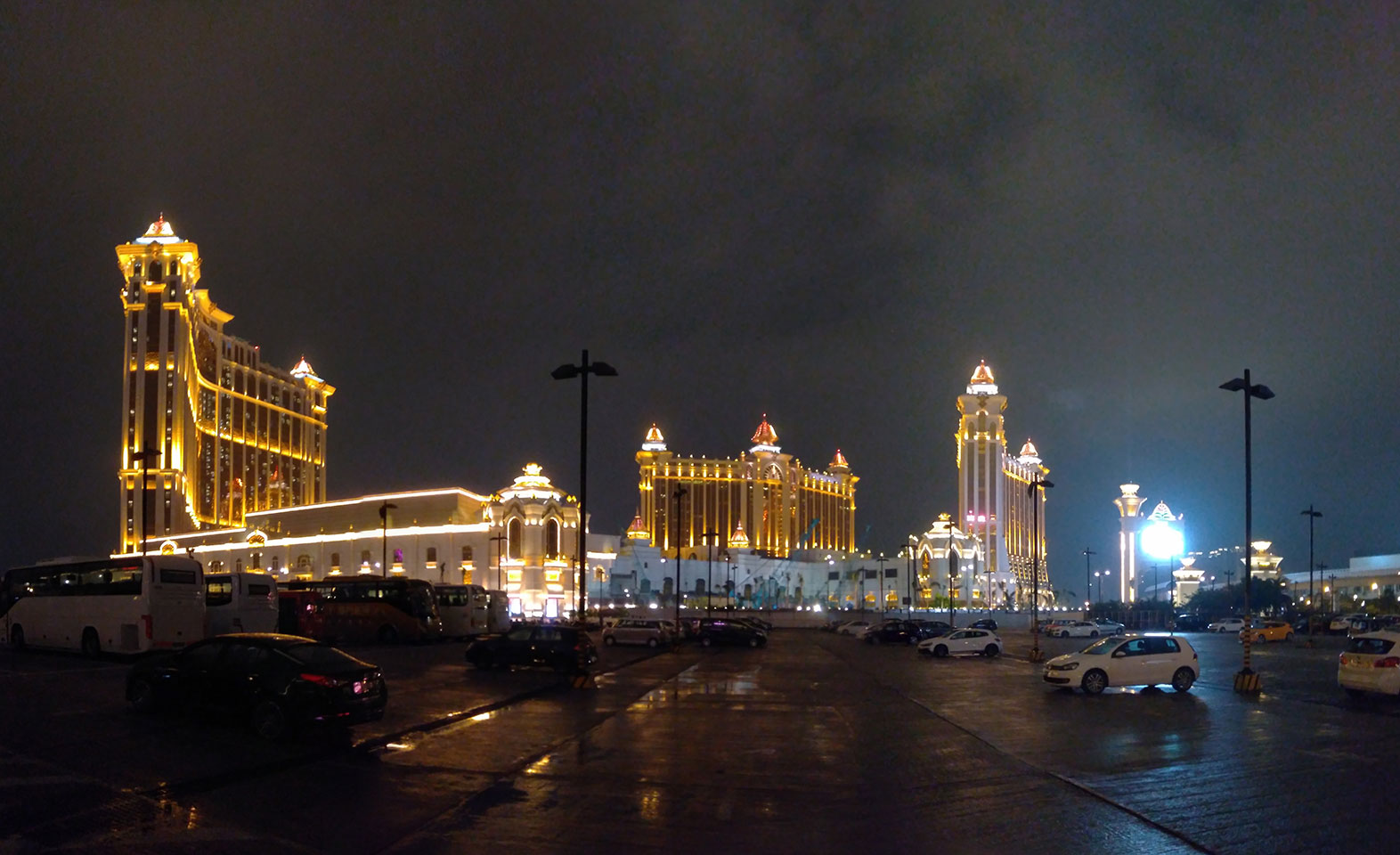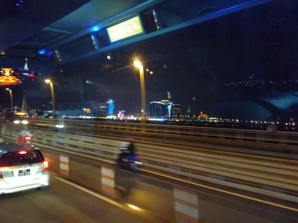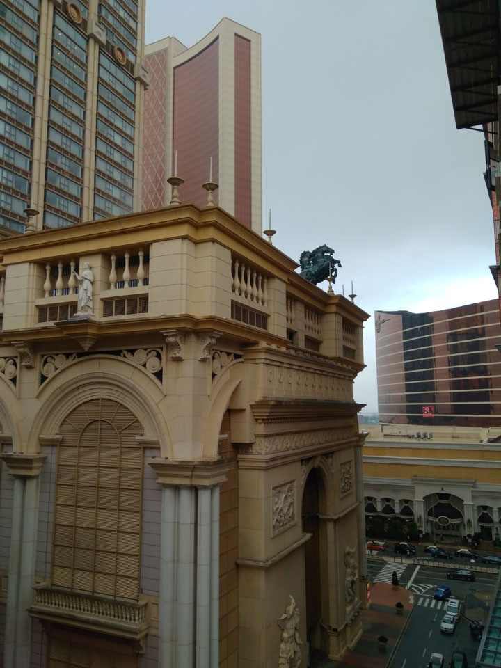 Ich höre Live-Music und sah dann eine Band aus Angola aufspielen. Macau hatte ein kleines Festival portugiesisch sprechender Länder. War gut, der Regen stoppte ab und zu. Als letztes wollte ich noch das Venetian sehen. Dazu musste ich wieder mit dem Shuttlebus zum Galaxy. Auch das klappte – um 21:00 war ich dort.