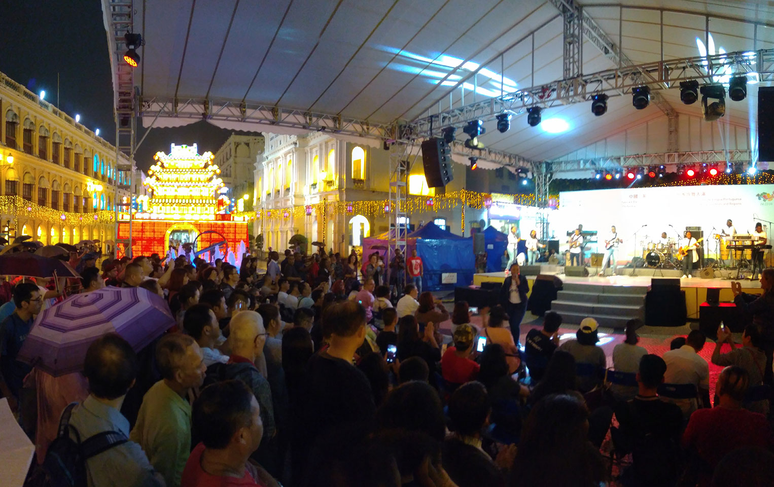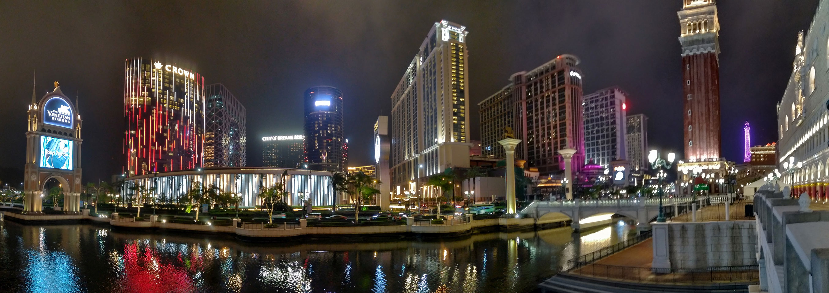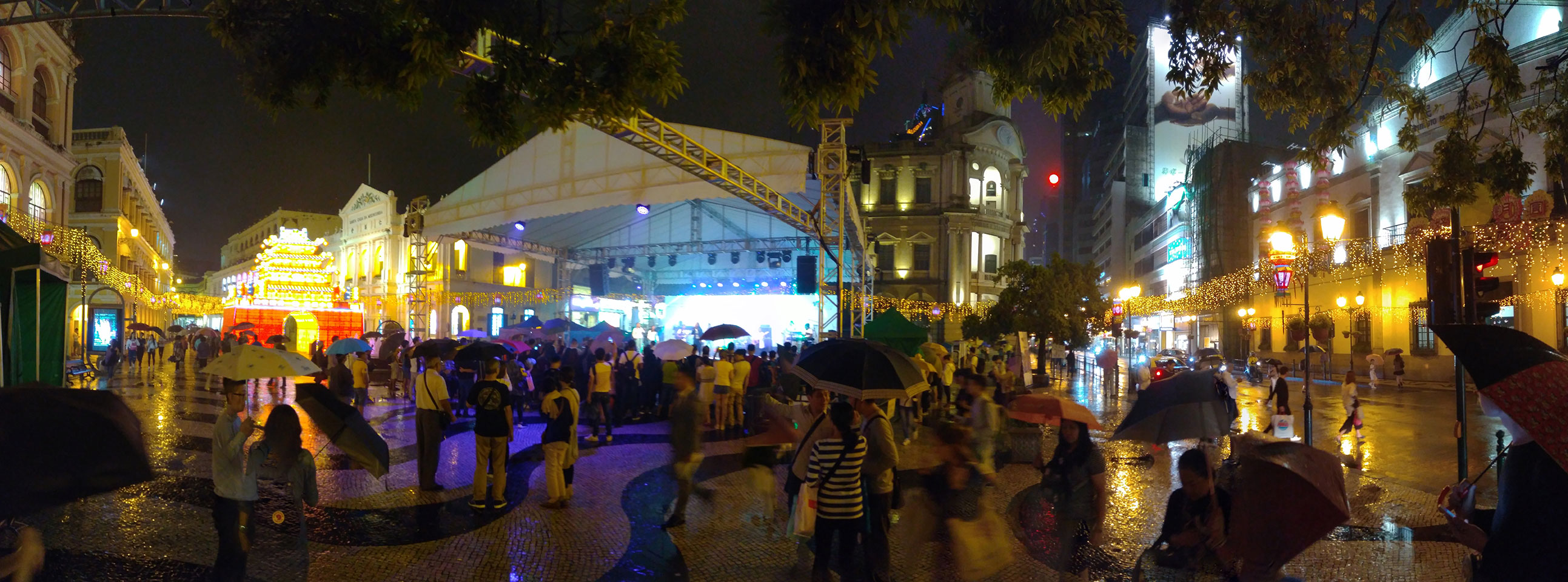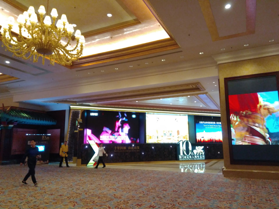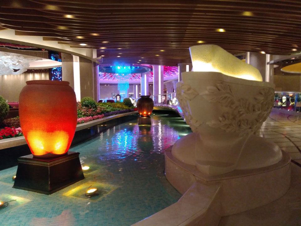 Ich höre Live-Music und sah dann eine Band aus Angola aufspielen. Macau hatte ein kleines Festival portugiesisch sprechender Länder. War gut, der Regen stoppte ab und zu. Als letztes wollte ich noch das Venetian sehen. Dazu musste ich wieder mit dem Shuttlebus zum Galaxy. Auch das klappte – um 21:00 war ich dort.