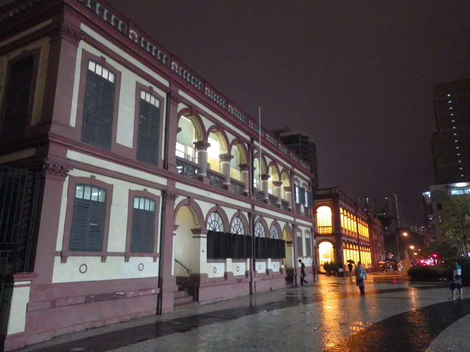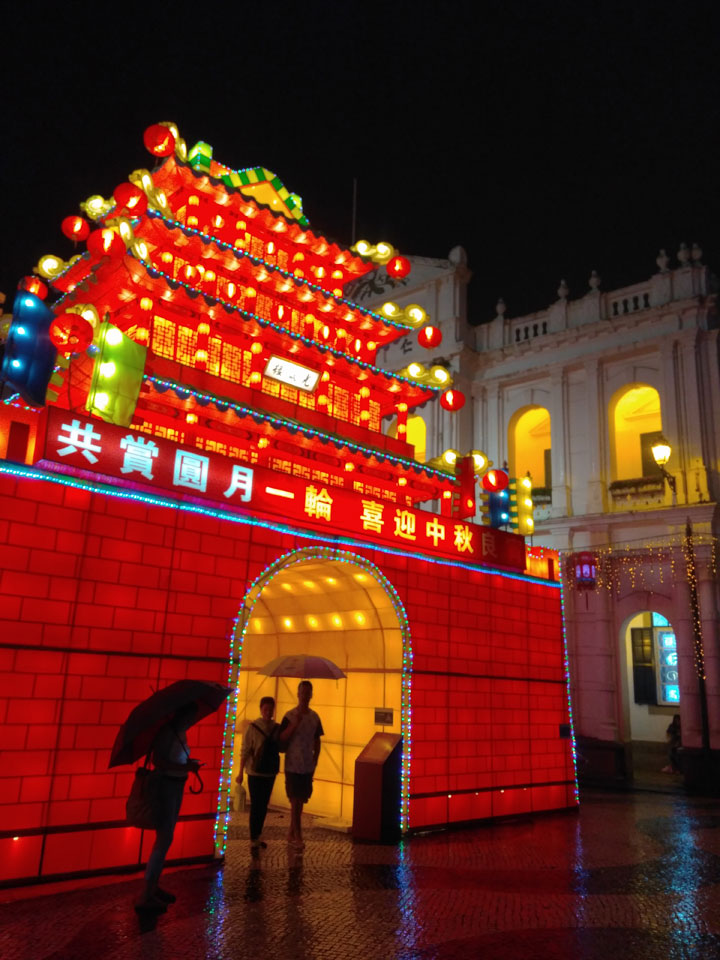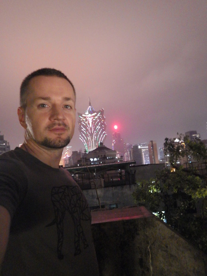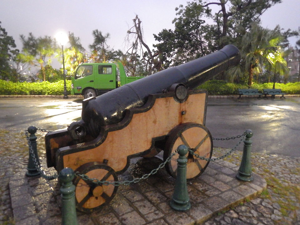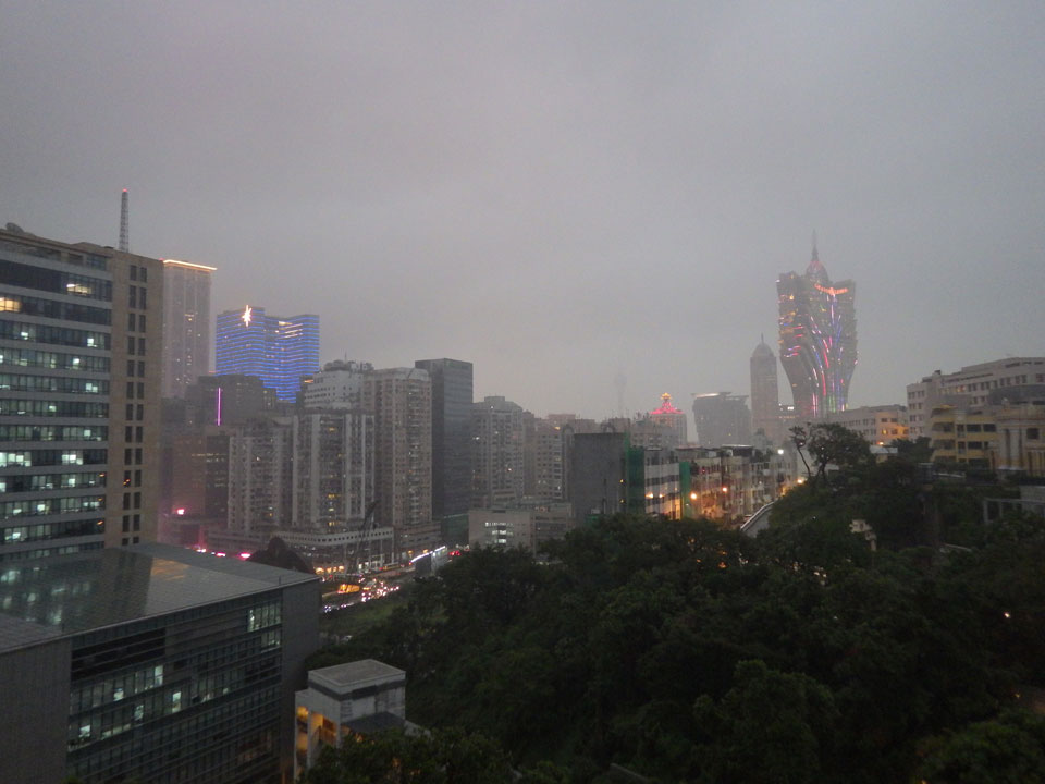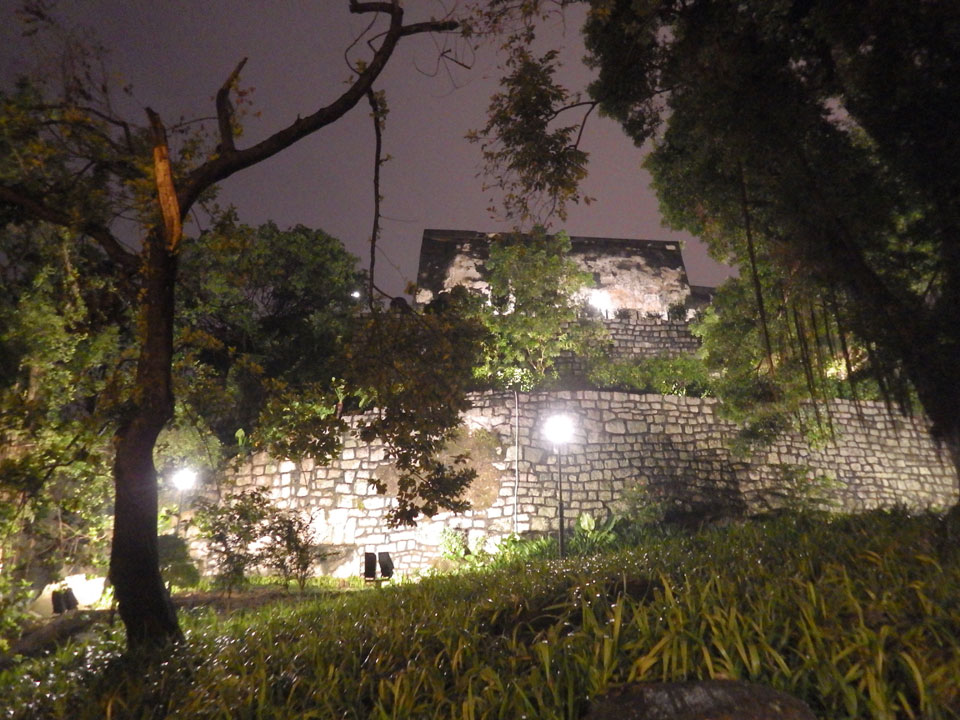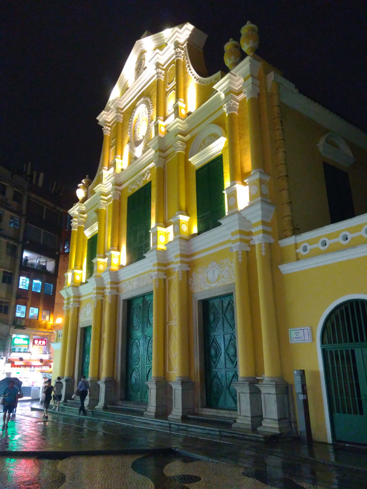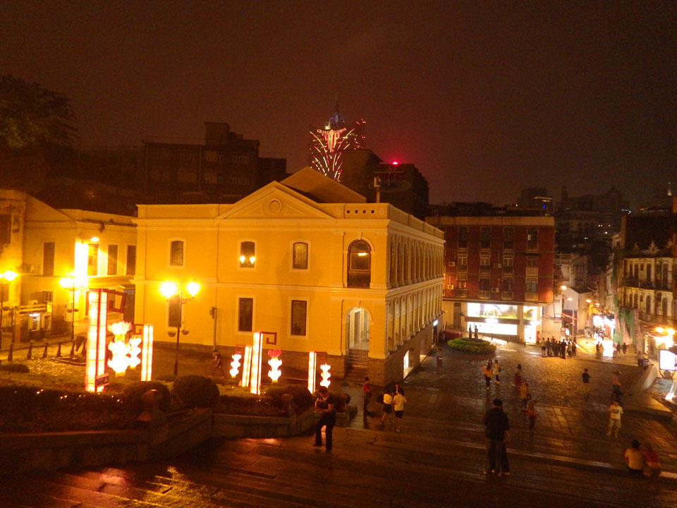 Das erste Ziel war der Guia Leuchtturm. Nach 18:00 geschlossen, sah ich den 15m hohen Turm auch leuchtend trotzdem in meiner Runde um das Fort. Gleich in der Nähe dann die Ruinen der St. Paul’s Kirche. Ich war nun etwas in einer Art Altstadt und das gefiel mir ganz gut. Trotz immer einsetzenden Regengüssen, war die Atmosphäre hier netter als in den gigantischen Casino-Komplexen. Meine Pentax war ohne Akkus, das Handy hielt aber durch.