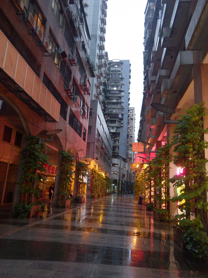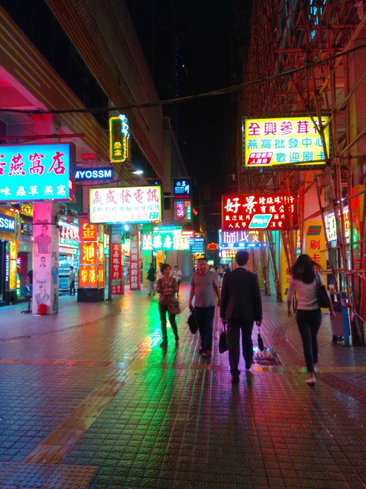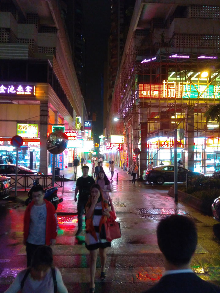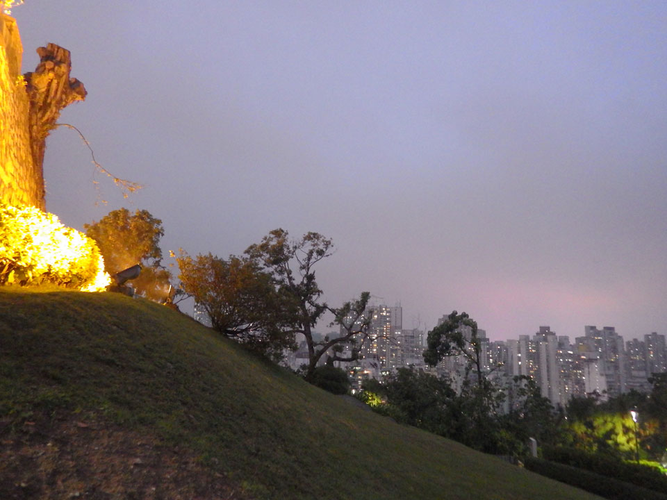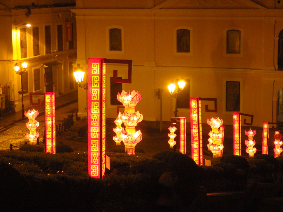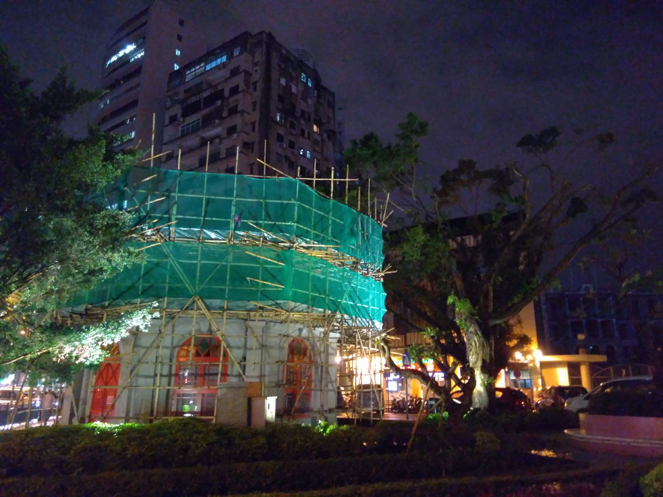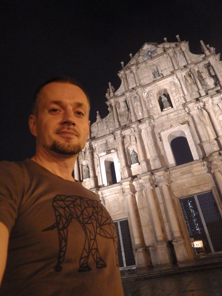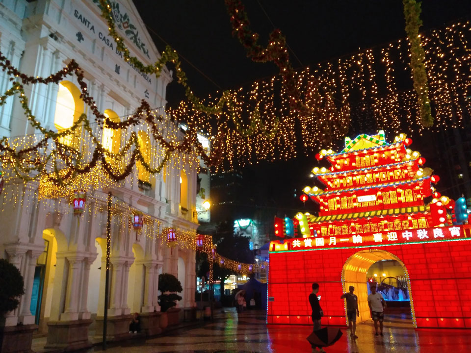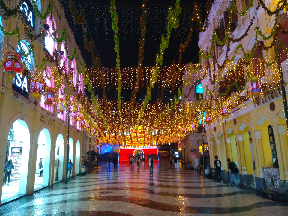 Das erste Ziel war der Guia Leuchtturm. Nach 18:00 geschlossen, sah ich den 15m hohen Turm auch leuchtend trotzdem in meiner Runde um das Fort. Gleich in der Nähe dann die Ruinen der St. Paul’s Kirche. Ich war nun etwas in einer Art Altstadt und das gefiel mir ganz gut. Trotz immer einsetzenden Regengüssen, war die Atmosphäre hier netter als in den gigantischen Casino-Komplexen. Meine Pentax war ohne Akkus, das Handy hielt aber durch.