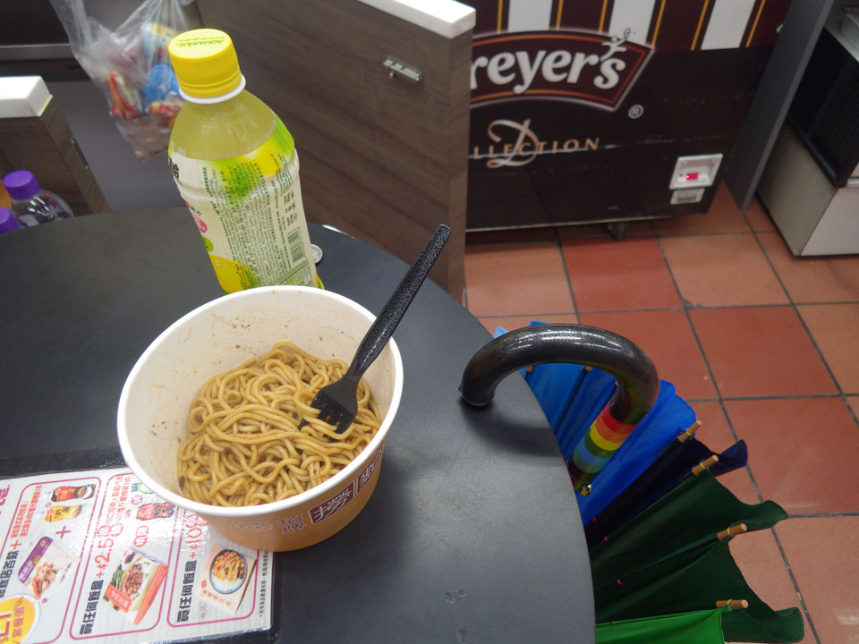 So hatte ich das meiste gesehen, was ich wollte. Es gäbe natürlich noch einige Sachen mehr aber für den ersten Eindruck reichte es mir. Ich hatte von meinen 500 MOPs noch über 100 übrig. So kaufte ich mir im Minimarkt ein großes Essen, was ich dann vor meinem Zelt verdrückte. Alles in allem doch ein netter Abstecher hier nach Macau. Dank der Runde heute, besserte sich mein Bild etwas, was am ersten Tag noch ganz anders aussah. Ob man Macau gesehen haben muss – wer weiß. Wenn man einen Tag zu viel in Hongkong hat, lohnt sich der Abstecher vielleicht. Bei schönem Wetter reichen zwei Tage / eine Nacht – es sei denn, man hat hier was anderes vor…