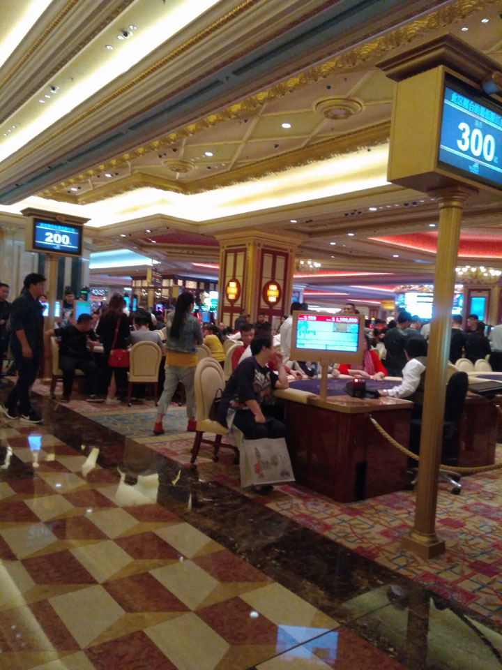 Über Umwege fand ich in’s Venetian. Dort war ehct was los. Die Atmosphäre ist zwar nicht mit Vegas vergleichbar, was wohl am fehlenden Alkohol liegt. Die Leute dort zockten aber ganz schön. Mindesteinsätze von 500 HLD oder auch 1000 HKD an den normalen Tischen – Maximum 1.50 Mio HKD. Da muss man es haben, denn die High Limit Tische sind auch hier separat.
