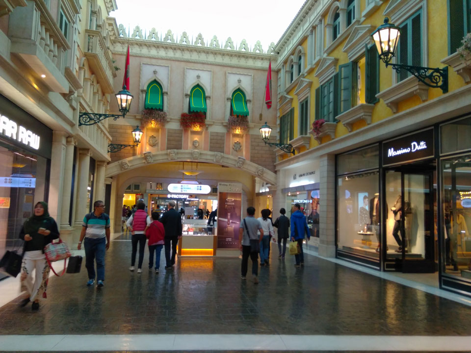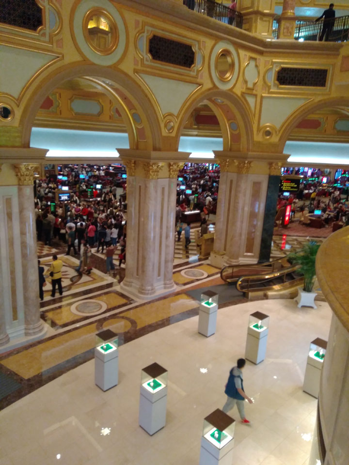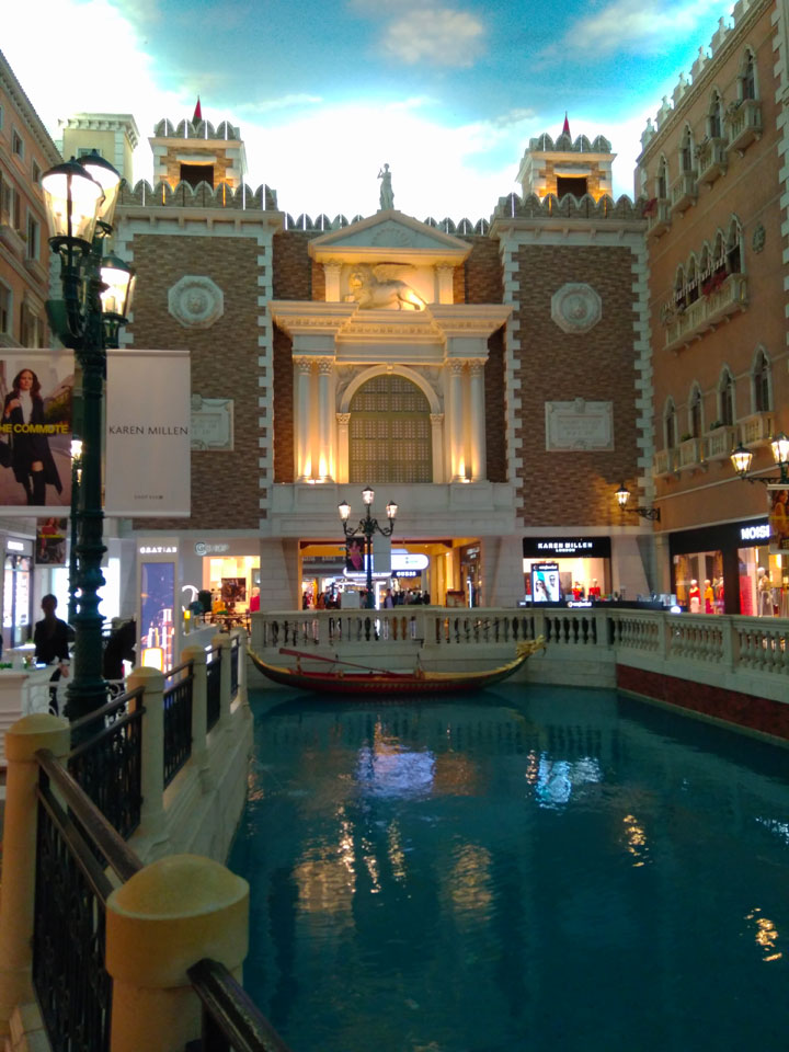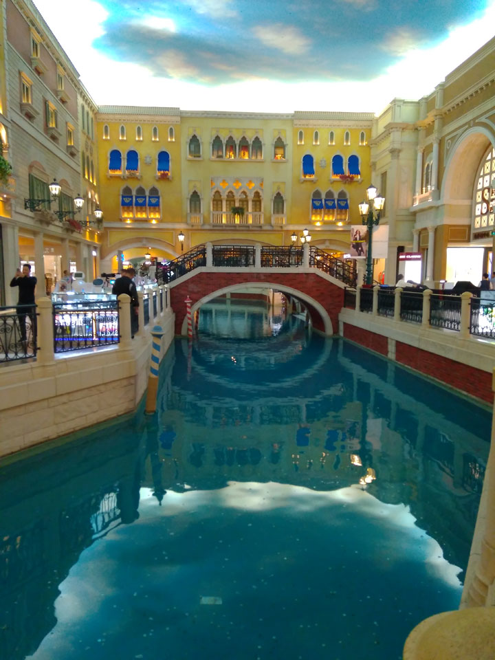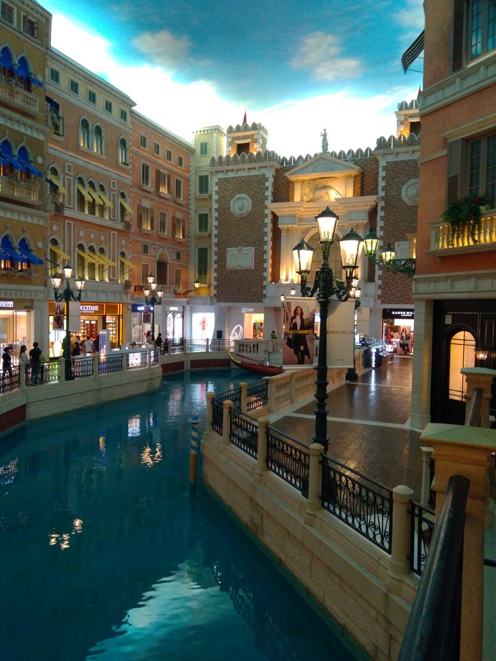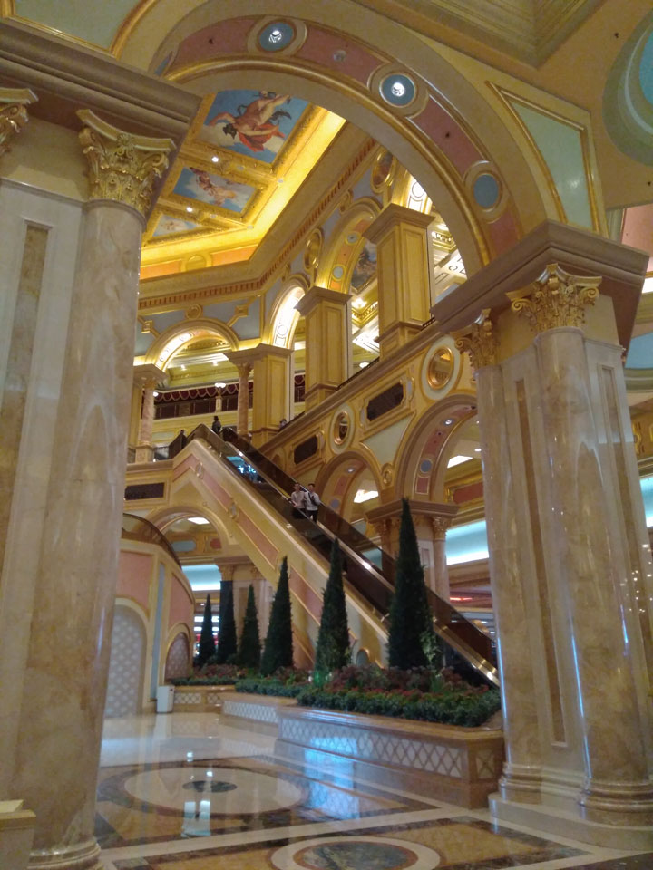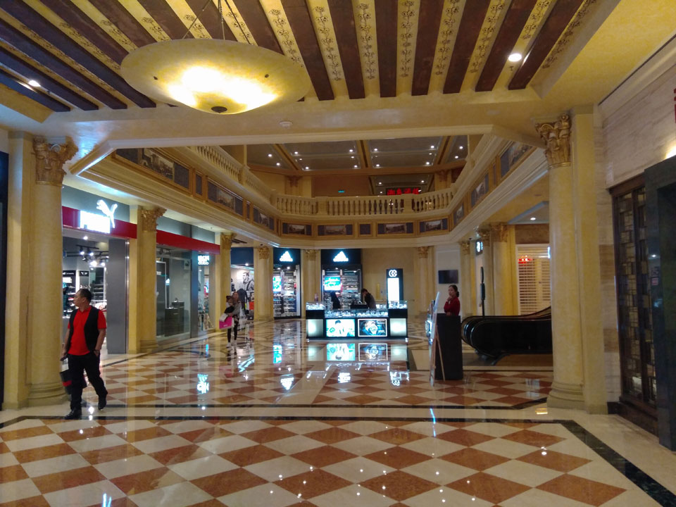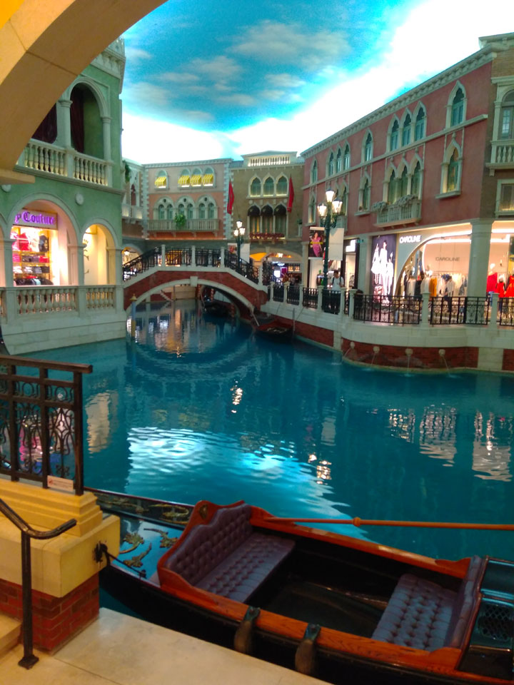 Ich schaute in die zweite Etage, wo ein Kanal mit Gondeln war. Echt: in der zweiten Etage! Eine lange Ladenstraße, ein Plaza, parfümierte Luft – alles ziemlich irre und vergleichbar mit dem Venetian in Las Vegas. Hier schien mir zwar weniger los, doch das Ding war wohl noch etwas größer als in Vegas. Es fehlen ein paar Essengeschäfte – zu viel Luxus für meinen Geschmack. Als ich dann den berümten Macau Egg Tart sah, waren die schon ausverkauft.