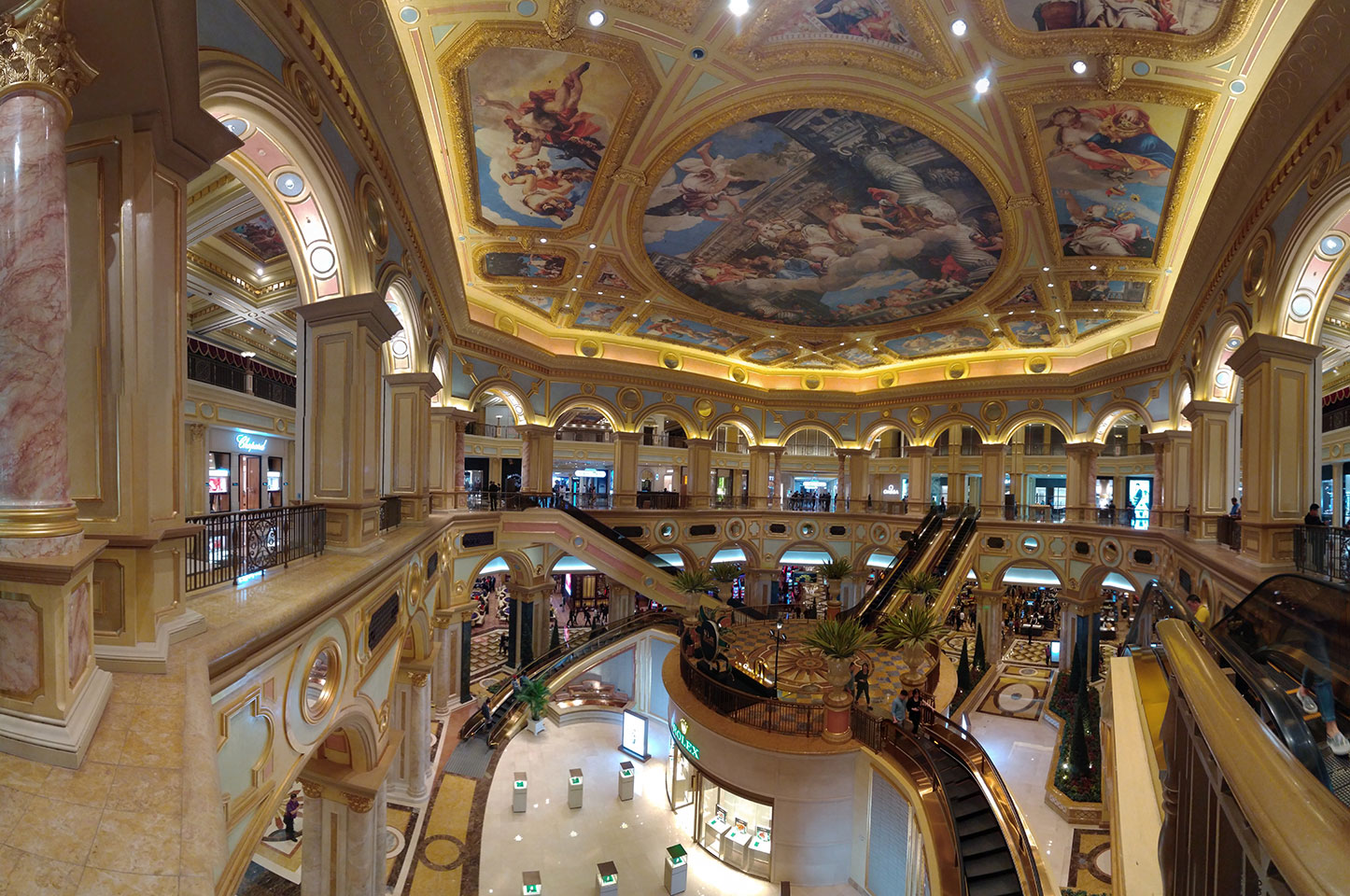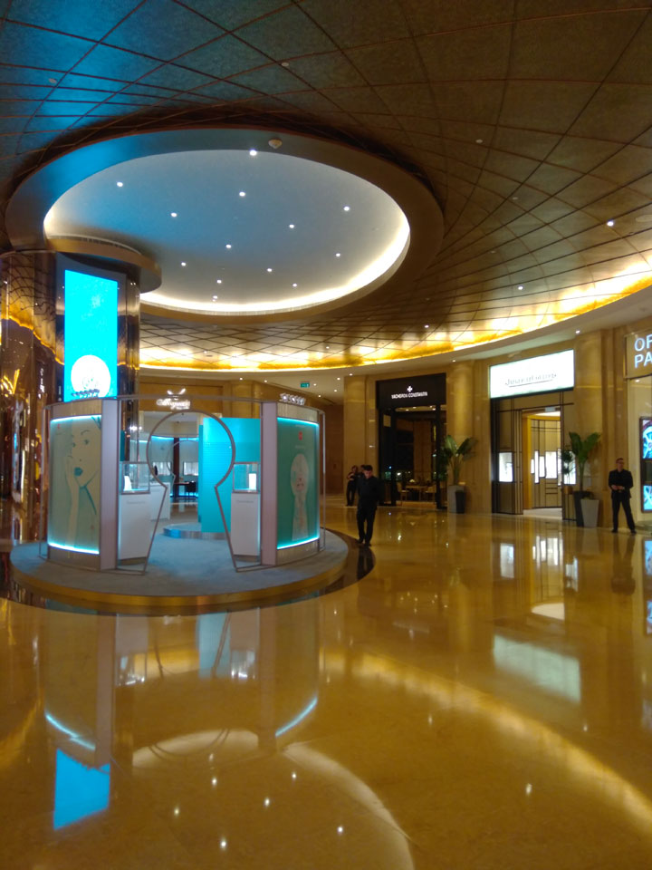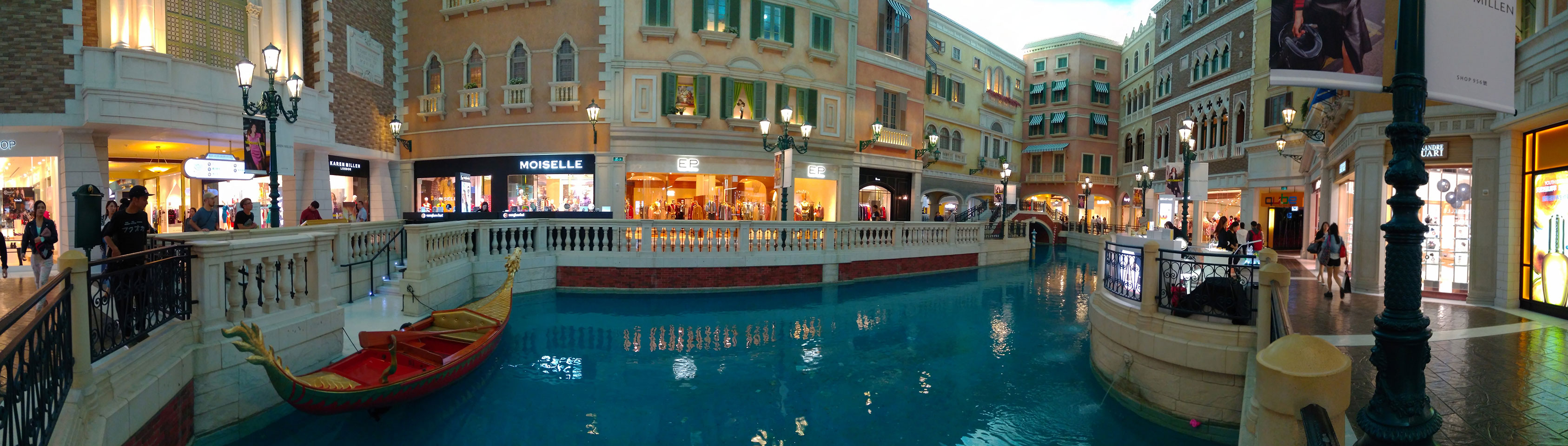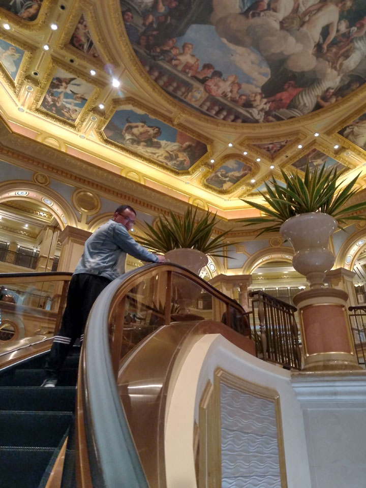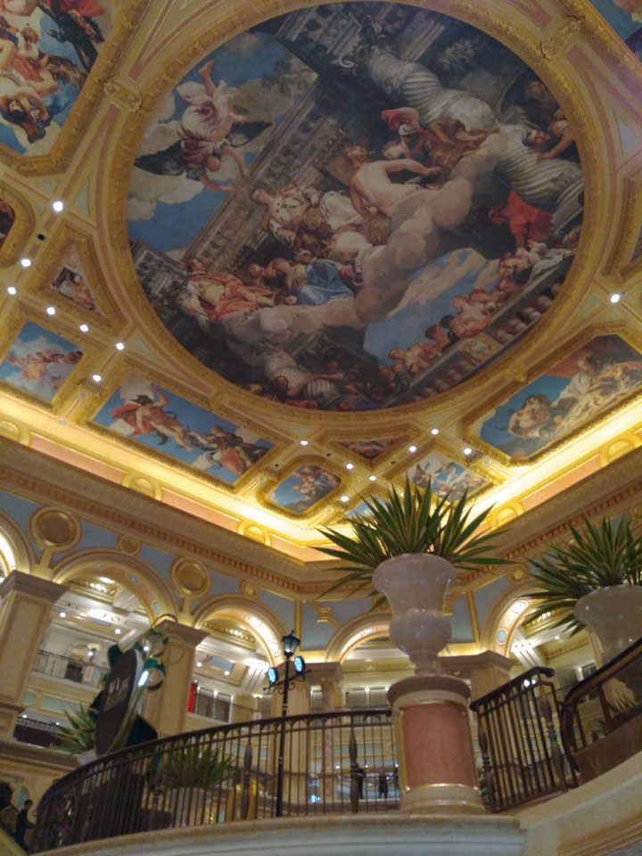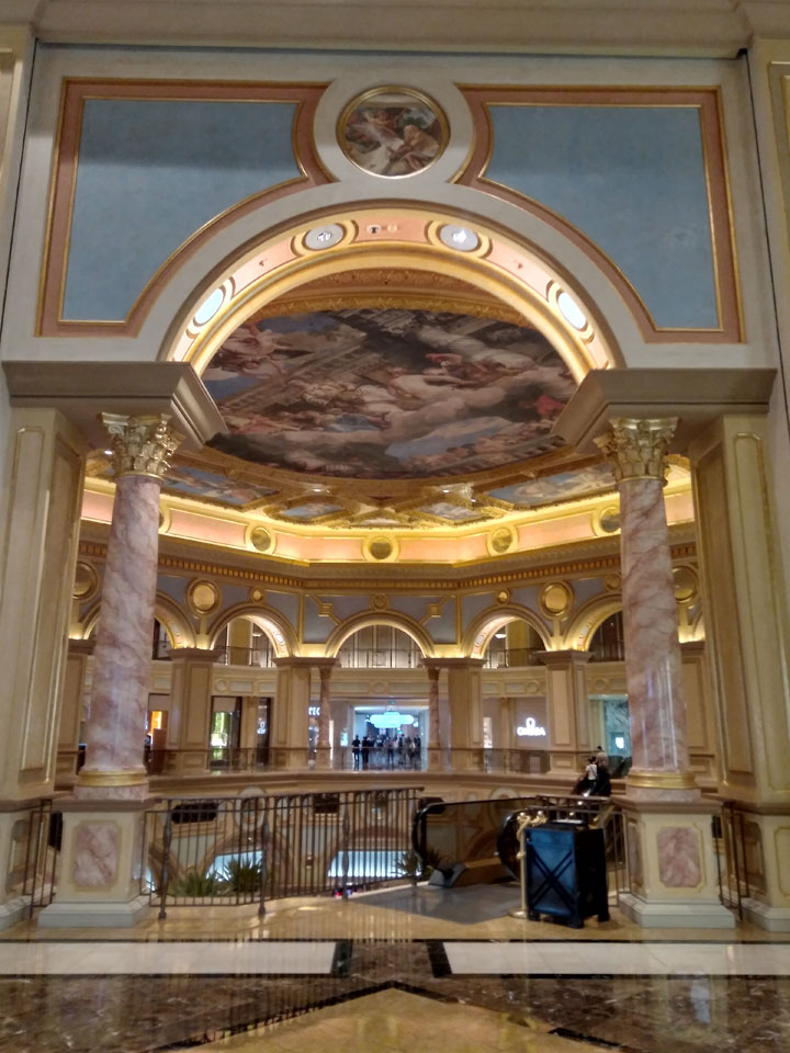 Ich schaute in die zweite Etage, wo ein Kanal mit Gondeln war. Echt: in der zweiten Etage! Eine lange Ladenstraße, ein Plaza, parfümierte Luft – alles ziemlich irre und vergleichbar mit dem Venetian in Las Vegas. Hier schien mir zwar weniger los, doch das Ding war wohl noch etwas größer als in Vegas. Es fehlen ein paar Essengeschäfte – zu viel Luxus für meinen Geschmack. Als ich dann den berümten Macau Egg Tart sah, waren die schon ausverkauft.