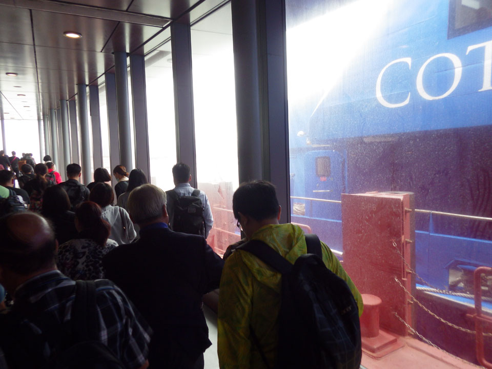Die Cotai Fähre hatte einen Service zum Hongkong Airport auch um 11:55 – also eine knappe halbe Stunde später als geplant. Ich zahlte die 256 MOP per VISA und bekam sogar meinen Boarding Pass. Viel Zeit bis zur Abreise, immer mehr Leute kamen. Die Fahrt war bei Cotai gleich schnell. In ca. 70′ waren wir am Flughafen mit viel Zeit.