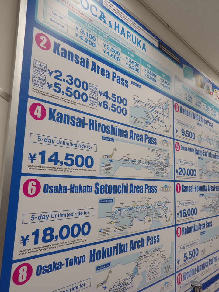 Der Flug nack Osaka mit HK Express war ebenfalls fast voll. Ich schlief nun einige Male ein, womit die ca. 4h Flug angenehm vergingen. Einfache Einreise – endlich mal wieder in Japan. Alle spielen so schön freundlich hier. Ich zog mir 20.000 YEN (€150) und hatte mir bereits Infos für den Zugtransport herausgesucht. Die ICOCA Karte (2000 YEN) musste es sein, mit einem Haruka Ticket (1600 YEN). Ich zahlte also 3600 JPY (€27,50), wobei da 1500 auf der Karte sind – 500 Pfand.