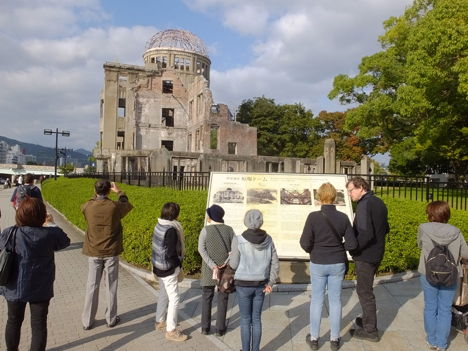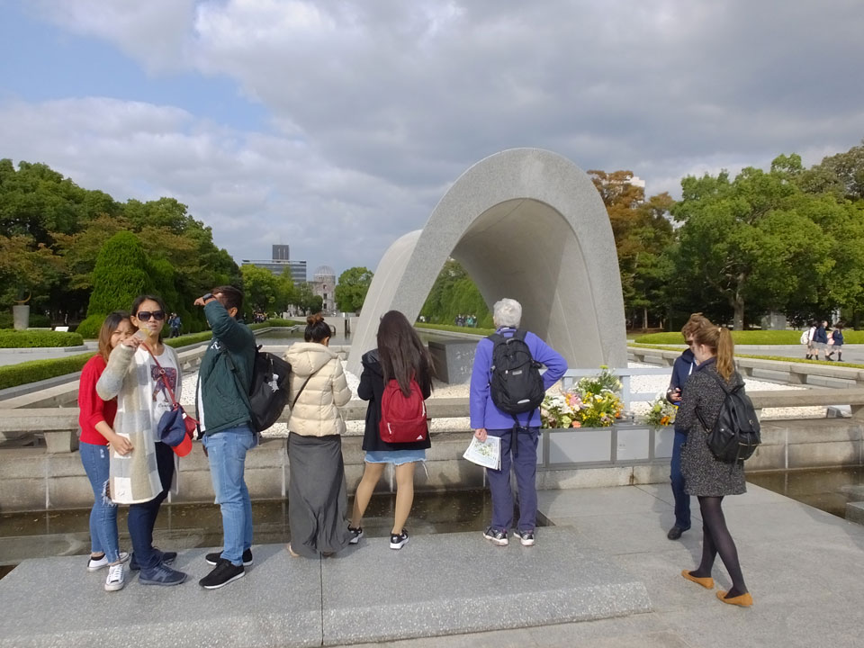 Der Hiroshima Friedenspark war ganz in der Nähe des Hostels. Das Museum verlangten 200 ¥ Eintritt. Die Geschichte Hiroshimas dreht sich um den 6. August 1945. Es wurde gezeigt, wie Hiroshima vor dem Atombombenabwurf aussah und natürlich wie danach. Zeitzeugen kamen auf Video zu Wort, viele Dokumente und Artefakte dieser Tragödie waren zu sehen. Extrem traurig und beeindruckend, welche Folgen das hatte. Hier im Museum wurde ganz klar gemacht, dass nie wieder und unter keinen Umständen Atombomben gegen Menschen verwendet werden dürfen, was ich nun auch verstehe. Mir kamen Gedanken an die jetzigen verbalen Scharmützel zwischen Nordkorea und USA.