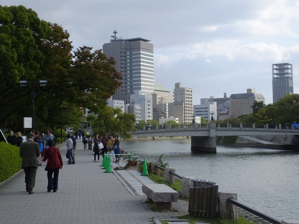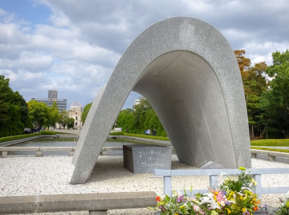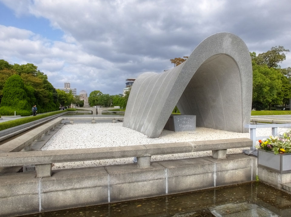 Im Park ging ich noch etwas umher, schaute mir eine weitere Gedenkstätte zu den Opfern an und sah mir den A-Bomb-Dome an. Von einem tschechischen Architekten entworfen ist dieses Gebäude mit der zerstörten Kuppel das Wahrzeichen für Hiroshima und den Atombombenabwurf.