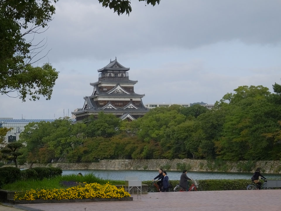 Etwas weiter spazierte ich in einen Park mit dem Hiroshima Castle. Den Eintritt sparte ich mir. Stattdessen lief ich langsam wieder zurück in die Stadt. Hiroshima ist von der Größe und Atmosphäre ganz angenehm. Eine etwas überschaubare Stadt; hier könnte ich auch eine Weile bleiben.
