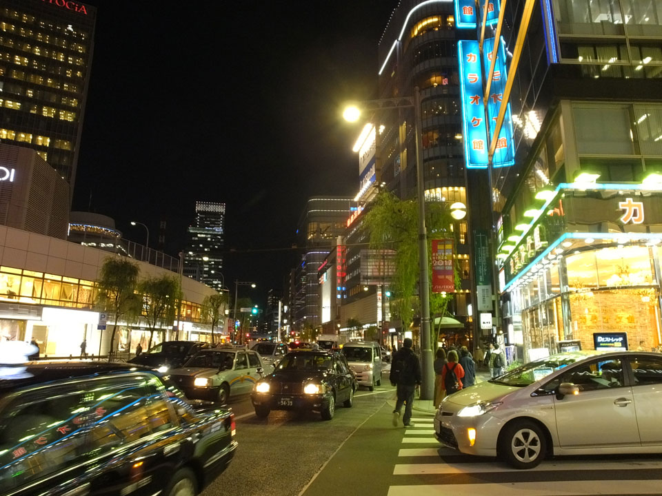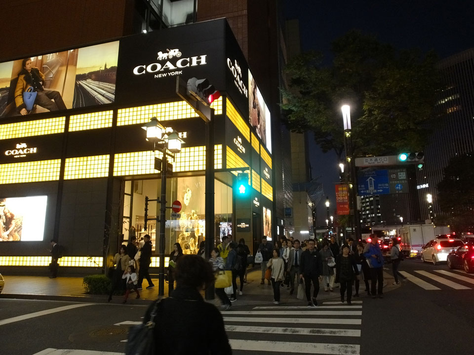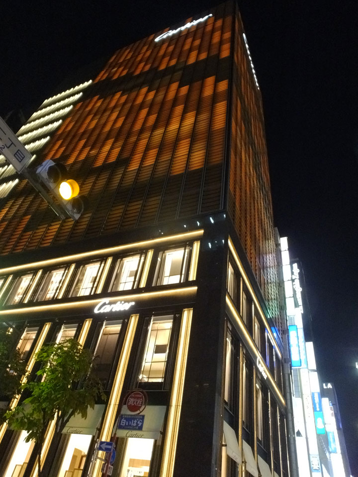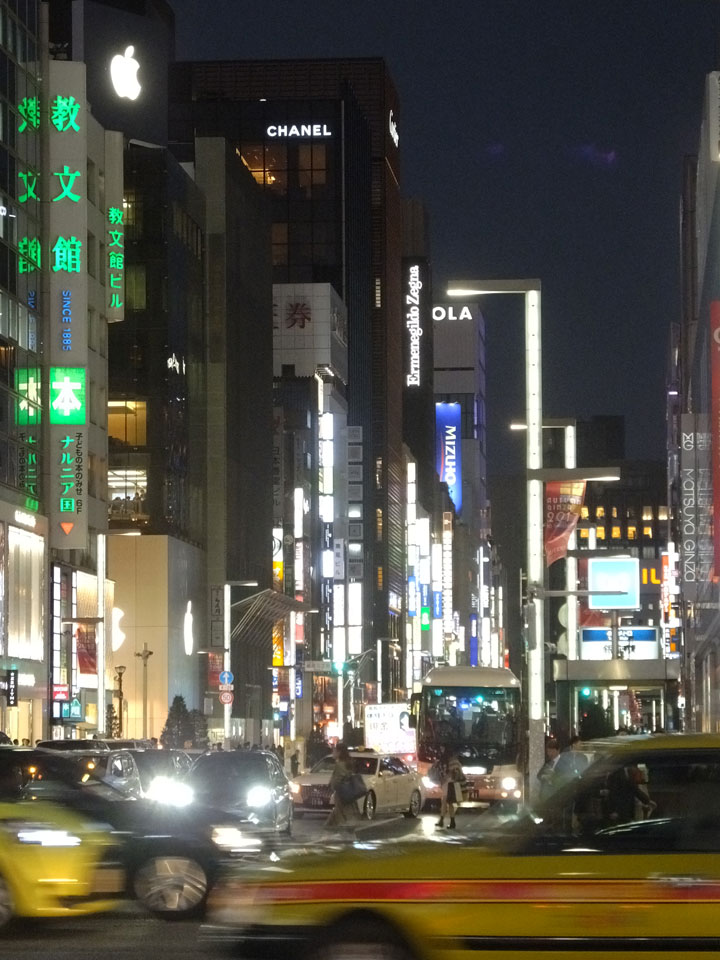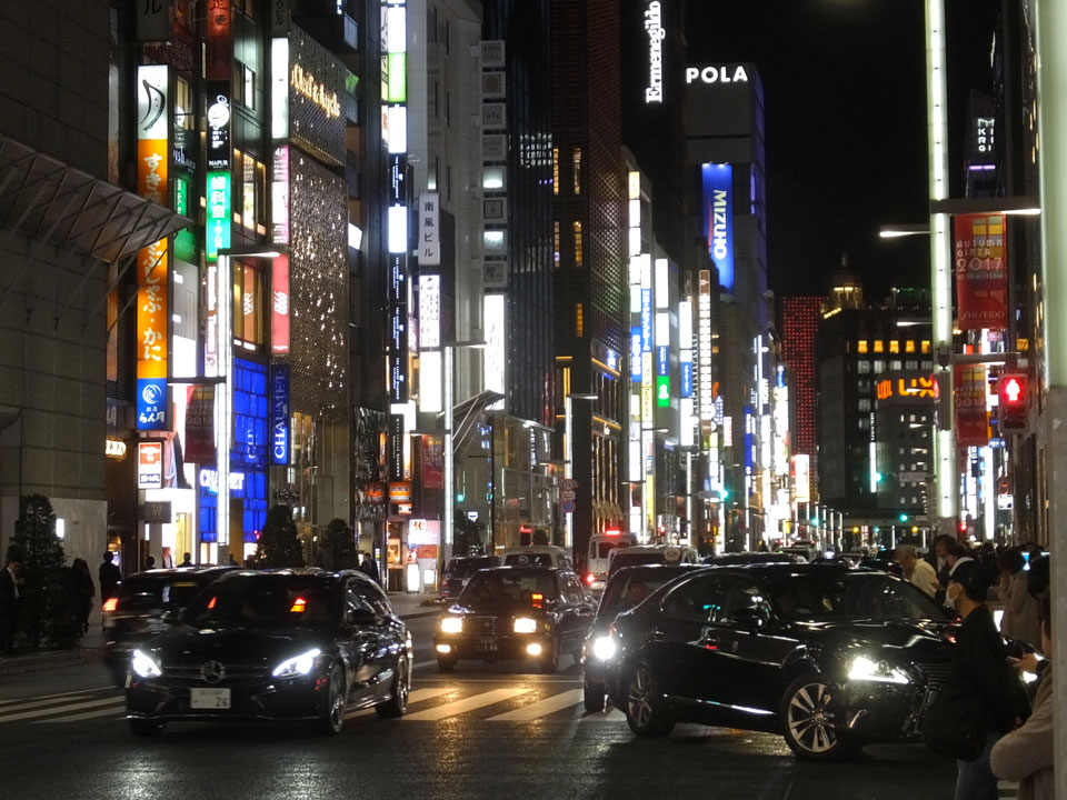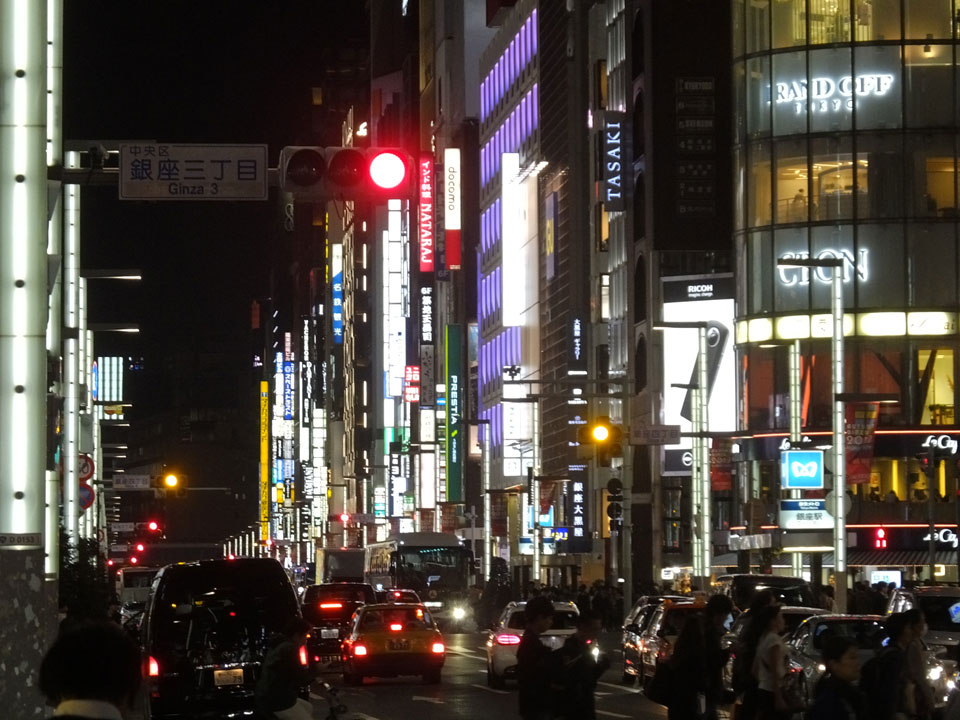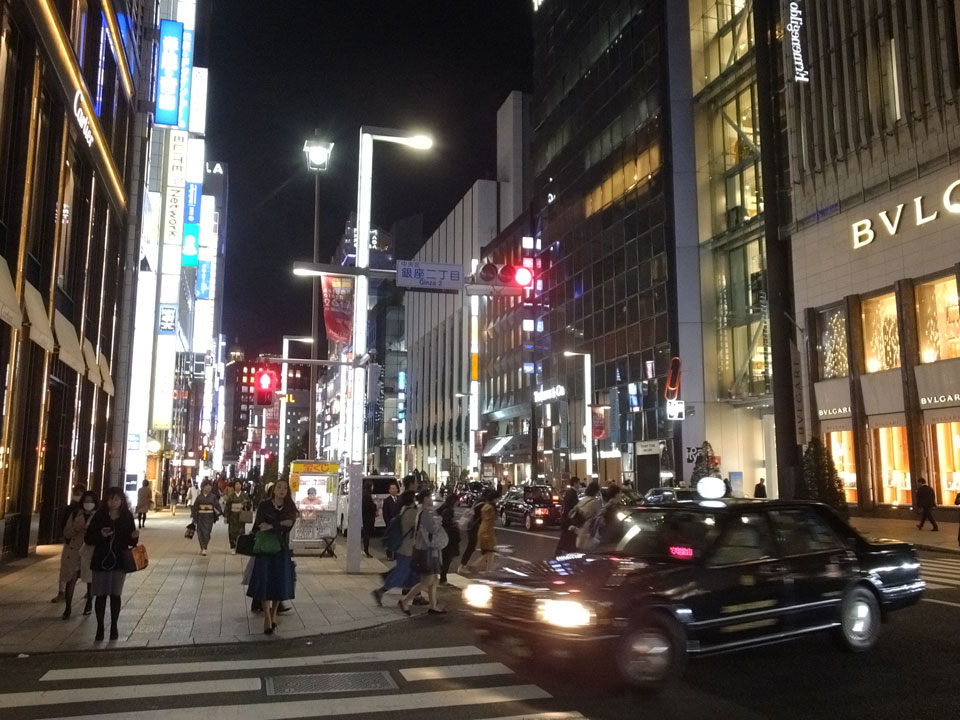 Dieser exklusive Bezirk Tokyos, glänzt und leuchtet noch immer fantastisch. Ich staunte über die unterschiedliche Atmosphäre im Vergleich zu Roppongi oder Shibuya. Alle Leute sind fein angezogen. Jetzt Abends war Berufsverkehr, die Metro war voll.