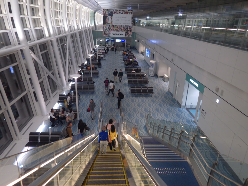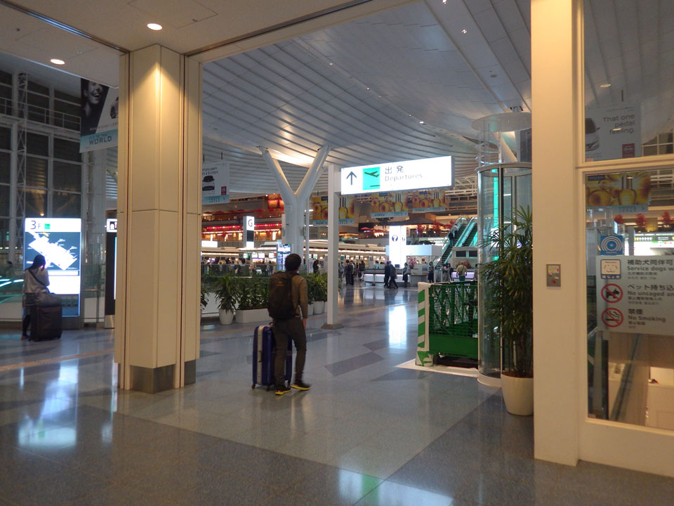 Mit der Monorail war ich noch nie gefahren. Zum Flughafen rattelte der Zug durch die Stadt – hoch auf einer Monorail eben. Das sah die Apartmentblöcke außerhalb Tokios und war recht schnell auf dem Flughafen. Das klappte ja alles bestens. Ich hatte meinen Boarding Pass bereits auf dem Handy, bekam dann noch eine Papierausgabe, ohne die es wohl doch nicht geht.