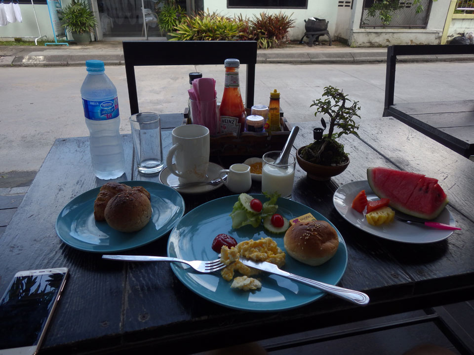 Ich schlief tatsächlich bis Mittags mehr oder weniger durch. Als ich dann kurz vor 15:00 Uhr aus dem Zimmer kam, bot man mir noch Um diese Zeit ein Frühstück an. Ich wartete draußen, dann wurden viele Teller aufgetischt. Exzellenter Service!