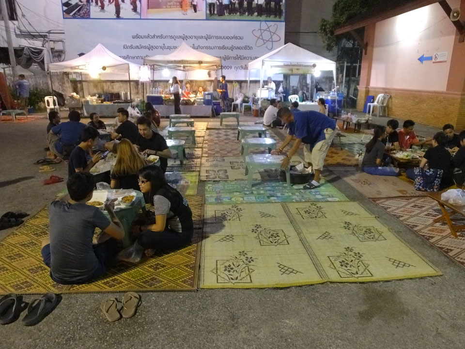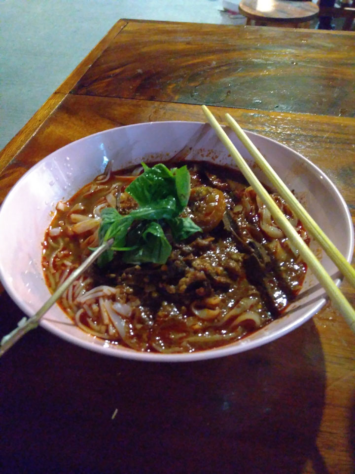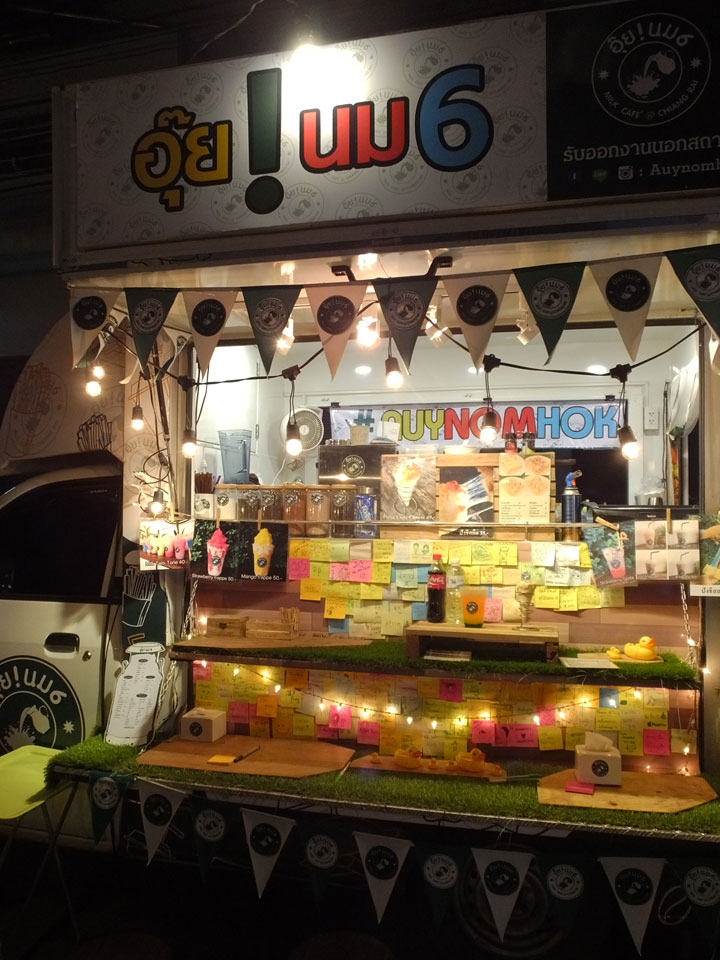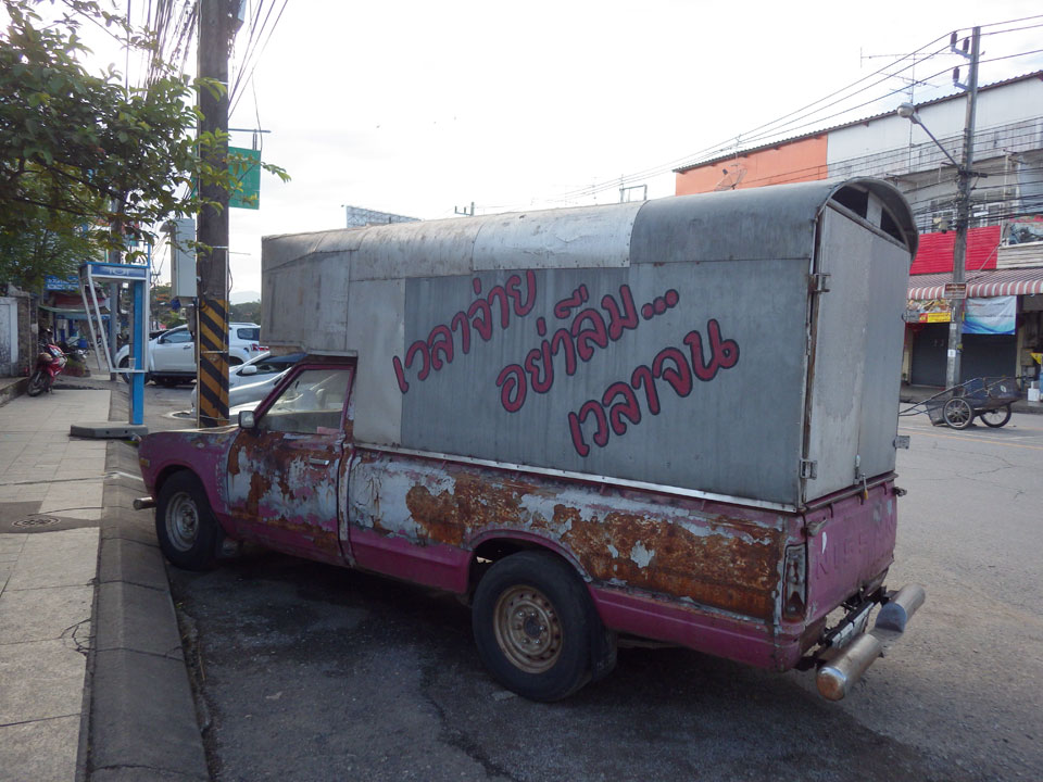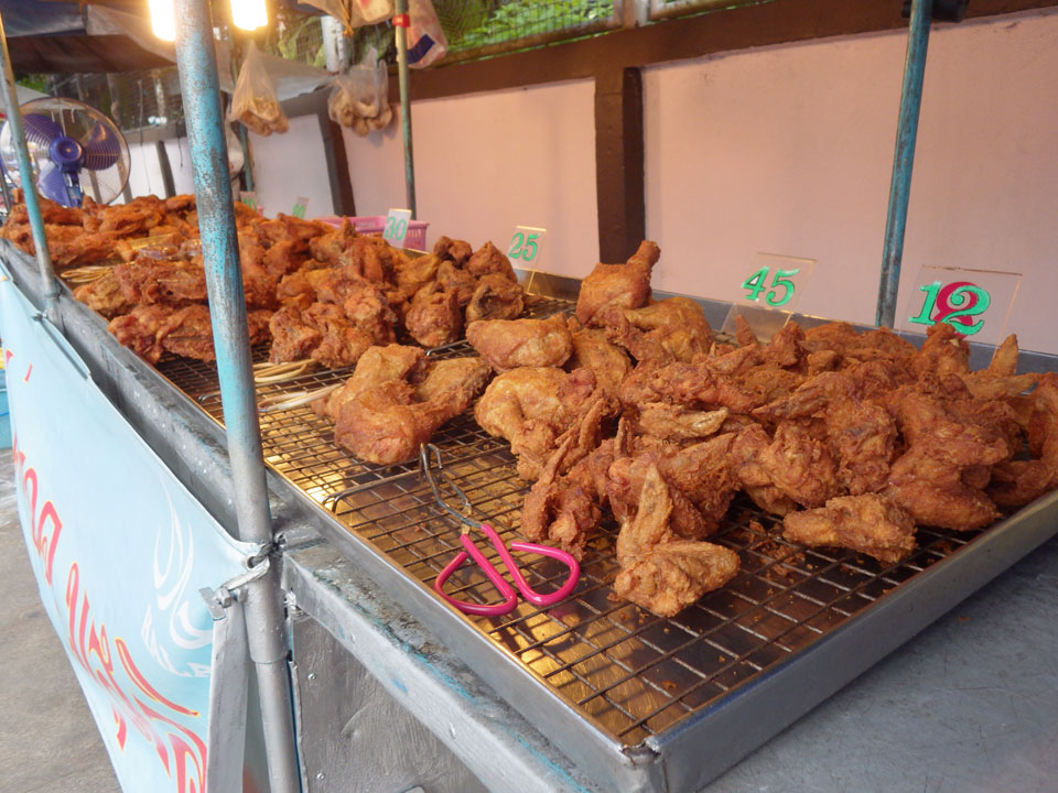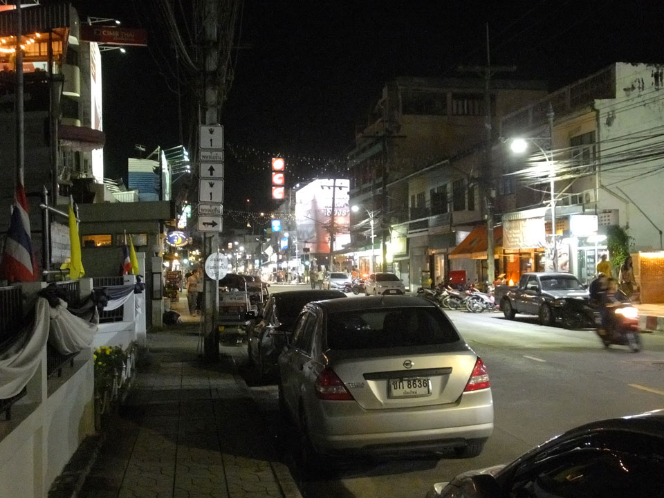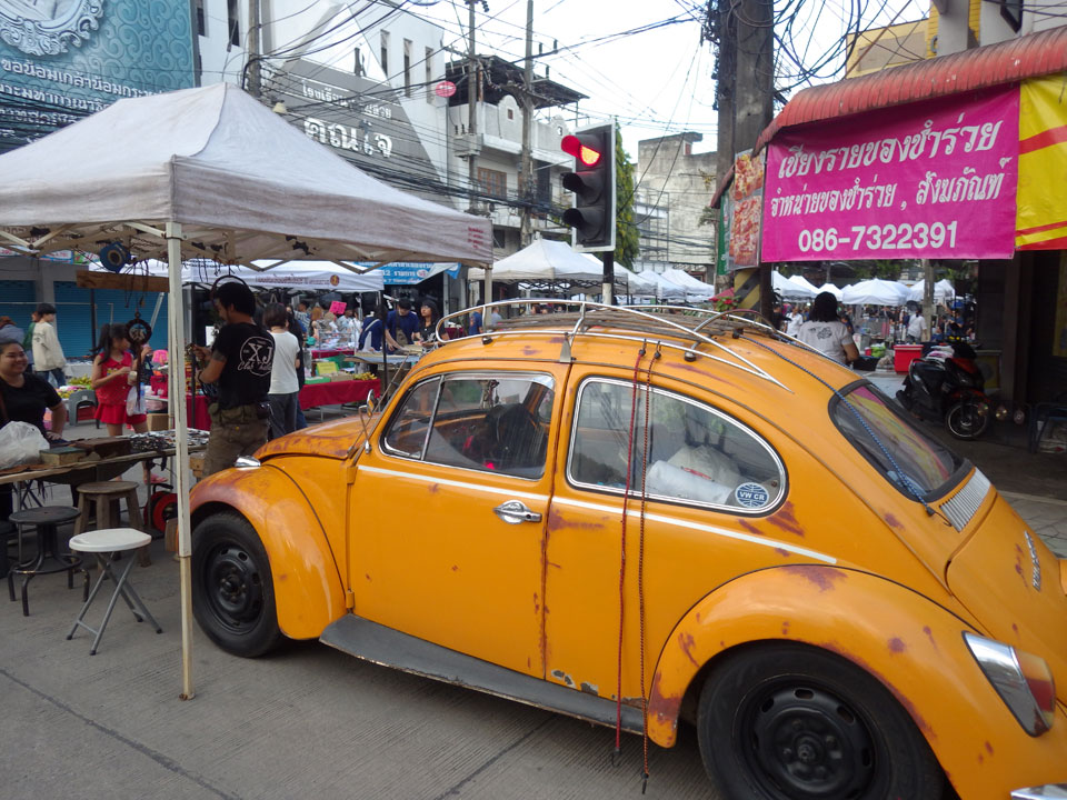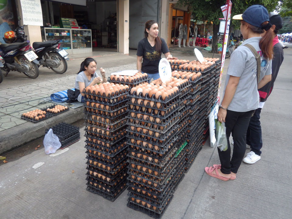 Nach ein paar Minuten chillen im Zimmer schnappte ich meine Kamera ging abends wieder raus – dieses Mal mit dem Ziel Samstags-Markt. Ich probierte da so manches Thai-Food. Alles war super, bis auf die letzte Suppe. Mich überraschte hier, wie groß der Markt doch war. Der lokale Markt braucht sich nicht hinter dem berühmteren von Chiang Mai zu verstecken. Von einem Ende zum anderen brauchte man einige Minuten zu Fuß. Ich fand nur ein T-Shirt (120 THB), ansonsten hatten viele Stände ähnliche Sachen. Von Handyhüllen, über Powerbanks, Kleinkunst, Taschen – alles Mögliche. Nach 22:00 Uhr packten die Händler ihre Sachen zusammen – um 22:30 war Schluss, wie mir die Hotelfrau vorher schon gesagt hatte.