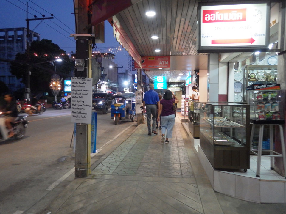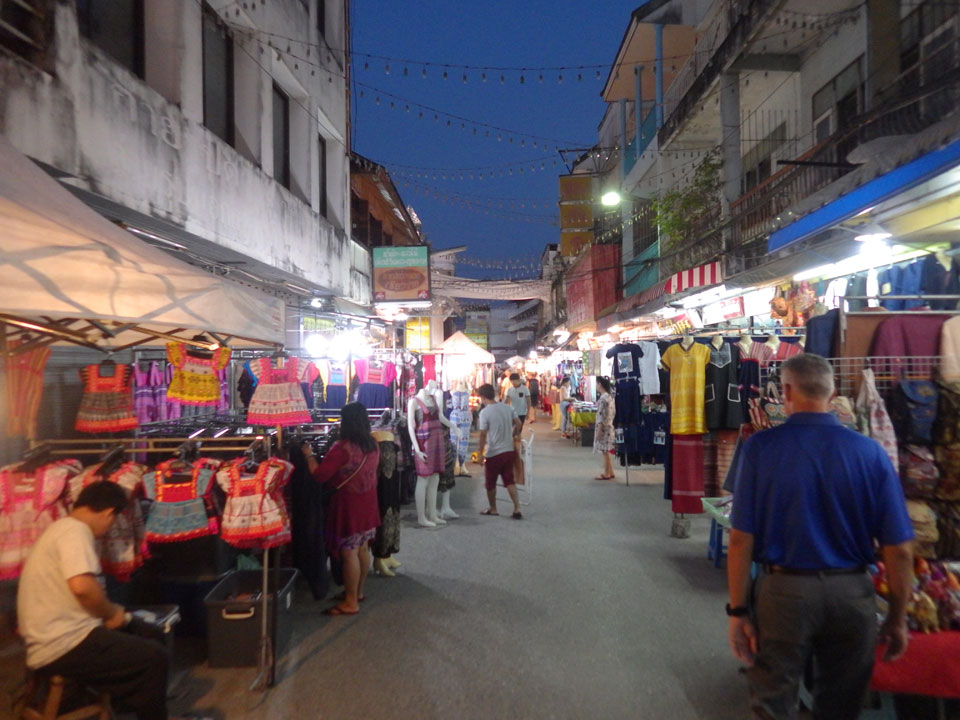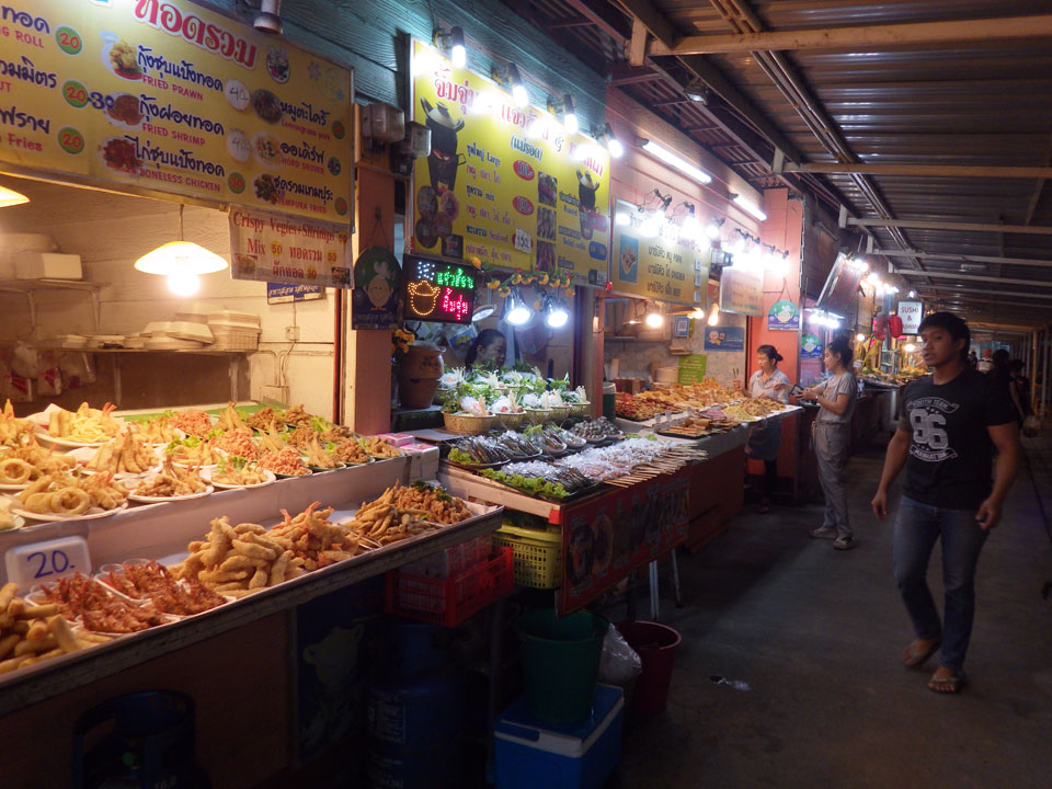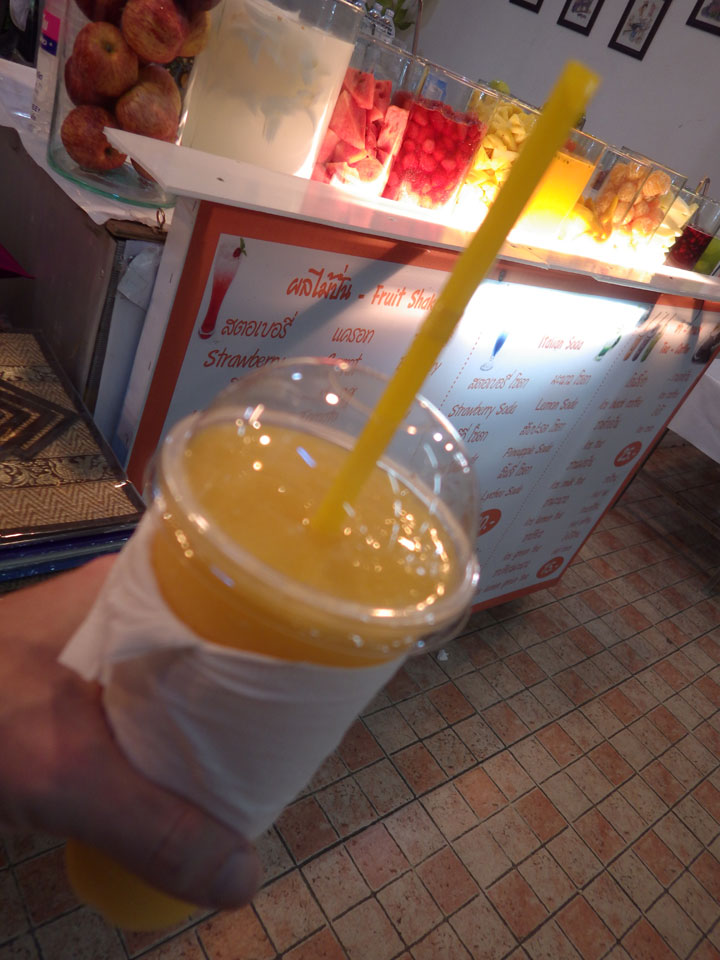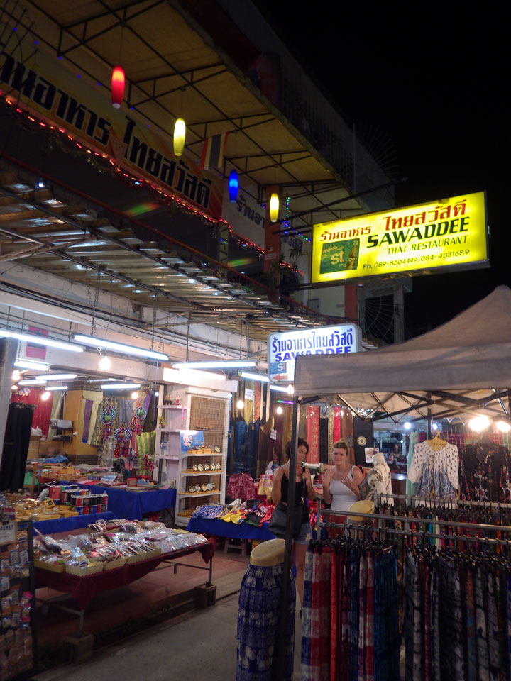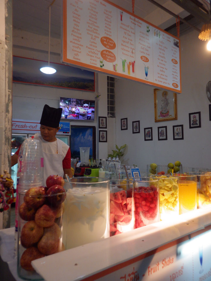 Zum Abend bekomme ich vor und ging zum Nachtmarkt, der sich nur einige Straßen weiter befand. Auch da gab es viele T-Shirts und Souvenirs, Wie gestern schon auf dem Samstagsmarkt. Ich sucht eine Weile nach den Essensständen. Hier gab es auch eine gute Auswahl. Ich hatte ein Seafood Pad Thai und Spicy Catfish Salat. Ein älterer Amerikaner fing ein Gespräch an, lebt schon seit zwei Jahren hier. Danach noch Cocos+Mango+Mandarin Smoothie. Trotz gutem Essen, ist Thailand noch nicht mein Lieblingsland.