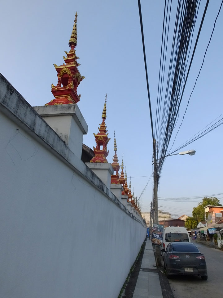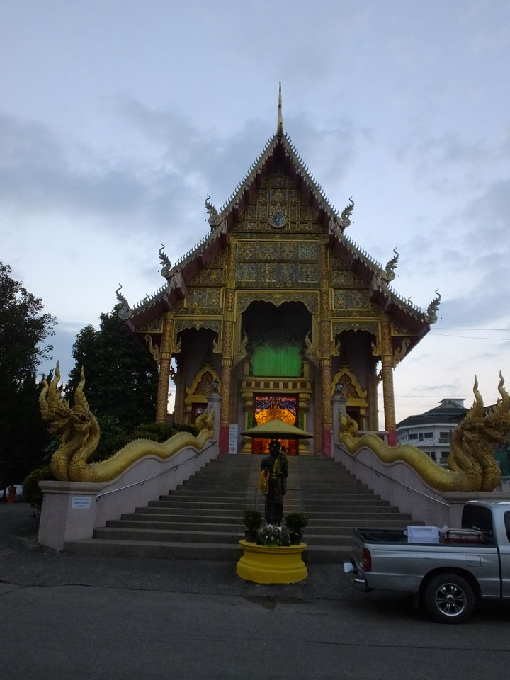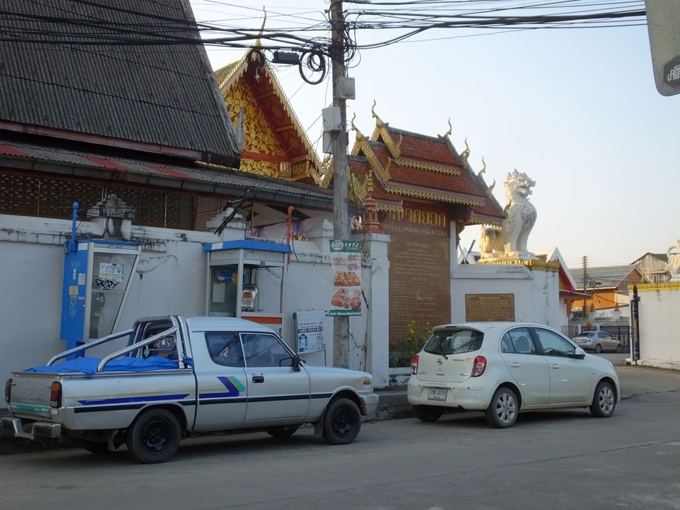 Im Hotel zahlte ich die letzten zwei Nächte und fragte nach dem etwaigen Preis, den ein Fahrer für paar Tempel verlangen würde. Man sagte mir dass es um die 300 THB wären, weil etwas Wartezeit anfällt. Die Tempel sind nicht so weit weg. Da ich vor 7 Jahren auf dem Weg nach Laos schon einmal hier in der Gegend war, spare ich mir die nördlichen Dörfer. Weder Energie noch Interesse derzeit. Es sind eben über 2 Monate Reisezeit rum, da bin ich langsam satt von Eindrücken.