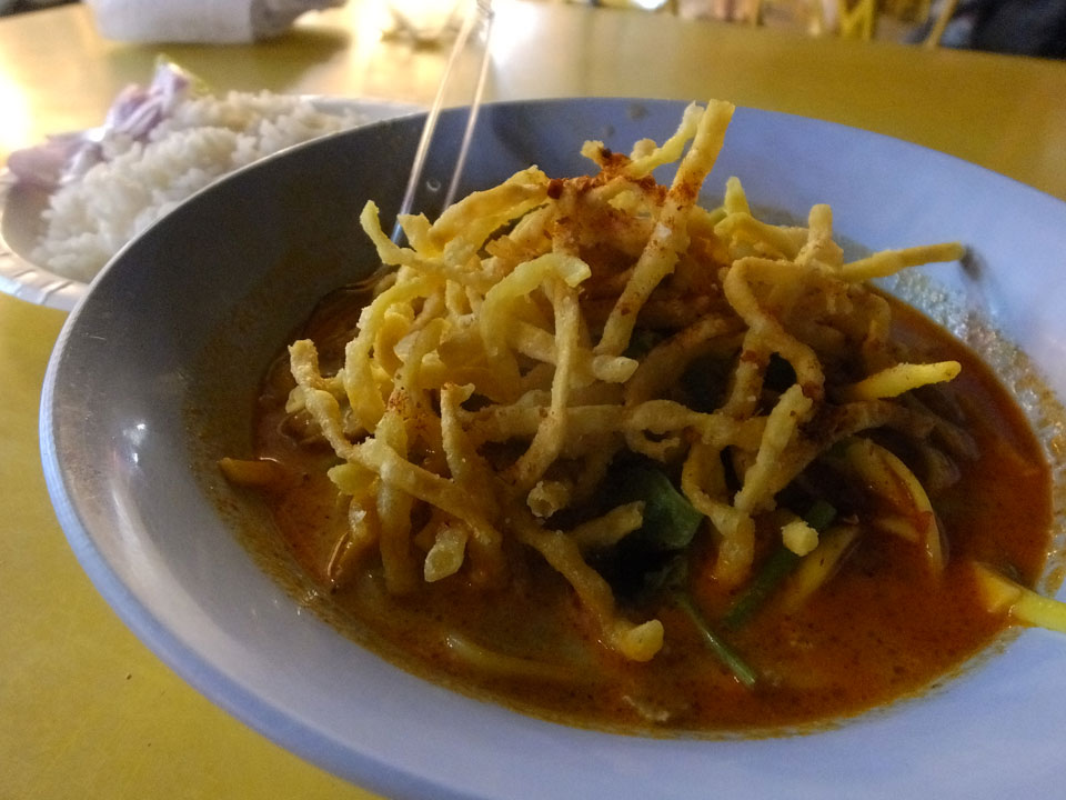 Zurück zum Zimmer gab’s für mich zweimal Essen. Zuerst eine gute Schweinefleisch-Suppe an der Straße und danach auf dem Nachtmarkt noch eine Khao Soi, die ist aber schon woanders besser bekommen habe.