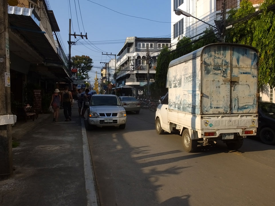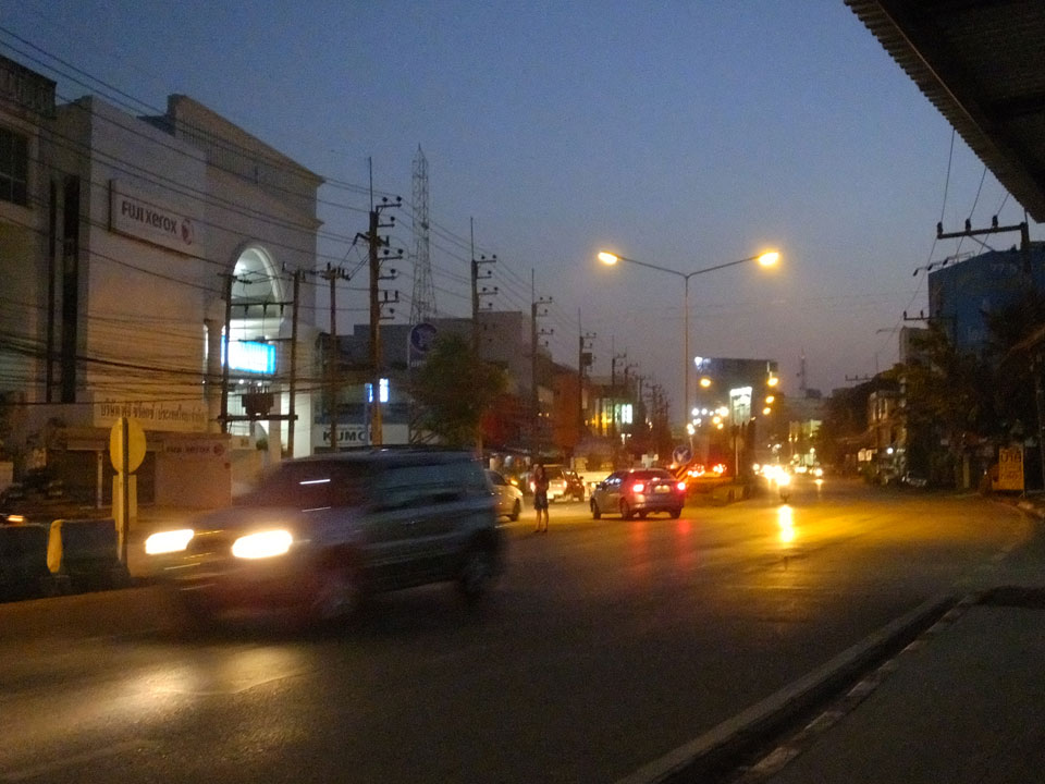 In einer Tankstelle hatte ich ‘nen Imbiss, dann fand ich noch ein T-Shirt und kam schlussendich zurück in mein Zimmer. Trotz der mageren touristischen Ausbeute war ich zufrieden. Spazieren macht eben Spaß. Das Abendessen mit Tom Yam war weniger der Rede wert.
