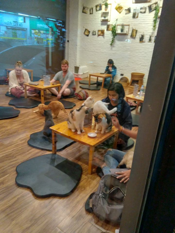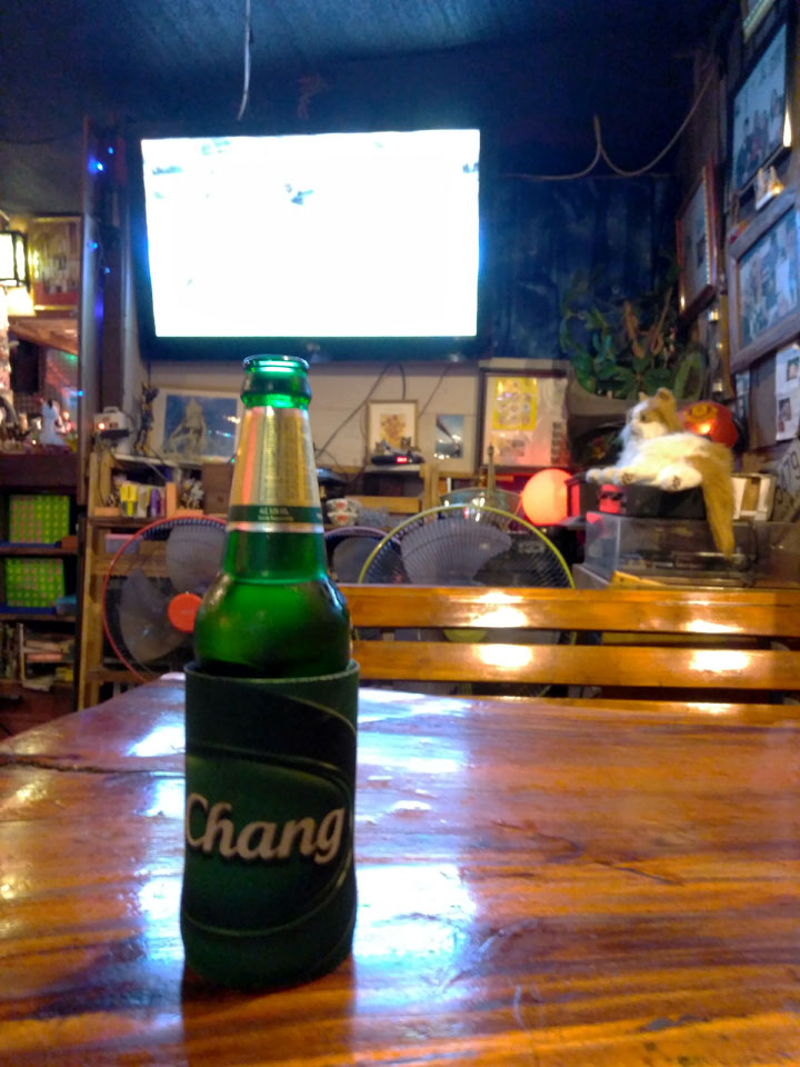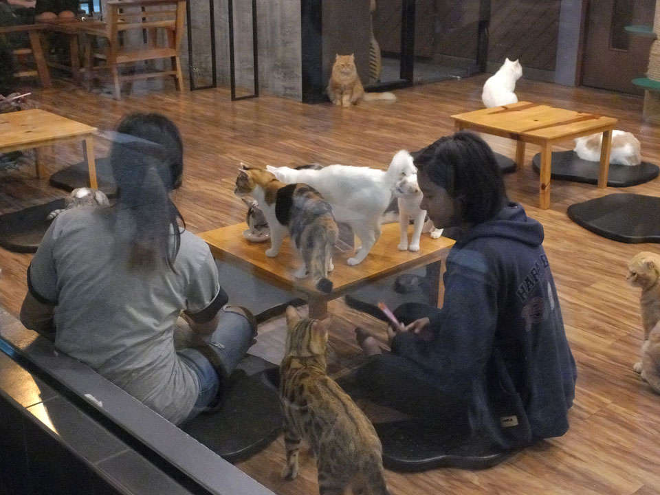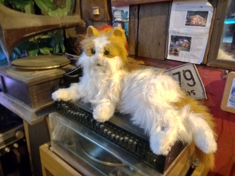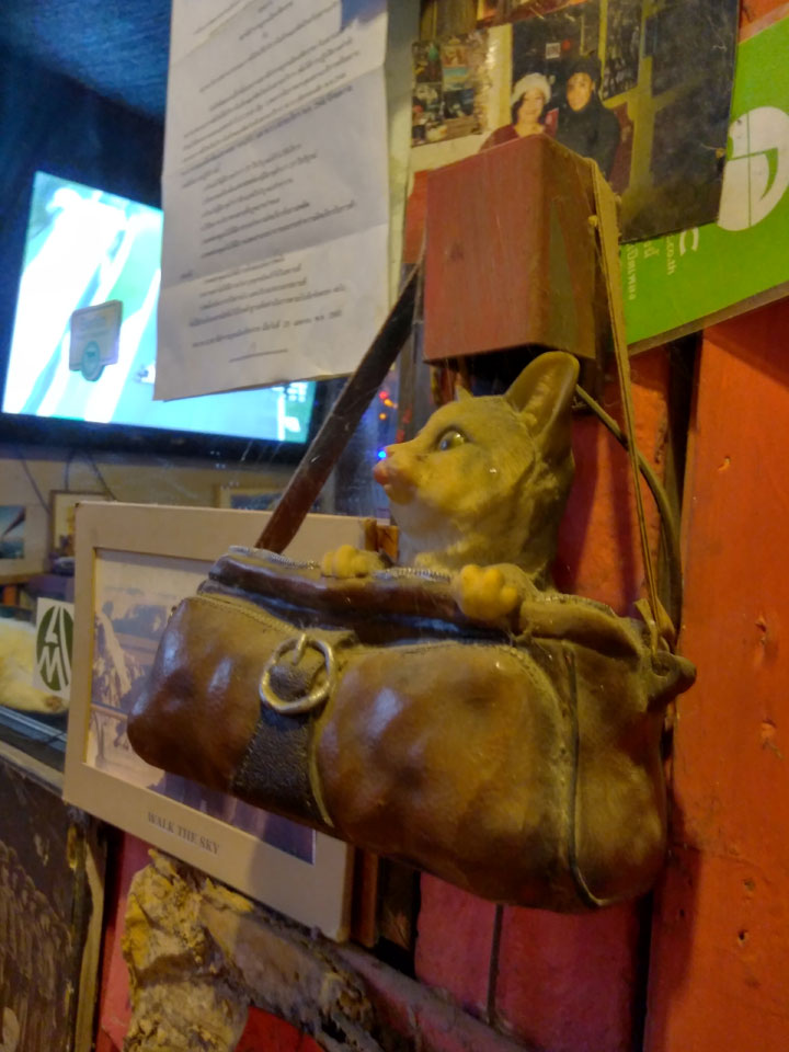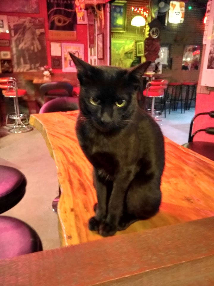 Halloween war auch heute. In der kleinen Bar Straße schaute ich mich um, ging auf ein Bier in die Cat Bar. Da war nur eine Katze im Gegensatz zum Katzen-Café mit einem Dutzend. Sogar eine ausgestopfte Katze war da – bissel gruselig und passend heute. Ansonsten wenig los. Nur eine Person war als Zombie verkleidet.