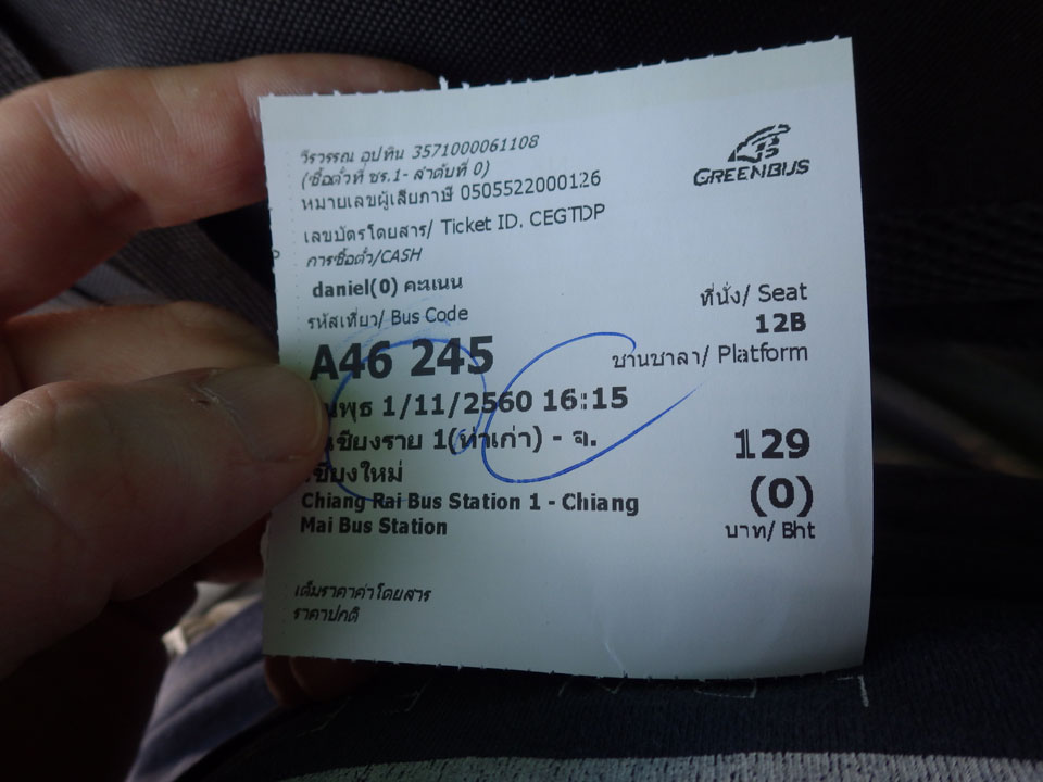 Google zeigte mir das Büro von Green Bus, mit dem ich nach Chiang Mai wollte. Auf dem Weg noch fix ein pad Thai und dann über viele Gassen zum Punkt auf der Karte. Dort war aber wirklich nur das Büro, wo man Tickets kaufen konnte – die Busse fahren am Terminal Nähe Nachtmarkt ab.