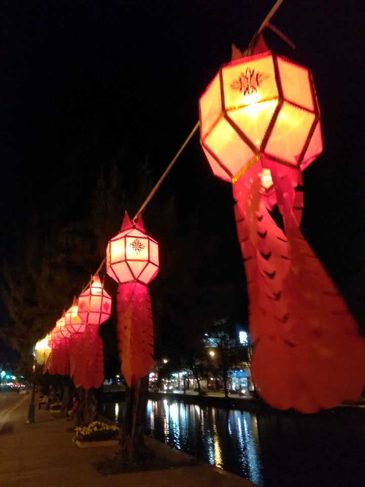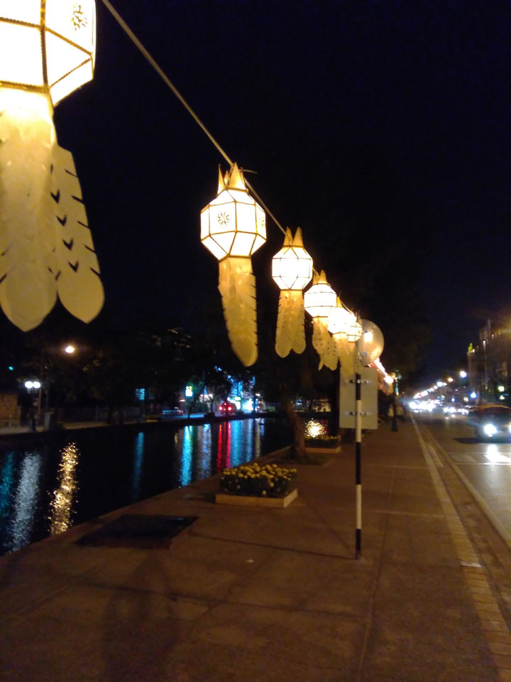 In der Stadt hängte man schon die vielen Lampoins auf. Das Loi Krathong und Yee Peng Festival startet morgen. Ich schaute abends noch im „Zoe in Yellow” vorbei. Das kannte ich noch von meinem ersten Besuch in Chiang Mai, war die vergangenen Jahre da nicht hingekommen. Die Party endete hier um Mitternacht. Danach zog die Partymeute in’s Spicy.