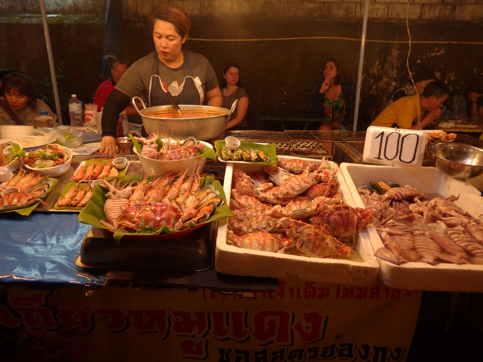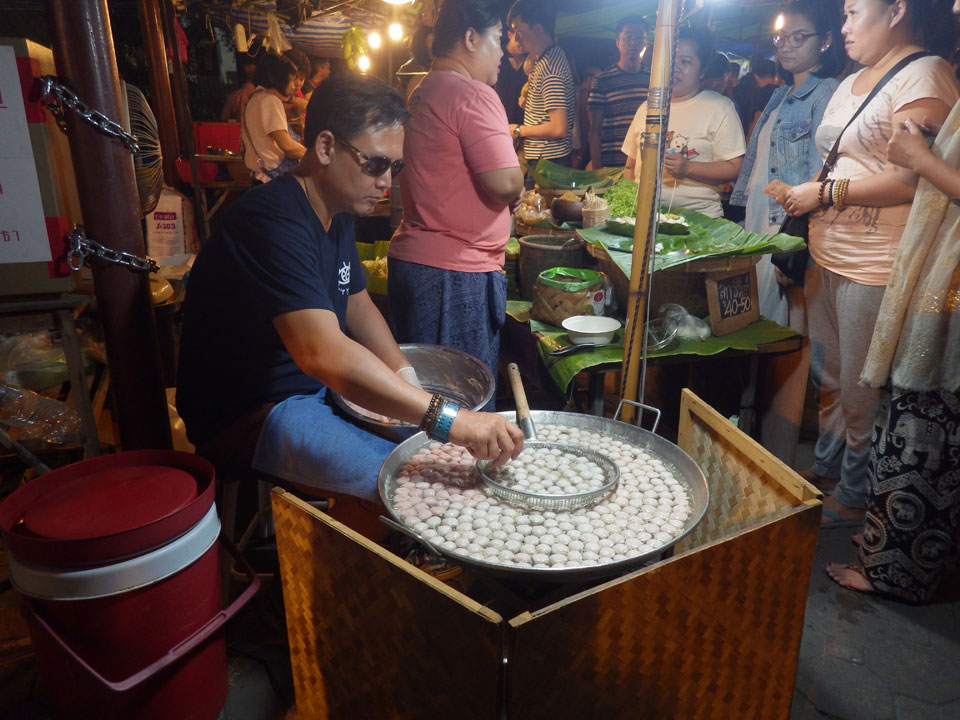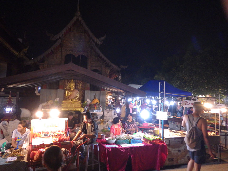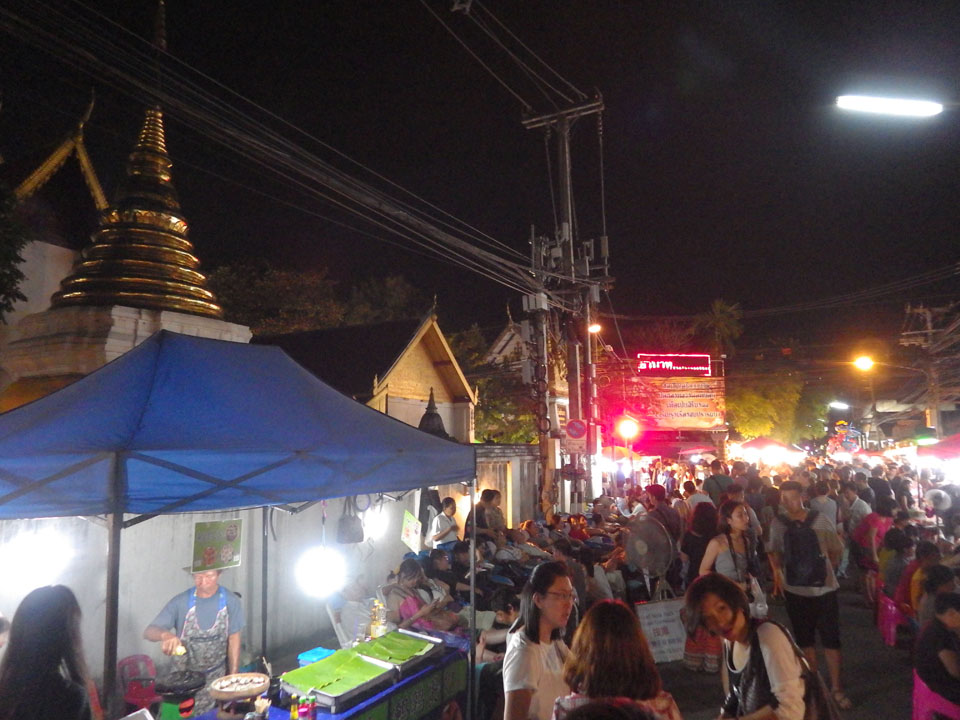 Diese Tage bietet Chiang Mai wirklich viel. Zuerst das Loy Krathong und jetzt noch der Nachtmarkt. Ich kannte ihn schon von einigen Besuchen. Das letzte Mal war ich im vergangenen Jahr auf dem Markt. Heute freute ich mich auch wieder auf’s Essen.