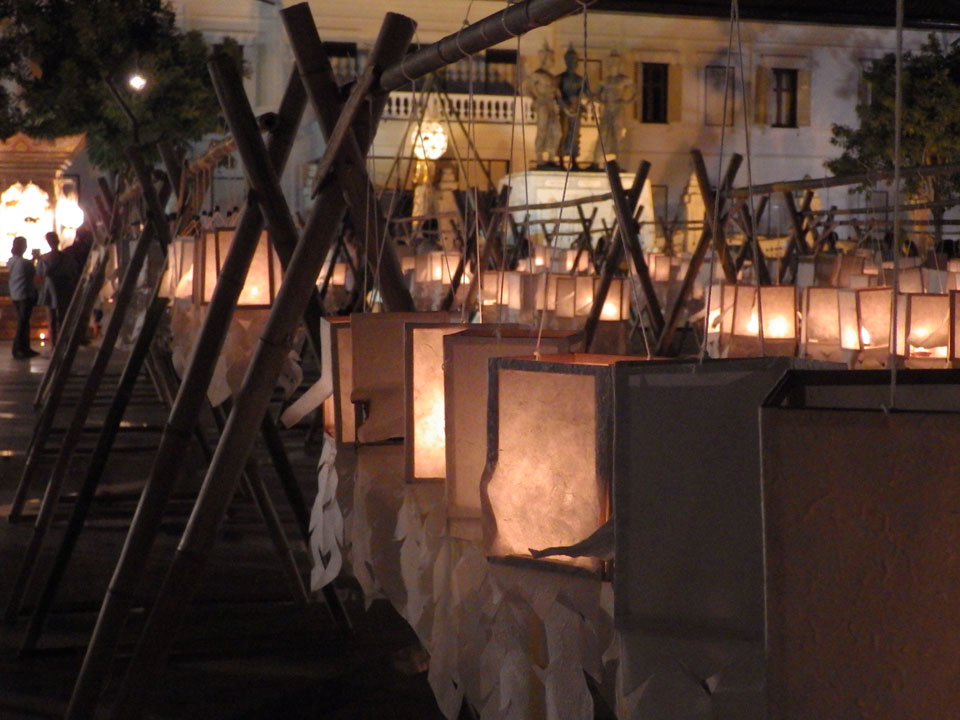 Dann bei den Drei Königs-Monument schaute ich die vielen Lanternen an. Alles, was das Festial zu bieten hat, habe ich hier nicht gesehen. Es fehlte eben etwas Energie und Interesse dank der vielen Eindrücke der vergangenen Wochen. Ich saß dann da, las ein paar Zen Verse und hatte eine gute Zeit.