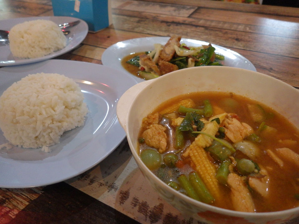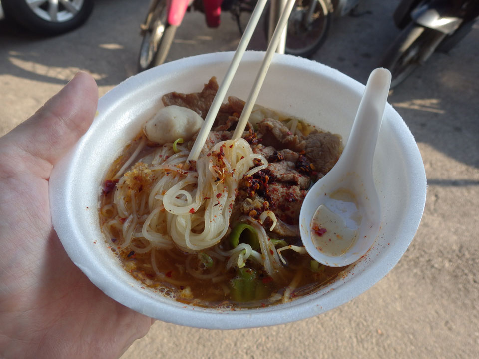 Da war es fast schon Abend. Es war immer noch sehr warm in der Sonne. Zuerst hatte ich noch eine scharfe Suppe (35 THB). Mit der verstopften Nase kam der Geschmack nicht ganz im Hirn an.