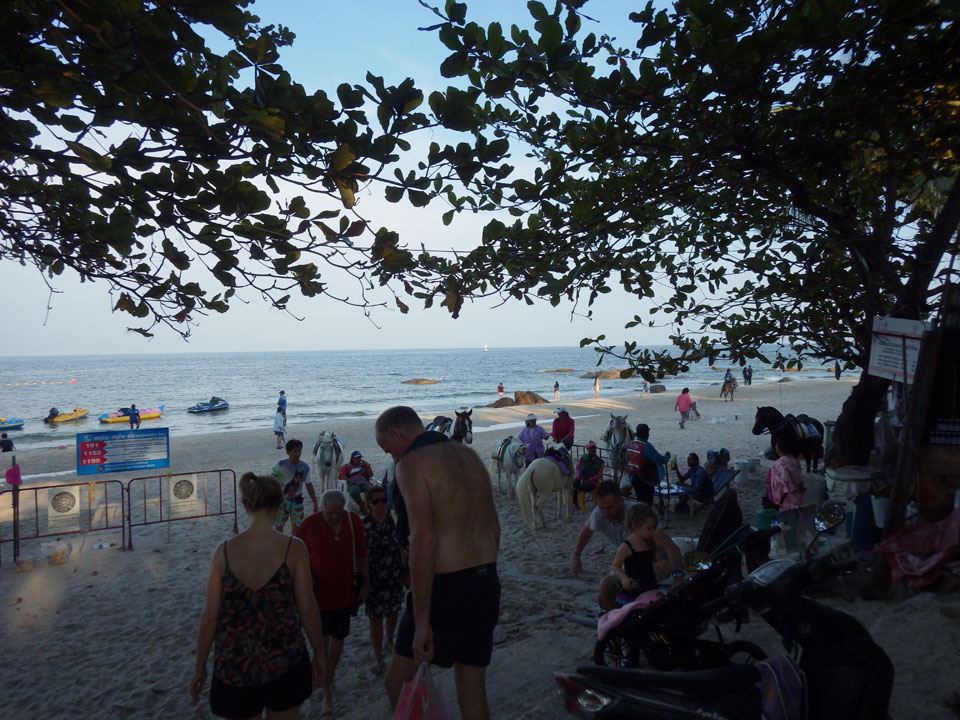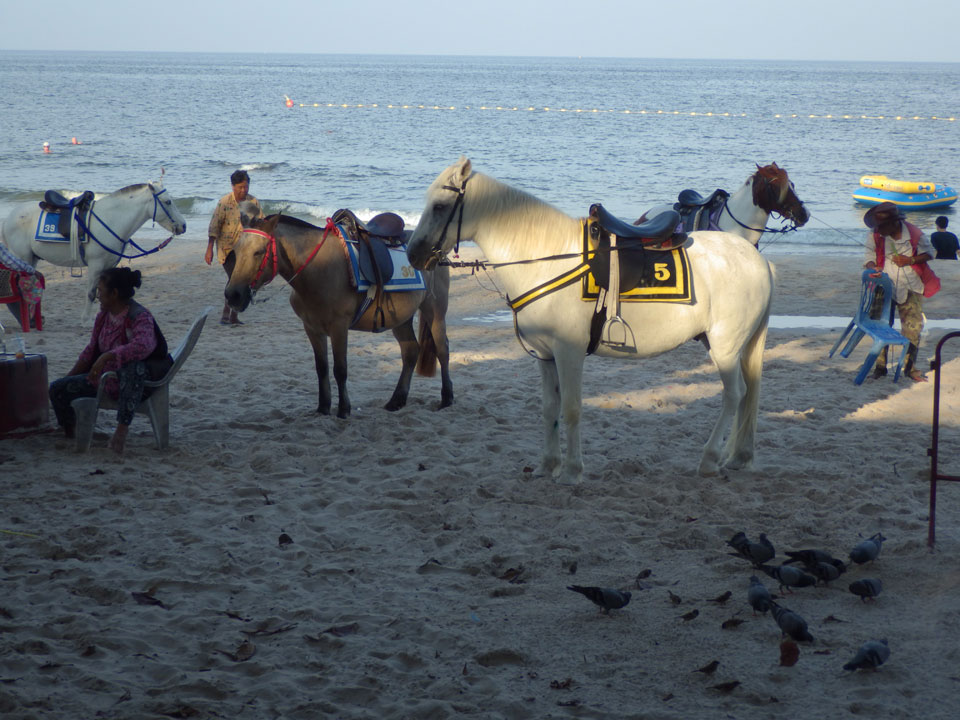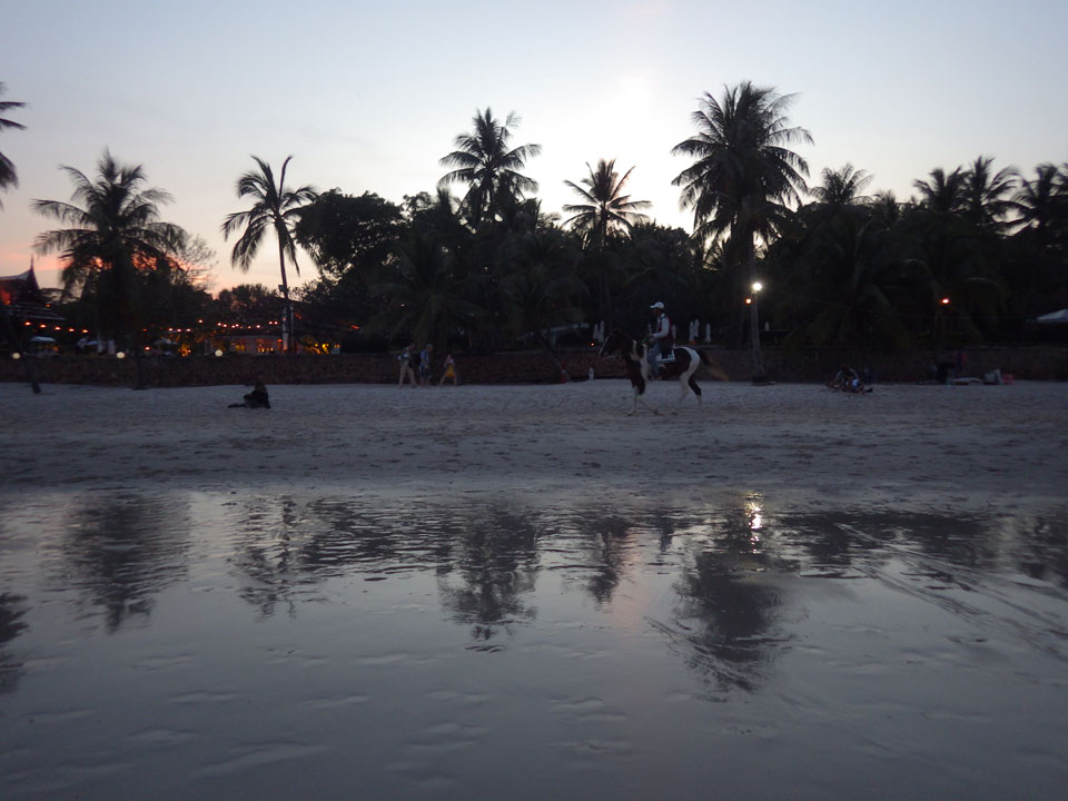 Am Strand dann ein bekanntes Bild: die Ponys und Pferde stehen für einen Miet-Ritt bereit. Ich saß dann aber nur im Sand, las hacknernews und wartete bis nach dem Sonnenuntergang. Dann etwas Bilder sortieren, Essen im Food Court und dann noch mehr Bilder. Die Qualität nimmt ab – auch wegen der Camera und weil die Reise langsamer und langweiliger wurde. Ich habe in Thailand eben schon einige Sachen gesehen – für rictig was Neues fehlt mir die Lust.