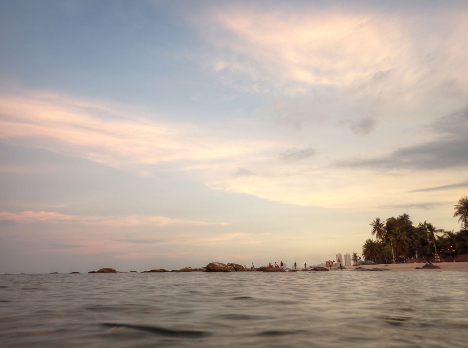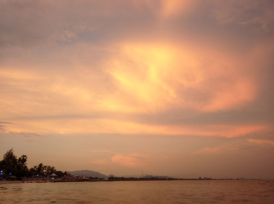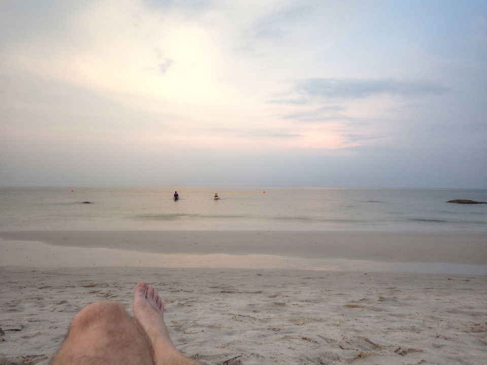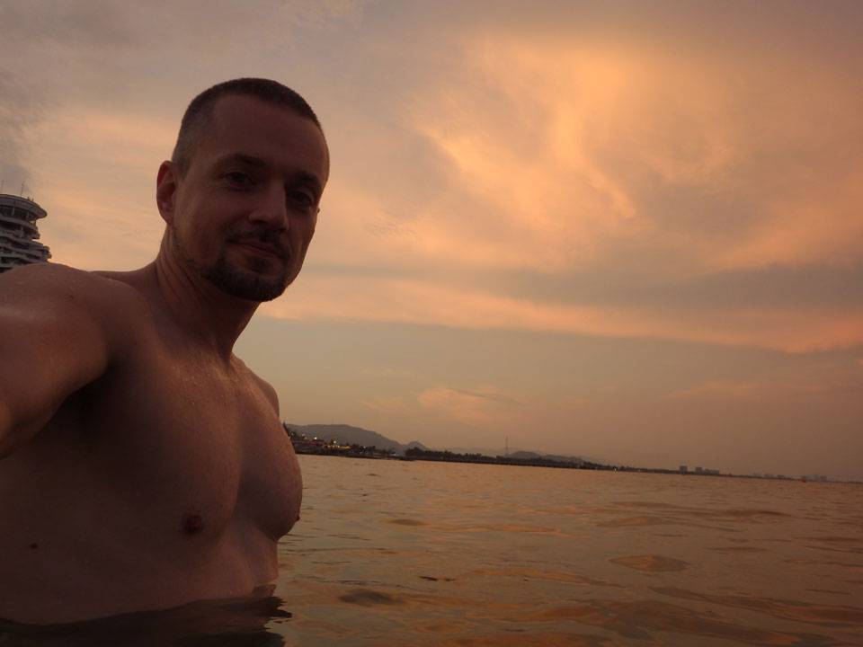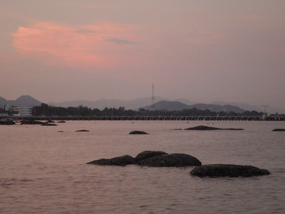 Heute war ich etwas besser drauf, obwohl ich immer noch müde mit Erkältung etwas ‚rumhänge.Ich ging nachmittags and en Strand und sogar mal etwas in’s Wasser. Es wurde Abend mit einem schönen Sonnenuntergang. Da traf ich das Pärchen Italien/China und wir quatschten kurz. Sie wollten wohl zu einem Park, waren an einem Wasserfall. Er könnte sich auch vorstellen, sich hier zur Ruhe zu setzen. In 20 Jahren dann.