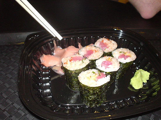 Jetzt was essen. Diskussion ob Pizza oder nicht. Dann doch Pizza, noch etwas Hunger und ein Spicy Sushi hinterher geschluckt.