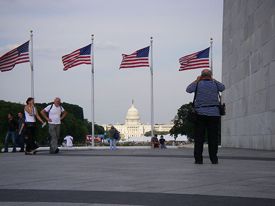 Draußen im Freien strahlender Sonnenschein, warmes Wetter, zusammengekniffene Augen. Wir spazierten von der Union Station weg. Ein schwarzer Typ mit rotem Basecap sprach uns an, ob wir Bescheid wüssten. Ich fragte, wohin es zum Washington Monument gänge. Er zückte zwei Karten und beschrieb uns den Weg, ging sogar ein paar Schritte mit. „Look for the red hat“. Hilfe ist nicht weit.