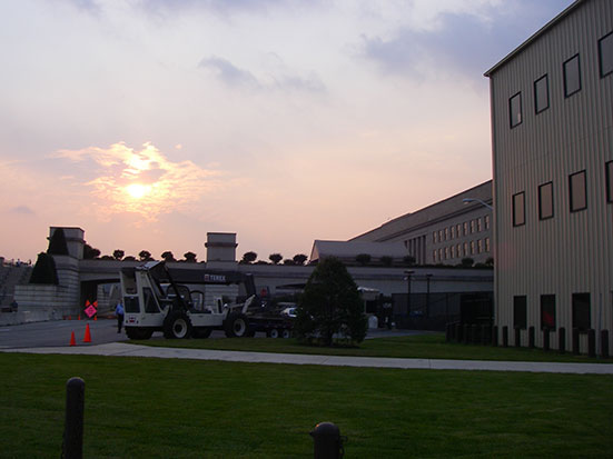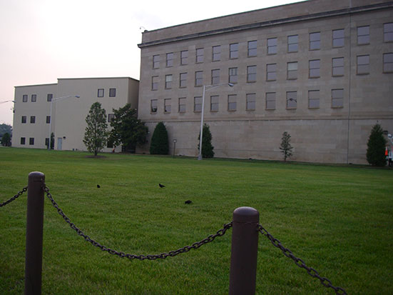 Die Sonne war noch oben, wir stiegen in die U-Bahn und fuhren zum Pentagon. Gestern hatten wir schon die meisten Attraktionen gesehen. Am Pentagon wurde man gleich mit Waffenwerbung begrüßt. Keine Touristen weit und breit. Wir bekamen einen guten Eindruck von der Größe des Gebäudes. Es war kleiner, als gedacht. 3 Etagen halt.