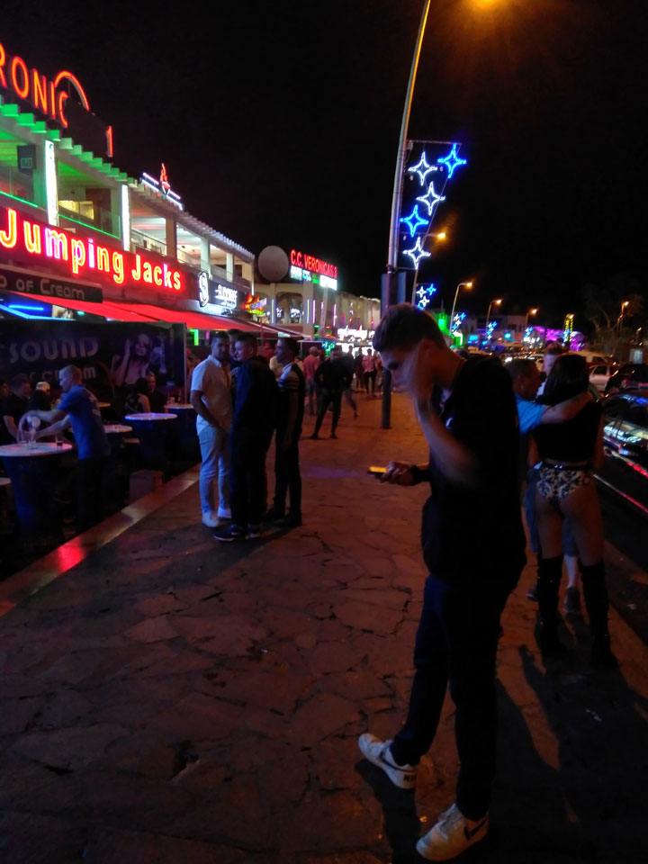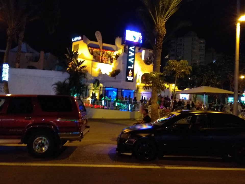 Ich kam mit dem Bus 111 nach Los Cristianos, checkte ohne Aufpreis im 6-Bett-Dorm ein (2 x €22 + €10 Pfand) und lernte ein paar Leute kennen. Ein Ire hat wohl eine schwere Zeit, lebt hier, war aber nur betrunken. Eine Frau aus Lettland gab uns Steaks, was ich sehr nett fand. Ansonsten war ich nur hundemüde. Die Gruppe bewegte sich schließlich Richtung Las Americas mit dem Taxi. Da saßen wir nun dort, so mancher inhalierte Lachgas neben den Drinks. Die €5 pro Ballon kann ich besser ausgeben als für einen 20 Sekunden Kick.