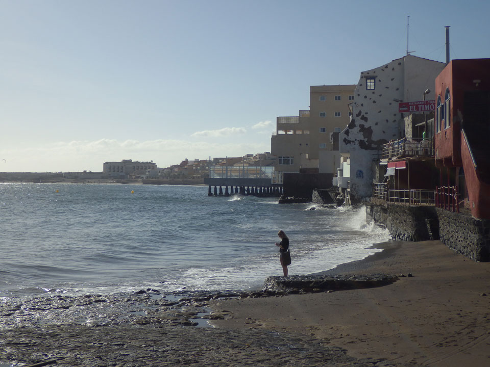 Ich wollte noch eine Kontaktlinsenmittel vor der Abfahrt kaufen, fand nur nichts und dann kam der Bus auch schon gegen 14:15. Es ging nach El Medano, ca. 20km von Los Christianos entfernt (€3,60). Die Fahrt führte entlang kleiner Küstenorte und dauerte über eine Stunde. Mal wieder hier, herrlicher Sonnenschein und das Hostel kannte ich ja auch schon. Ich zahlte €72,50 per VISA und ging auf’s Zimmer. Das war aber der 6-Bett Dorm, während ich das 4-Bett-Zimmer gebucht hatte. Das wurde behoben, nur muss ich die 4. Nacht wechseln. Naja, zwei Euro zurück.