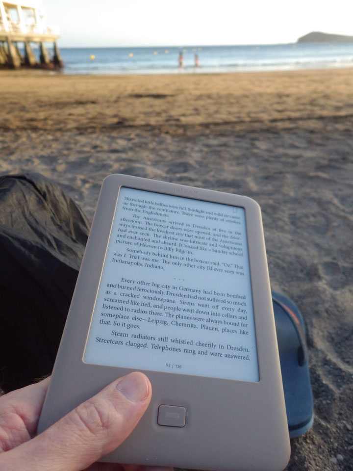 Im Hostel erst mal Dusche, Wunden gesäubert und etwas daliegen. Ich ging einkaufen, holte mir endlich mal wieder Gazpacho, Wurst und alles Mögliche für ca. €25 – auch Pflaster. Abendessen war gesichert, dann im Bett las ich Vonnegut „Slaughterhouse 5“ zu Ende. Cooles Buch, wo man nicht genau sagen kann, was es eigentlich ist. Wie bei „Sirens of Titan“ ist es eben ein großer Spaß über Zeit, Schicksal und dass man alles wohl nicht so ernst nehmen soll.