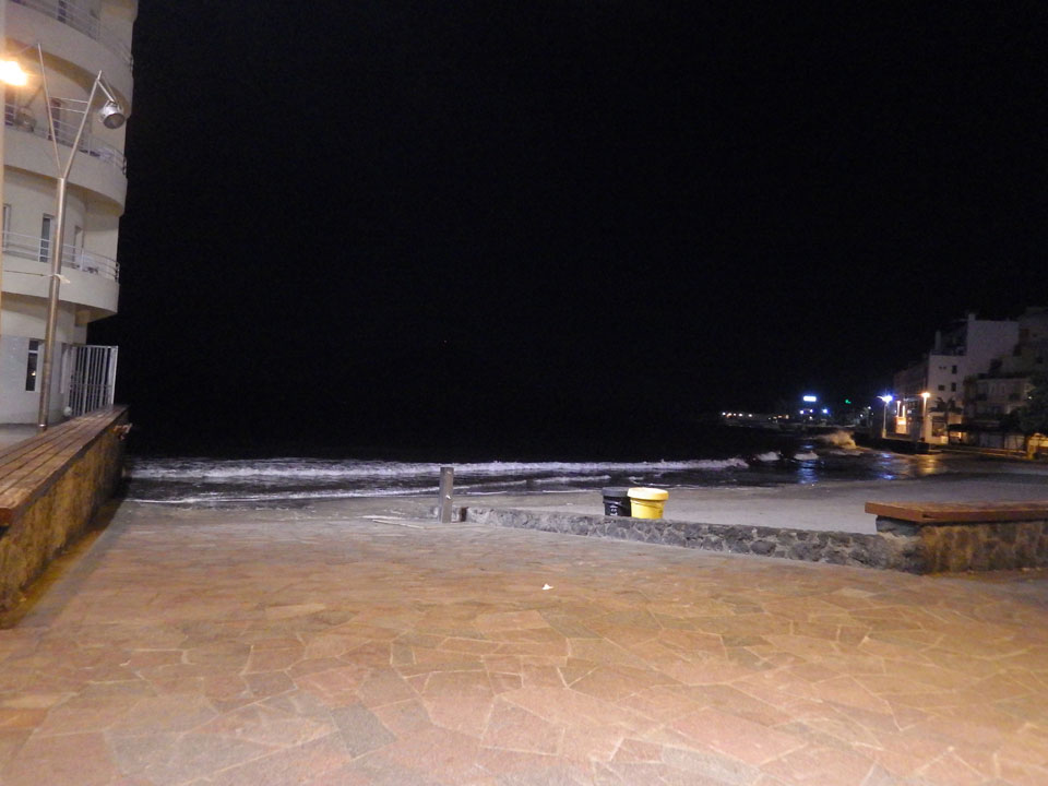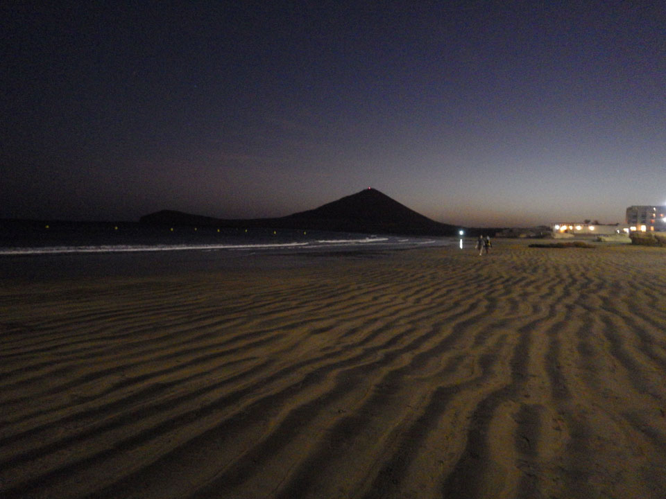 Ich ging kurz an den Strand, doch es war mir zu frisch zum Baden. Um 18:00 dann schaffte ich es doch, mal zum Joggen. Ich rannte zum Montaña Roja und dort etwas umher. Beim Herumdenken, dass „Slaughterhouse 5“ einer der wenigen Bücher ist, in denen Chemnitz erwähnt wird, stolperte ich über einen Stein und flog auf den Boden. Mit Handy in der linken und Pentax in der rechten Hand ließ ich wieder erst spät los, verletzte mir die Handballen und hatte ordentliche Kratzer an Bei und Armen. Ich hätte ich gedacht, dass mein Handy kaputt gegangen wäre, doch zum Glück war das empfindliche Glas noch ganz. Glück gehabt wenigstens da. Es wurde schnell dunkel und so joggte ich langsam und aufmerksamer zurück.