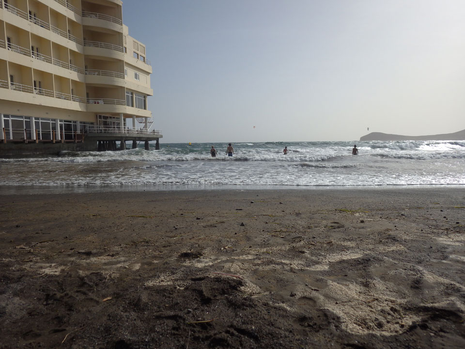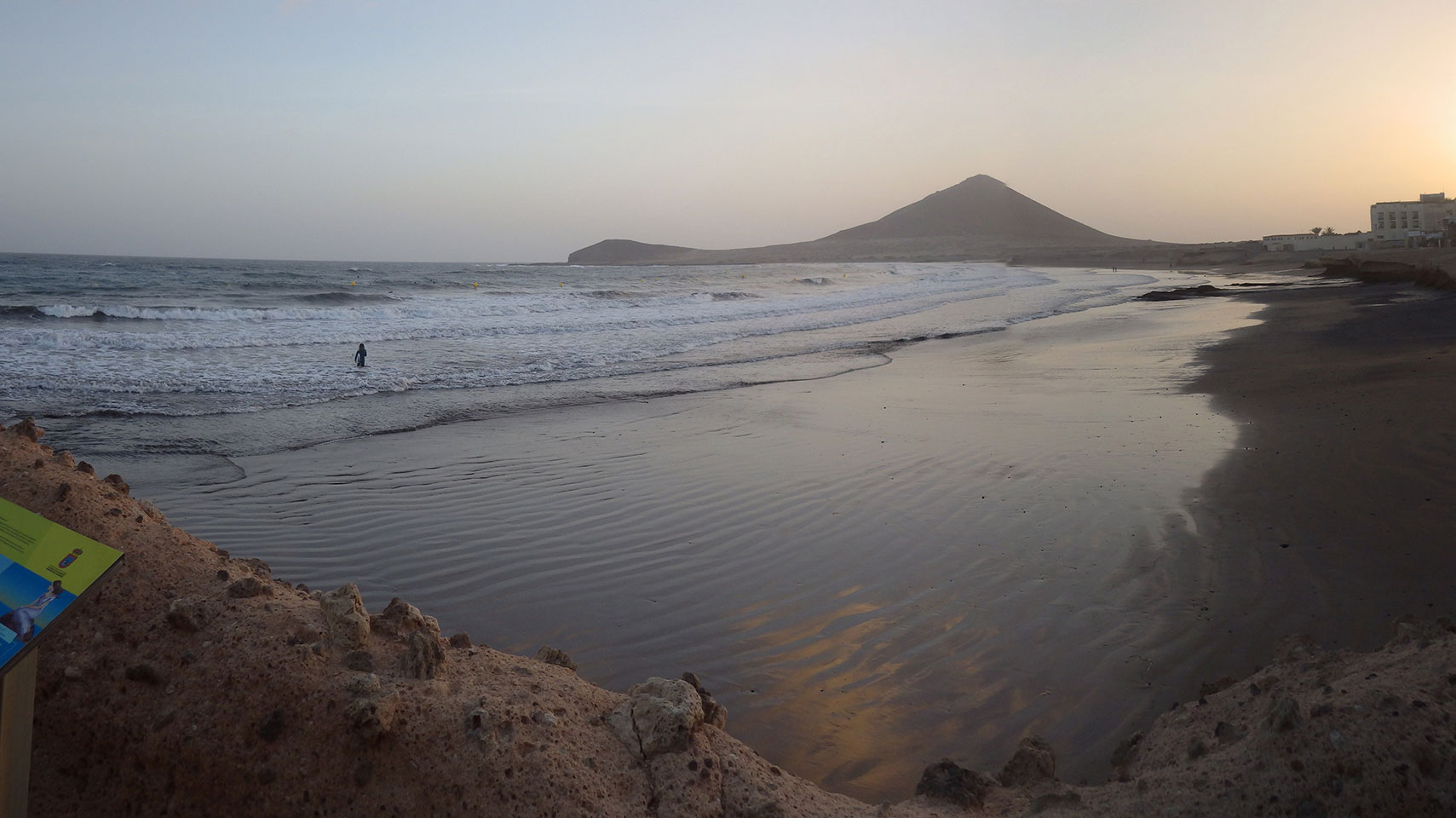Die Wellen waren endlich mal super und das Wasser gar nicht so kalt. Es sind schon interessante Zeiten, wo man für wenig Geld im Dezember innerhalb Europas herum fliegt und somit mal in’s Wasser hüpfen kann. Meine Schürfwunden merkte ich im Salzwasser dann auch. Damit heute keine neuen dazu kommen, wollte ich früher Richtung Montaña Roja starten.