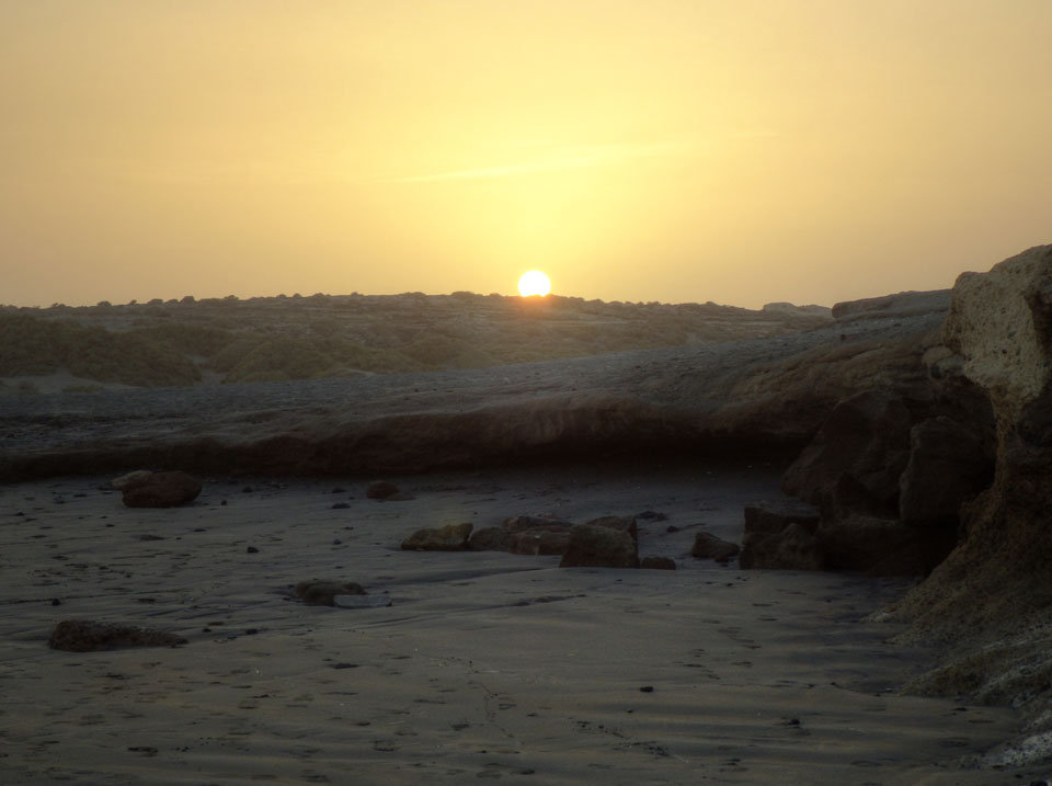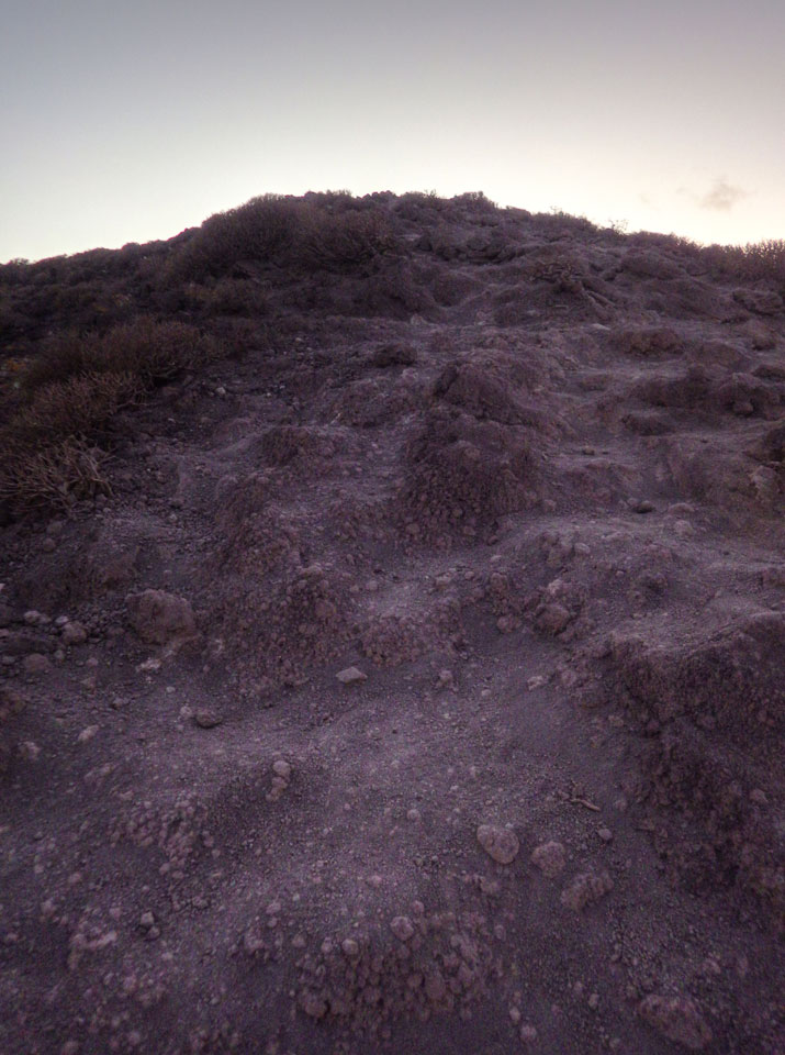 Ganz so schaffte ich es nicht – wenigstens vor 18:00 joggte ich Richtung Wasser und dieses Mal auf dem richtigen Pfand. Ein paar Wanderer waren auch auf dem Weg, kamen mir schon entgegen als die Sonne unterging. Ich schnaufte eine Weile am Hang hoch, gab dann aber auf, war die Kulisse doch gut genug. Wieder nach unten ließ ich mir Zeit. Ungefährlich ist die Sache nicht. Der Untergrund ist mit den kleinen Steinen etwas rutschig und die Steine scharf.