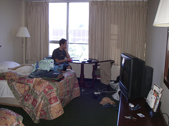 Nebenan bei 7-11 noch ein paar Snacks geholt und schon wieder hoch aufs Zimmer. Fast nur gefahren heute. Internet im Motel auch wieder kostenlos. Dank Wochenende in Cairns konnte man sich auch mal per Webcam sehen. Wie das alles so funktioniert..